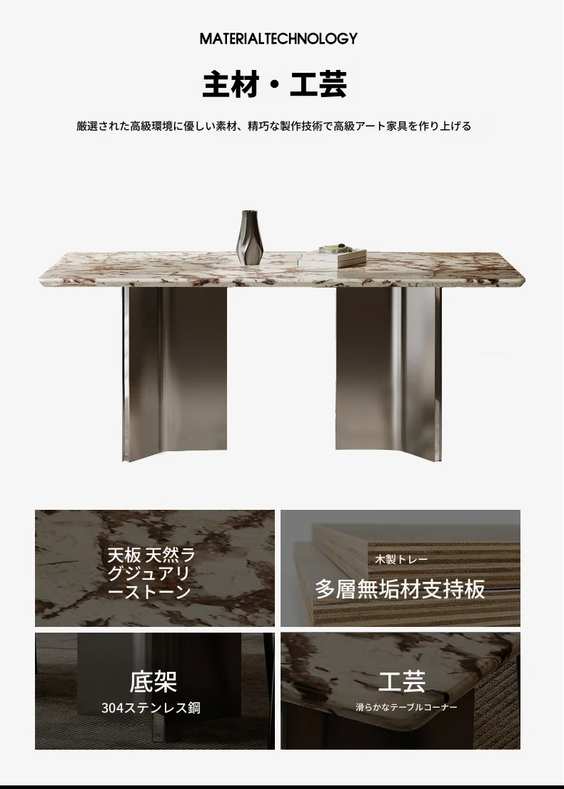 【36mm雪山飛狐大理石】2.2メートルダイニングテーブル