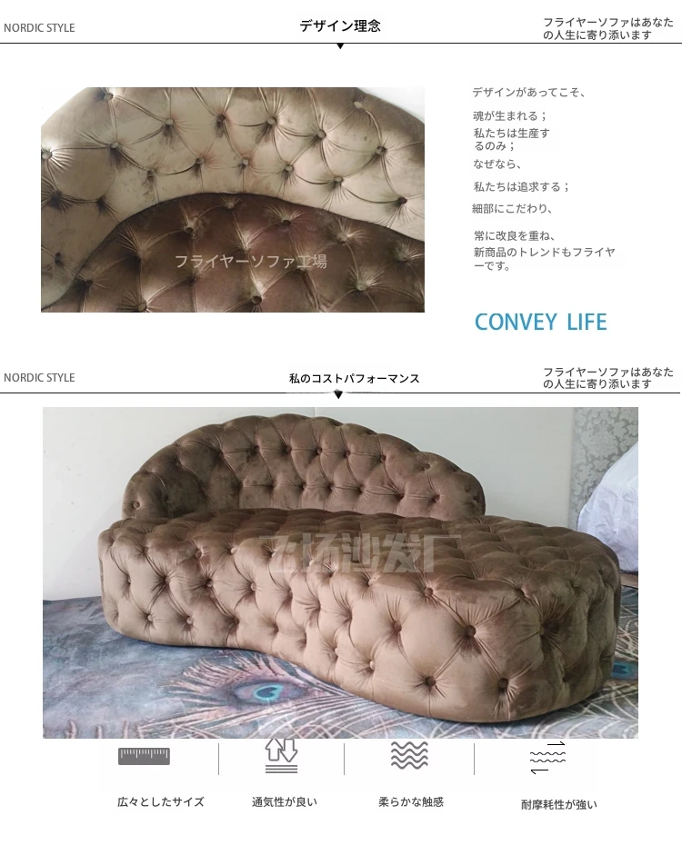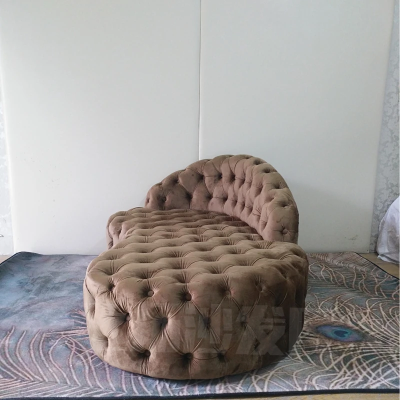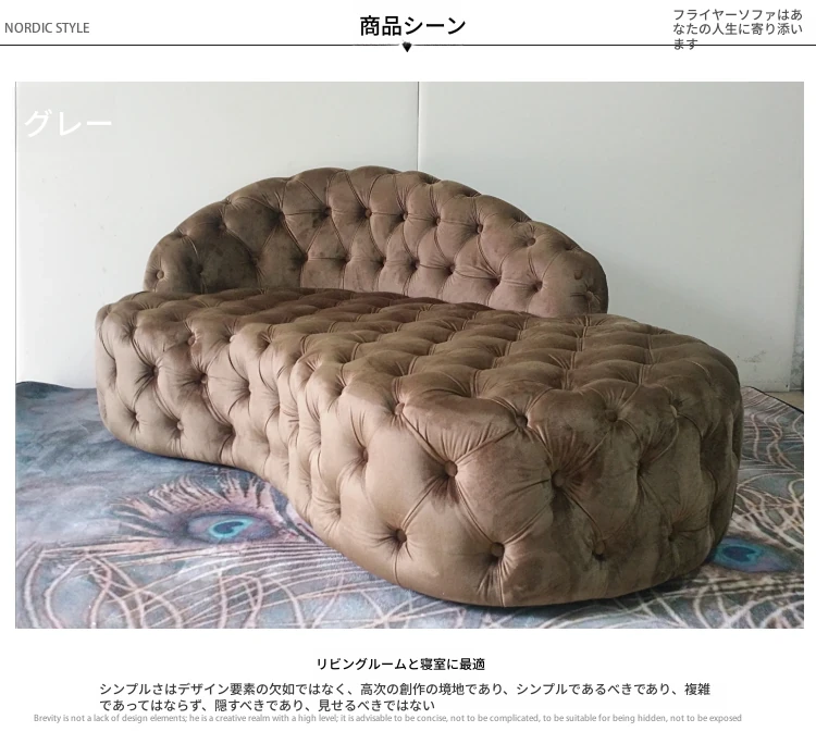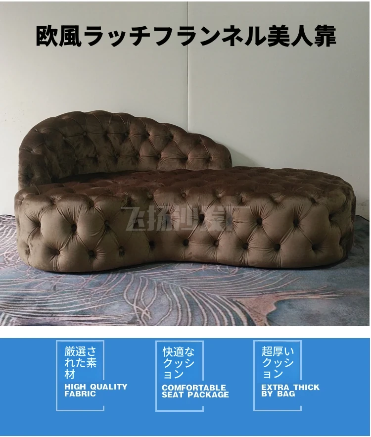 欧風レトロスタイル フランネル全開きボタン付き 美人の背もたれ ファブリックダブルソファ 寝室・リビングにぴったりな豪華なファブリックデイベッド