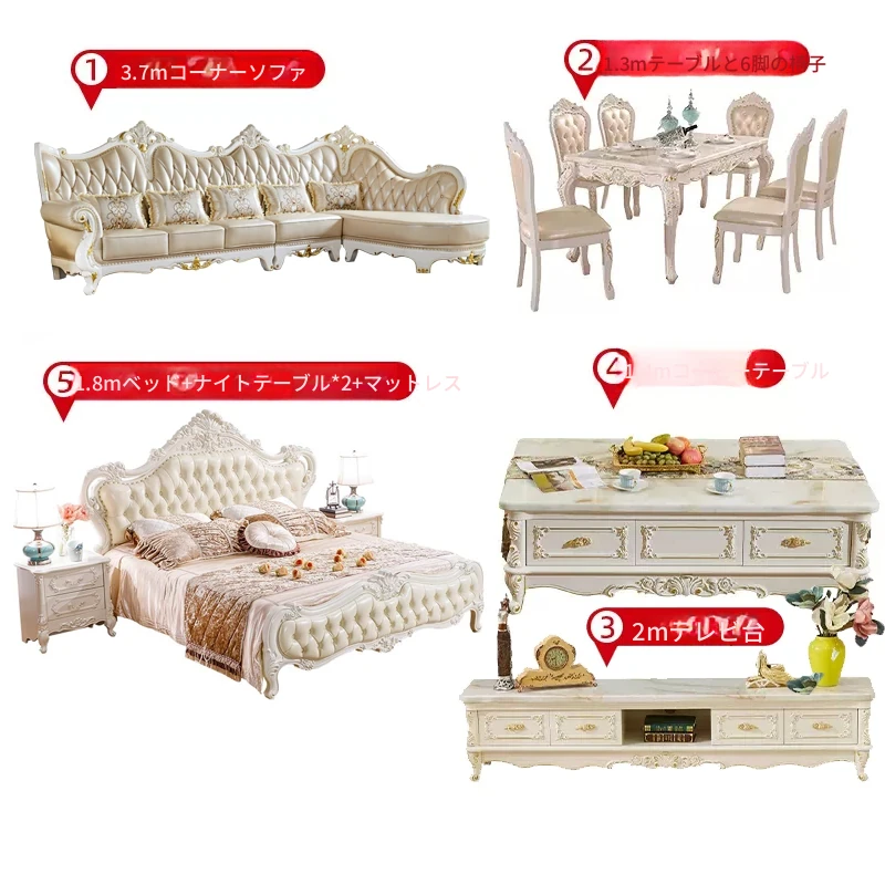 1+3+高級+コーヒーテーブル+テレビ台+ダイニングテーブルと椅子+ベッド