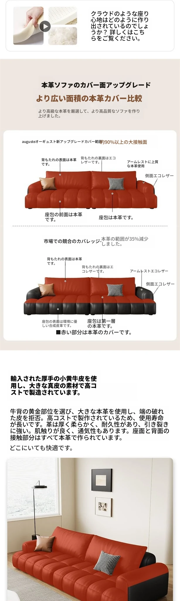 2024年新作!本革使用の高級感あふれるヴィンテージ風ソファ - 軽やかなマシュマロのような触り心地、客間にぴったりな贅沢なデザイン。あなたのリビングをスタイリッシュに演出します!