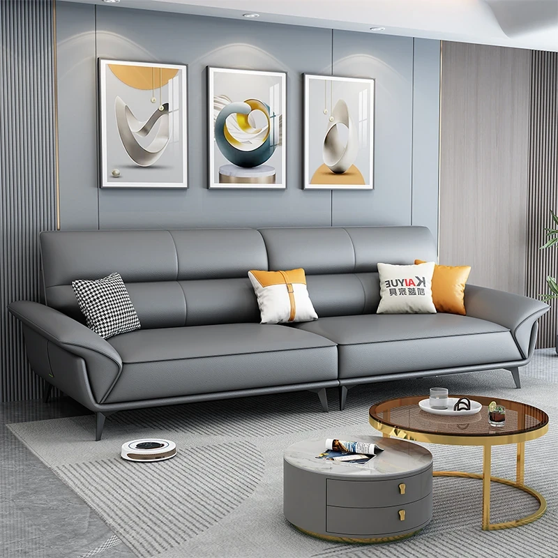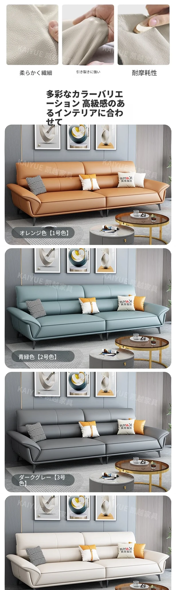 イタリアンミニマリズム本革ソファ - シンプルでモダンなリビング用、3〜4人掛け、P型小型住宅にも最適なトップグレイン牛革ソファ!スタイリッシュなデザインで快適な空間を演出!