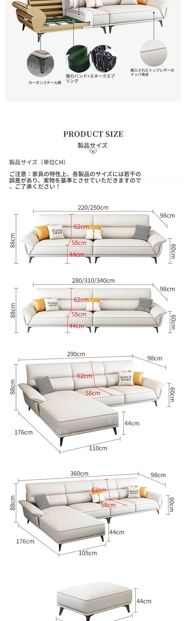 2.8メートル4人用+オットマン(輸入ナッパレザー)