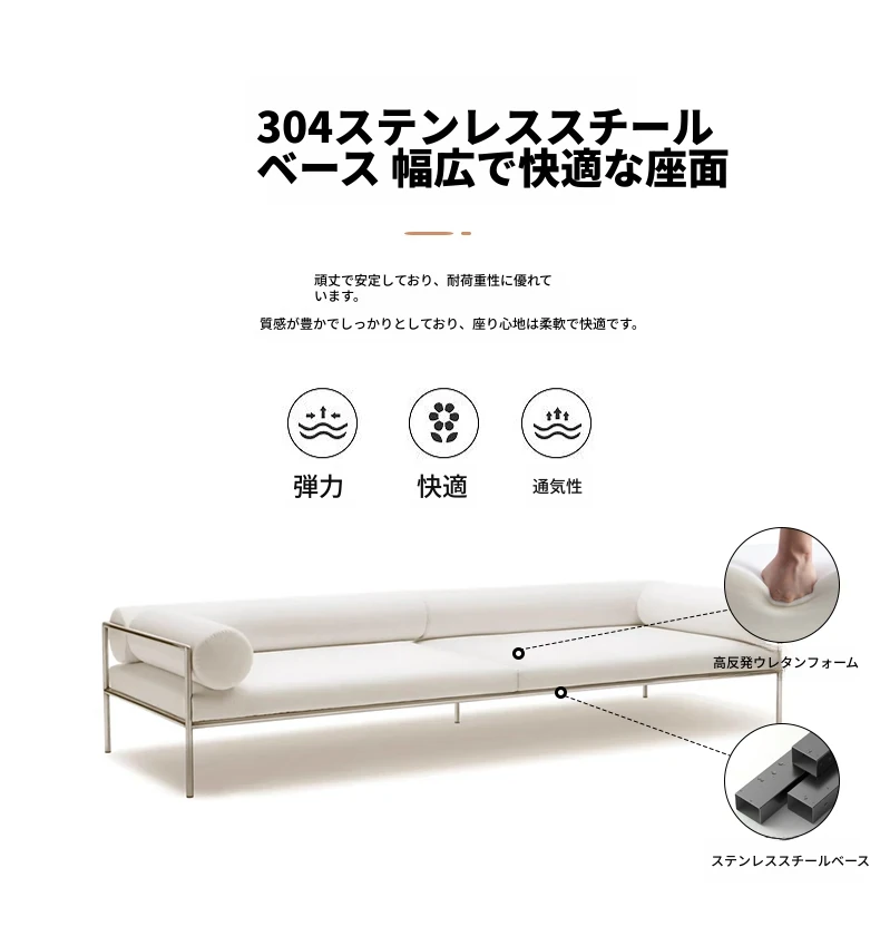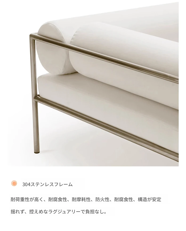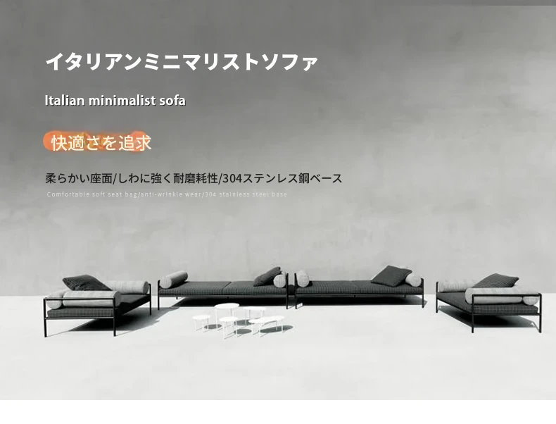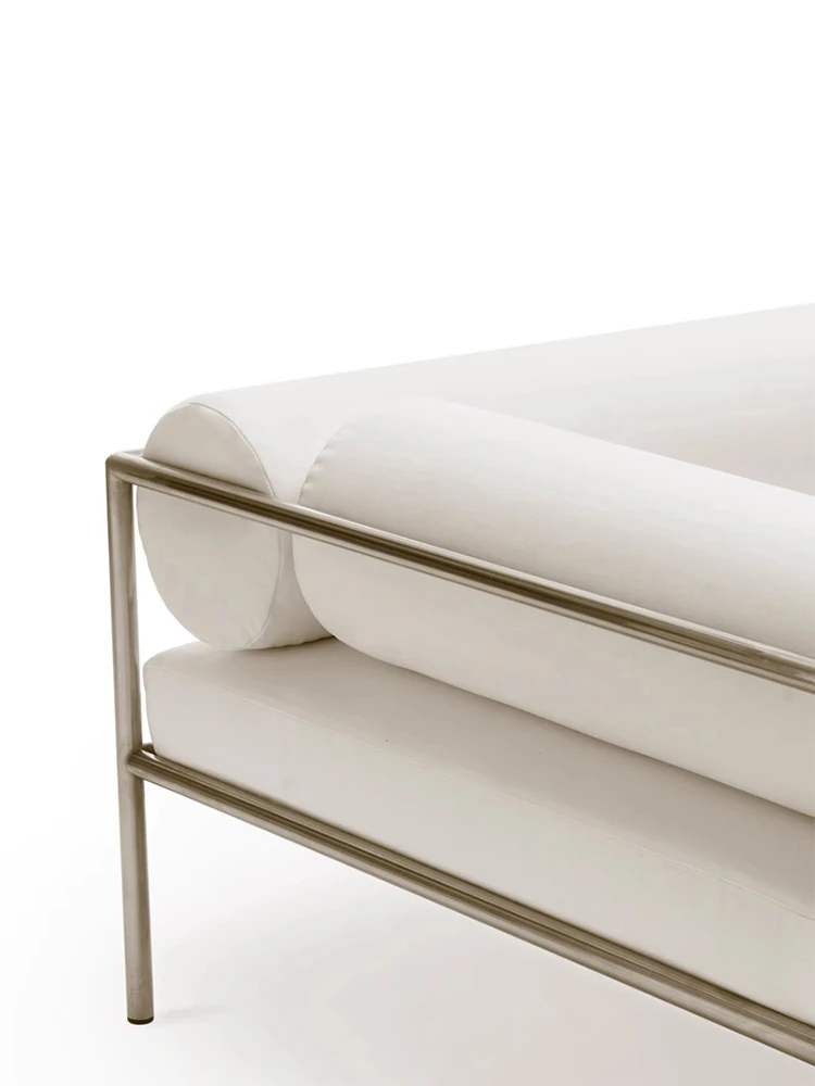 イタリアンミニマリズムのステンレス製ソファ - アグラ デビッド・ロペス・キンコセスのポストモダンファブリックソファで、洗練されたデザインと快適な座り心地を体験!