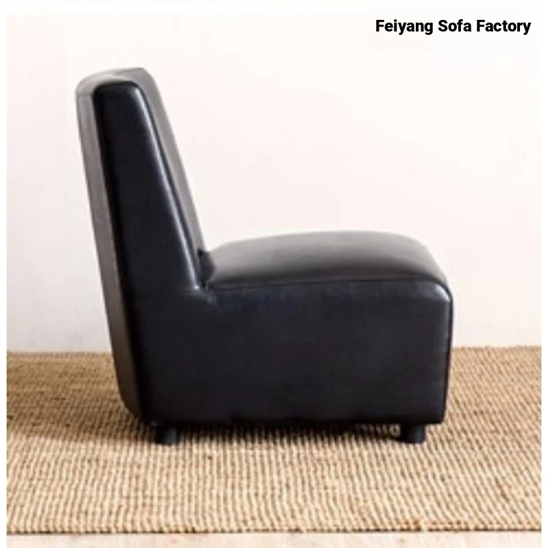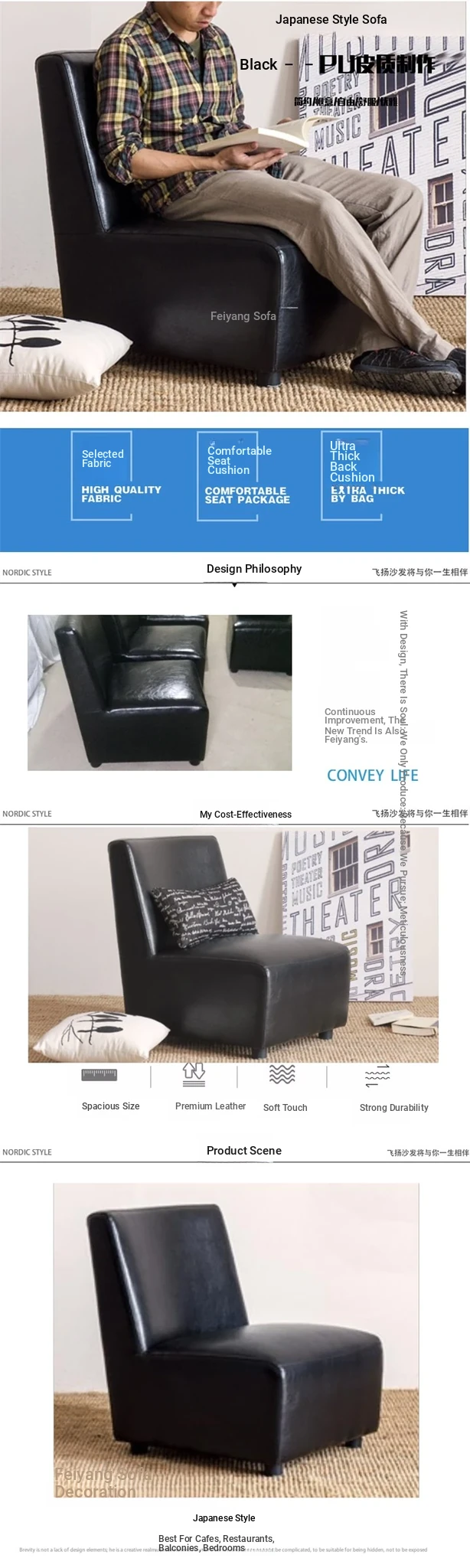 Japanese Single Leather Sofa Chair - Stylish High-Back Design for Cafes, Bars, and Restaurants - Elegant Black Small Sofa for Balconies and Cozy Spaces