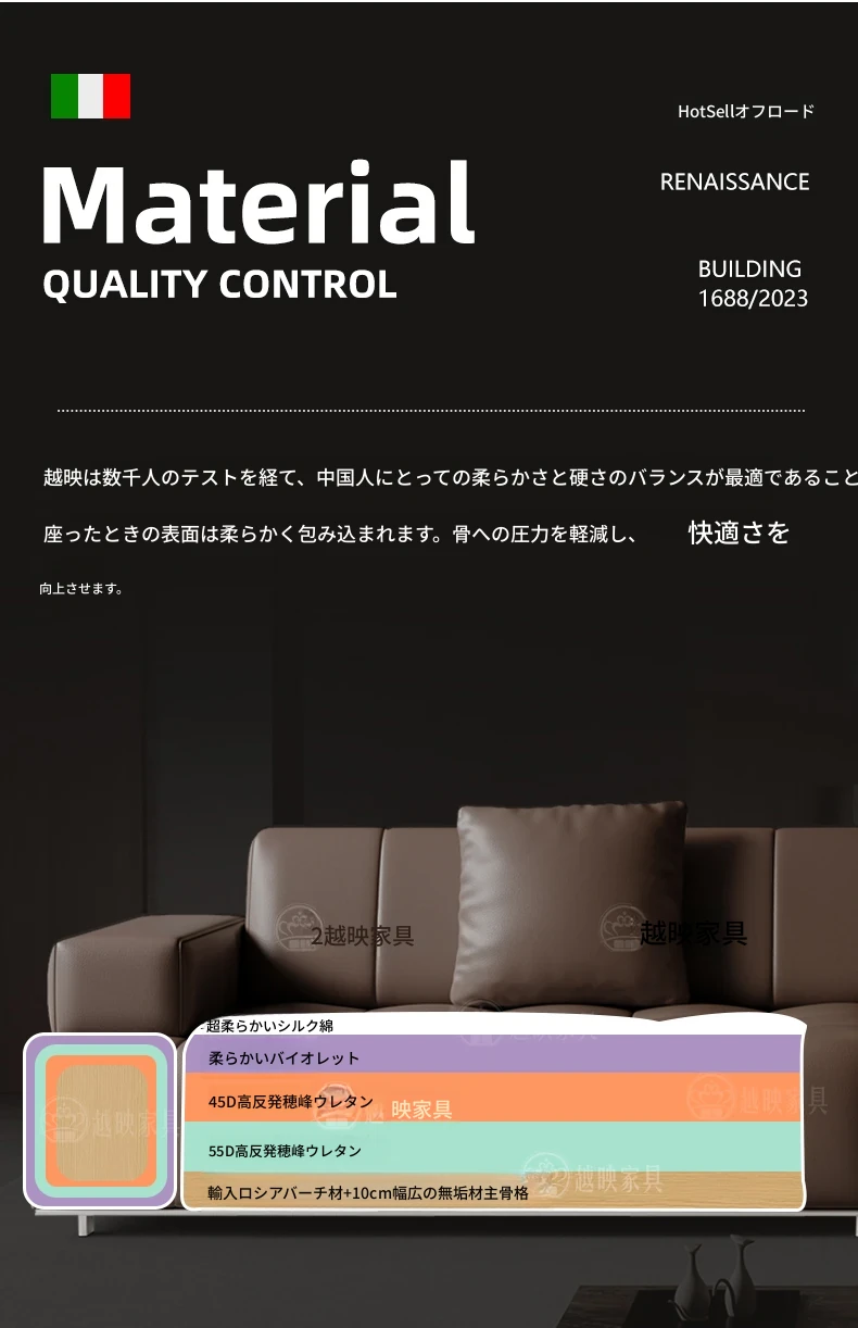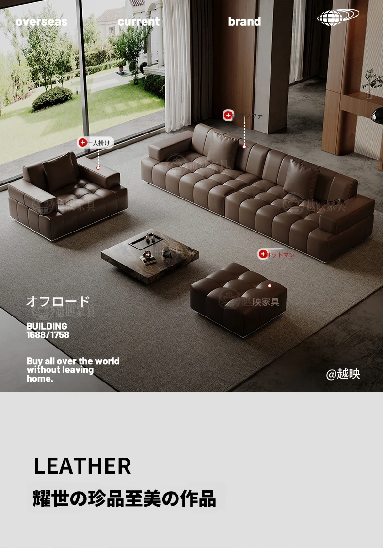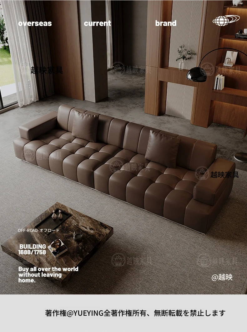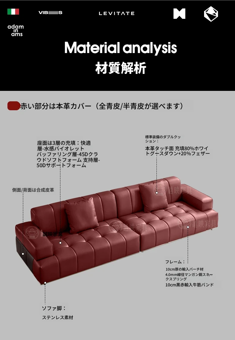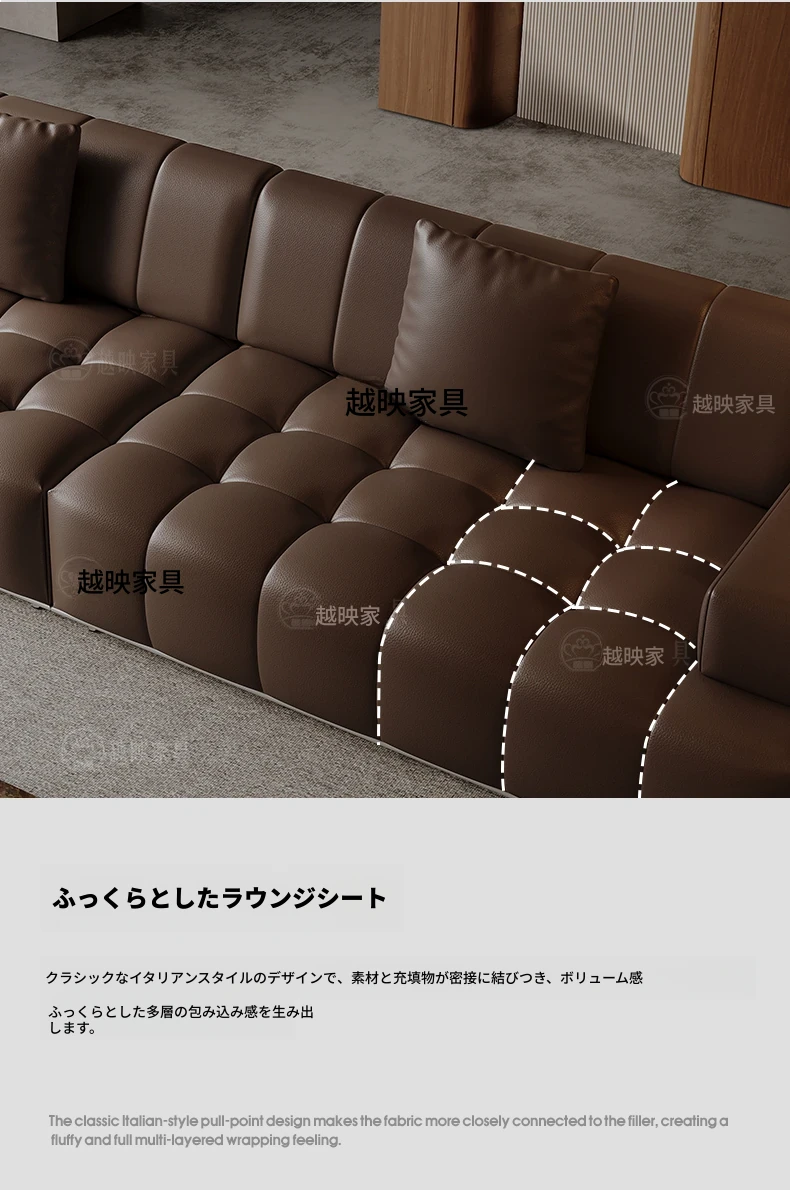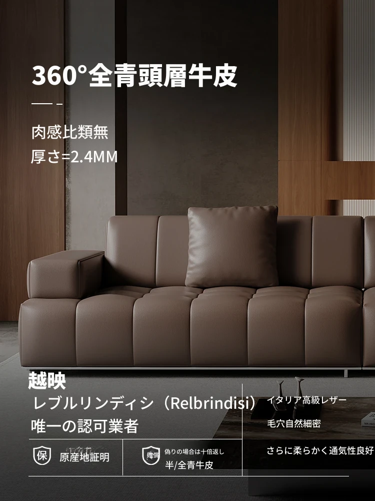 越映越野サンドイッチ全青皮本革ソファ ヘッドレイヤー牛革 シンプルイタリアンデザイン ラウレンスリビングソファで、スタイリッシュな空間を演出!高級感溢れる素材と洗練されたデザインで、あなたのリビングを特別な場所に変えます。