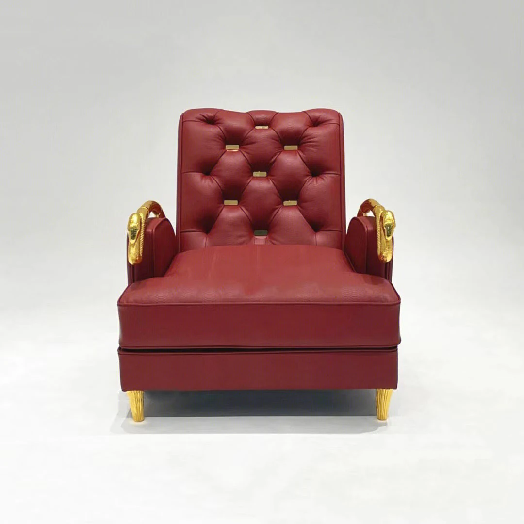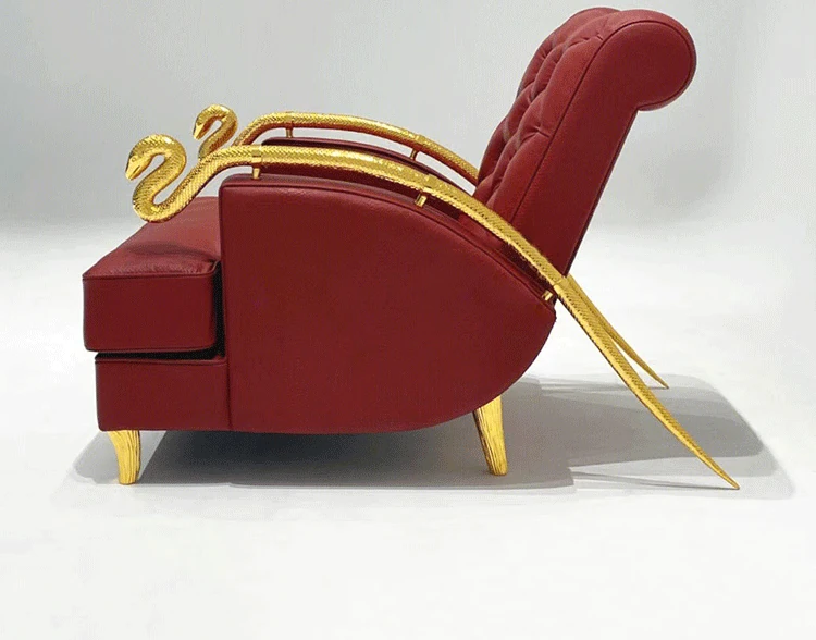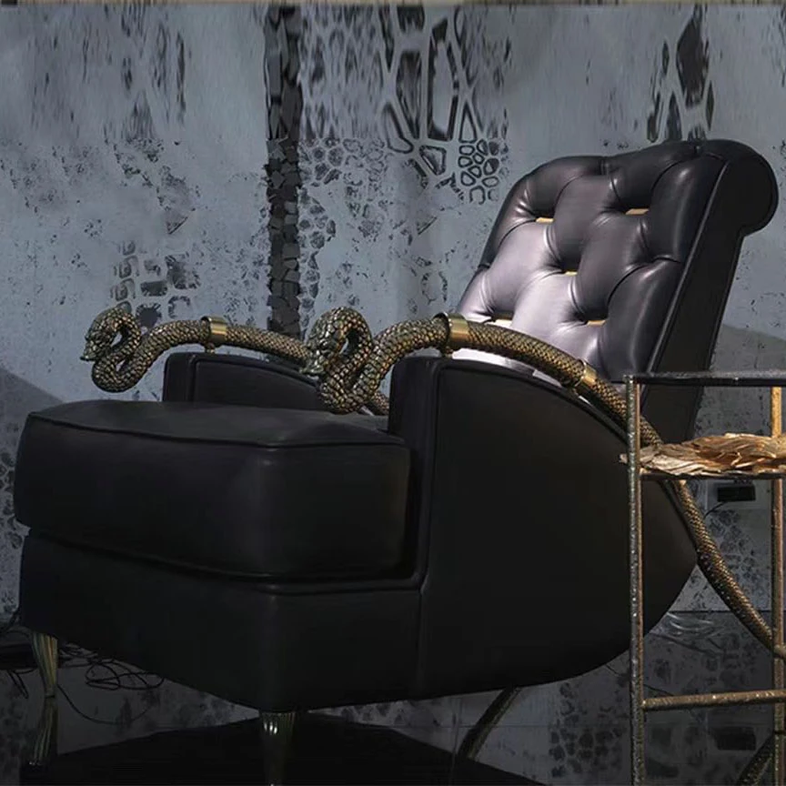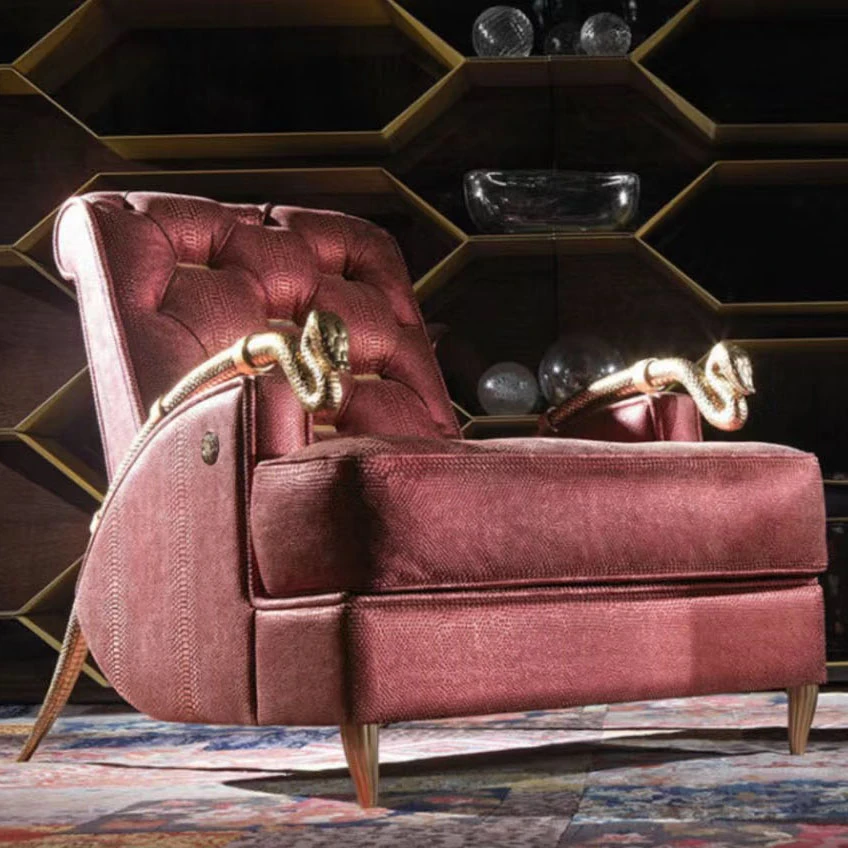 ラグジュアリーなイタリア製ロバート・カヴァリのヘビヘッドチェア - 豪華なヴィラや広々としたリビングにぴったり!セレブ御用達のスタイリッシュなリラックスチェア。あなたの空間に洗練された魅力をプラス!