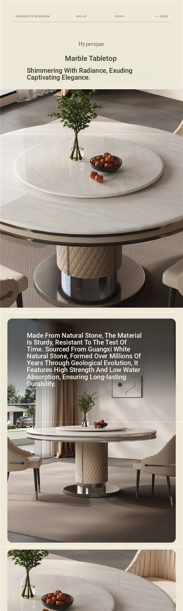 "Jasper white marble" 59.06in gray titanium 304 stainless steel frame/with turntable