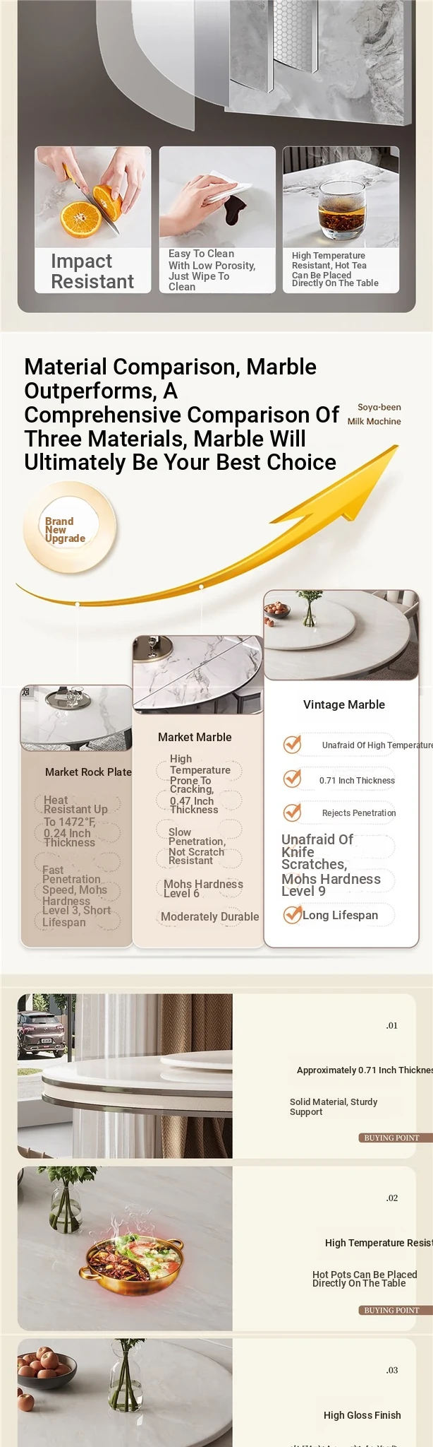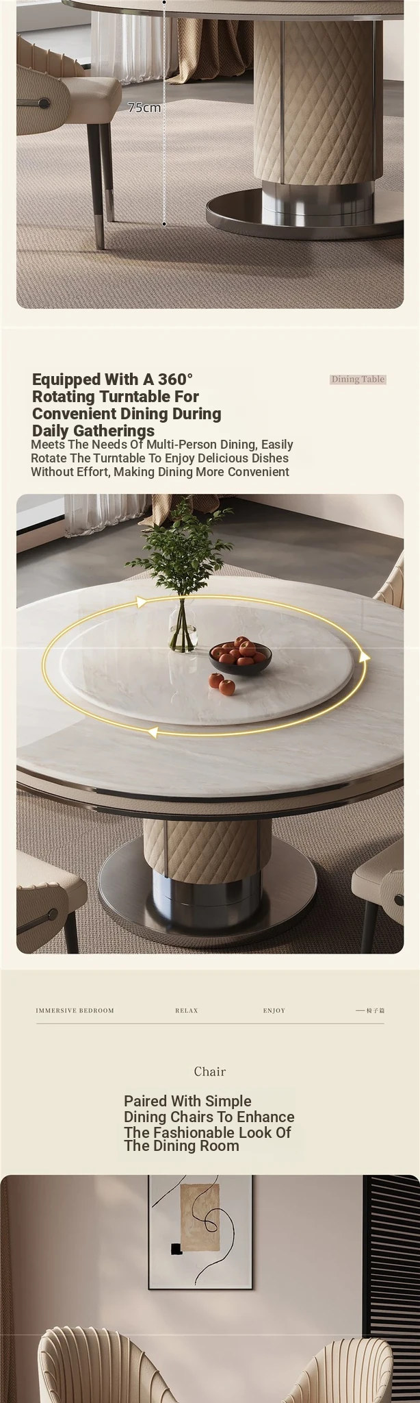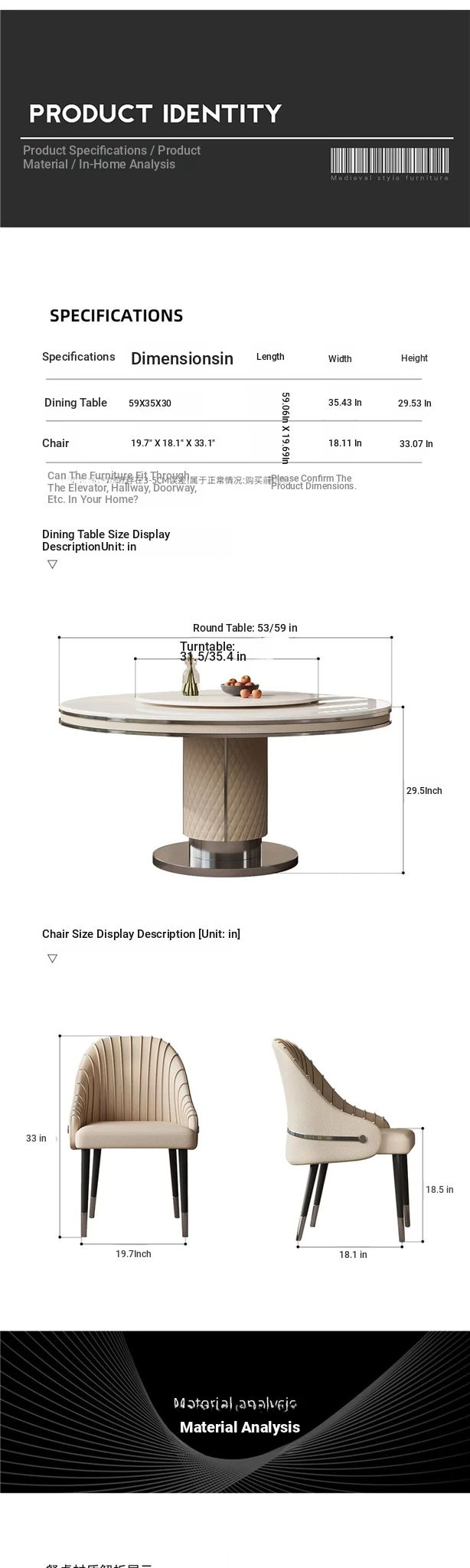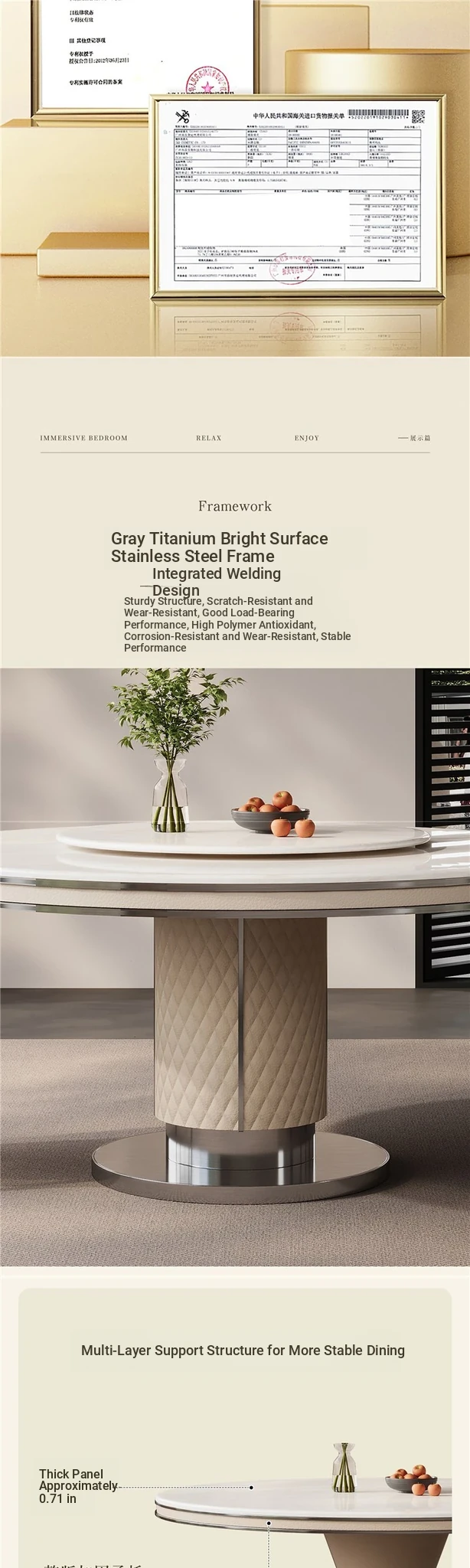 "Jasper white marble" 53.15in gray titanium 304 stainless steel frame/with turntable