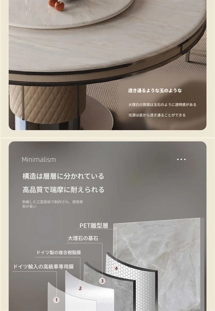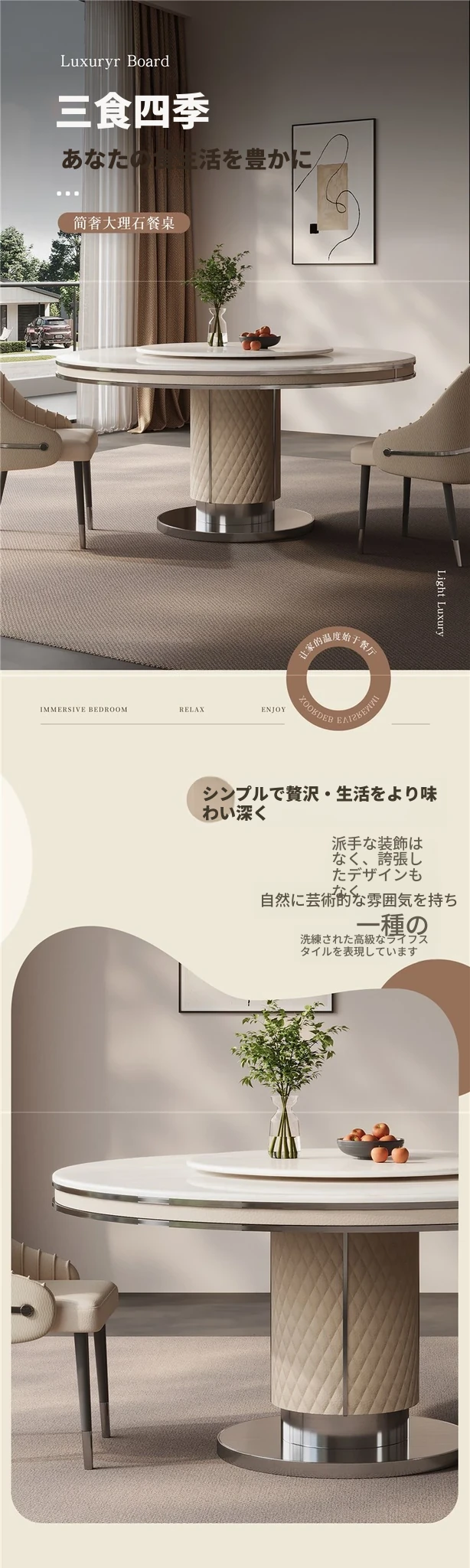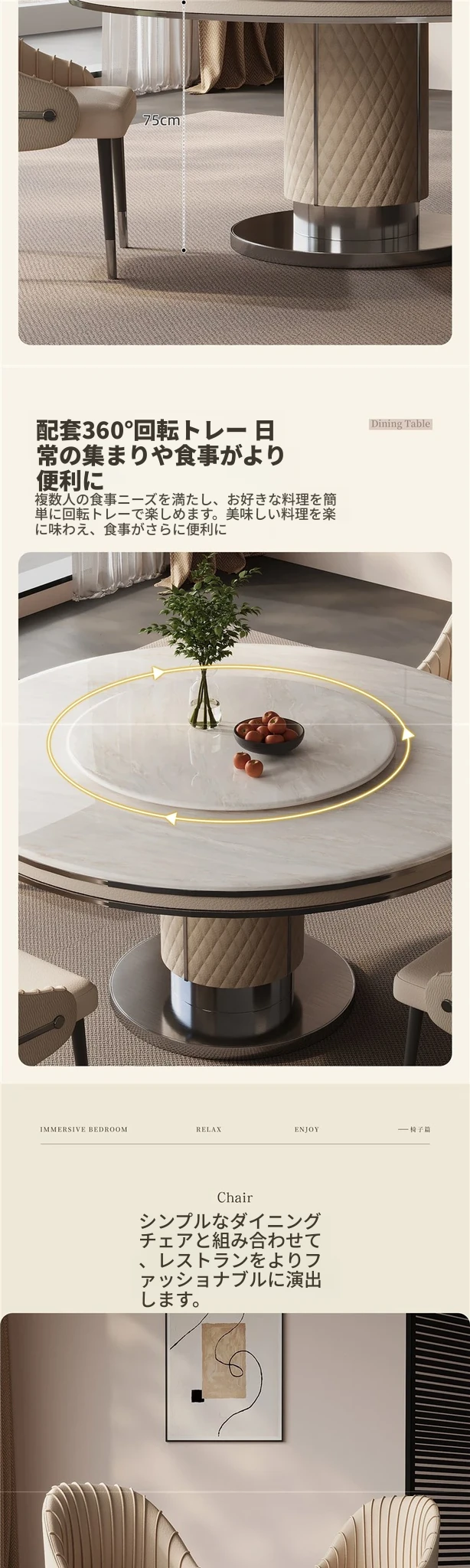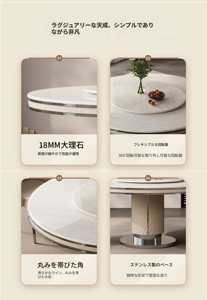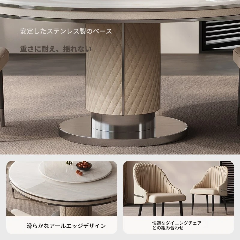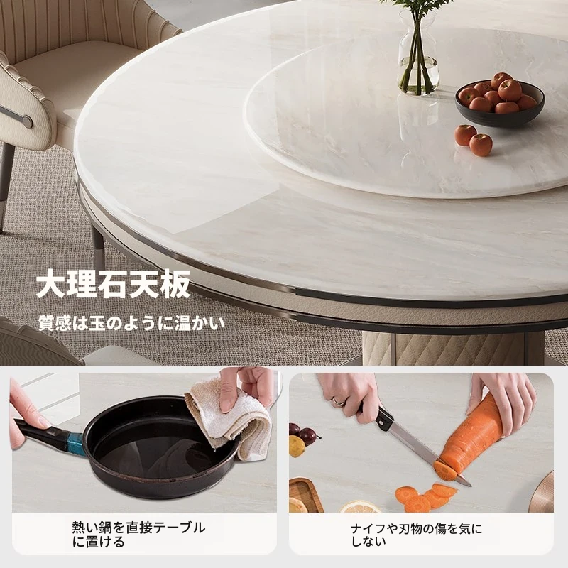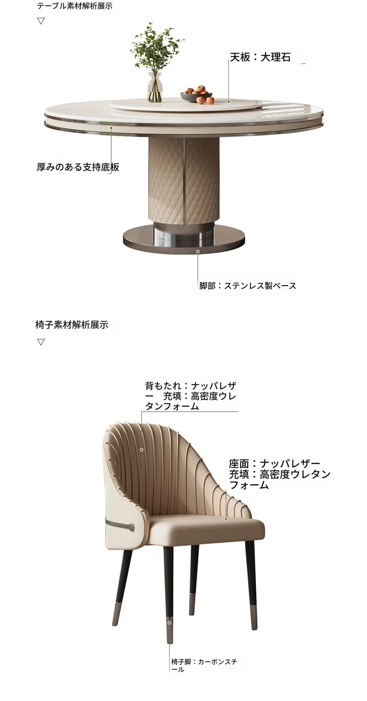 高級感あふれる大理石製の円形テーブルとシンプルデザインの椅子セット - 家庭用の洗練されたダイニング体験を提供します!