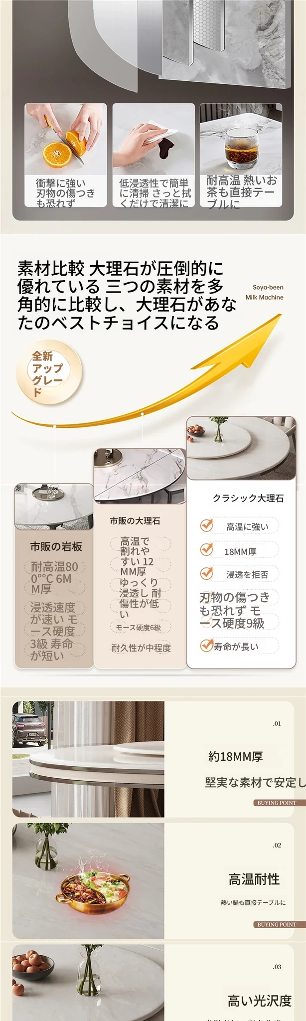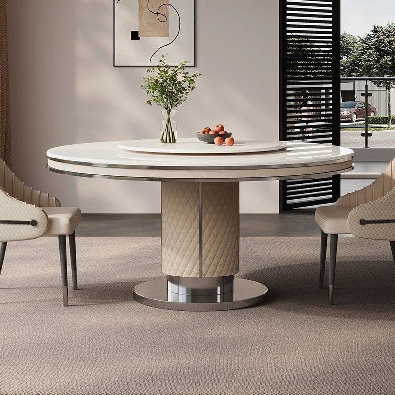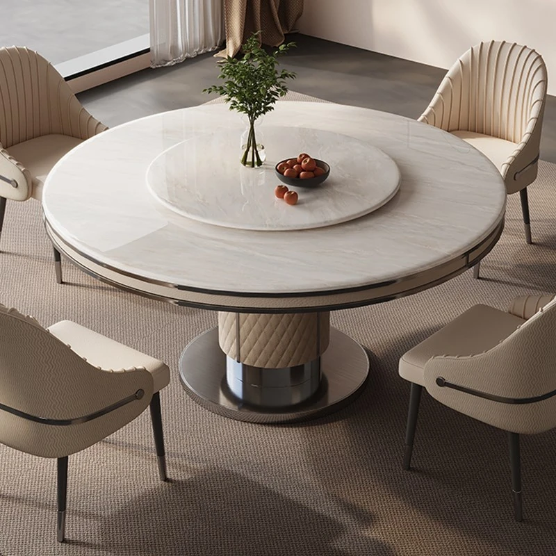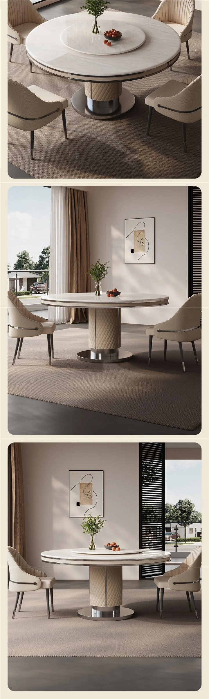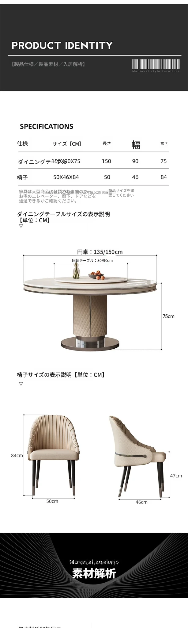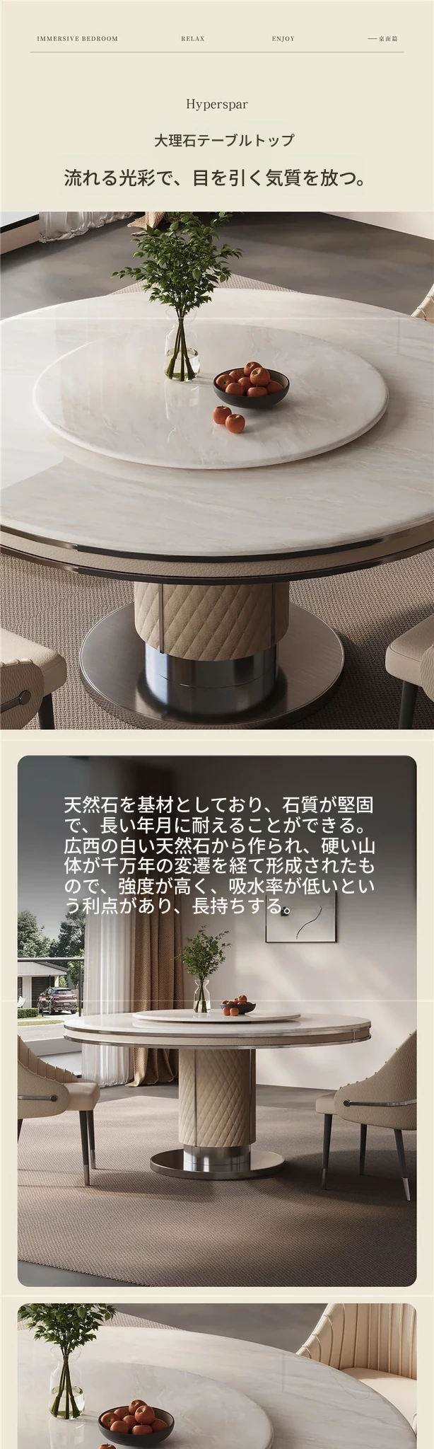 高級感あふれる大理石製の円形テーブルとシンプルデザインの椅子セット - 家庭用の洗練されたダイニング体験を提供します!