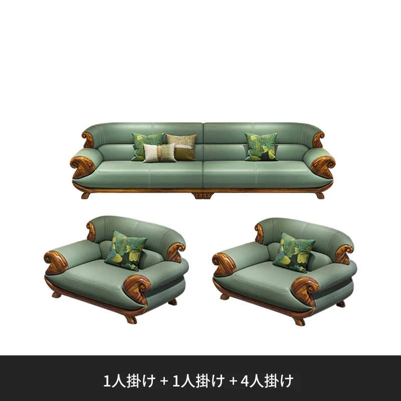 ウッ金木【1人用+1人用+4人用】本革ソファ