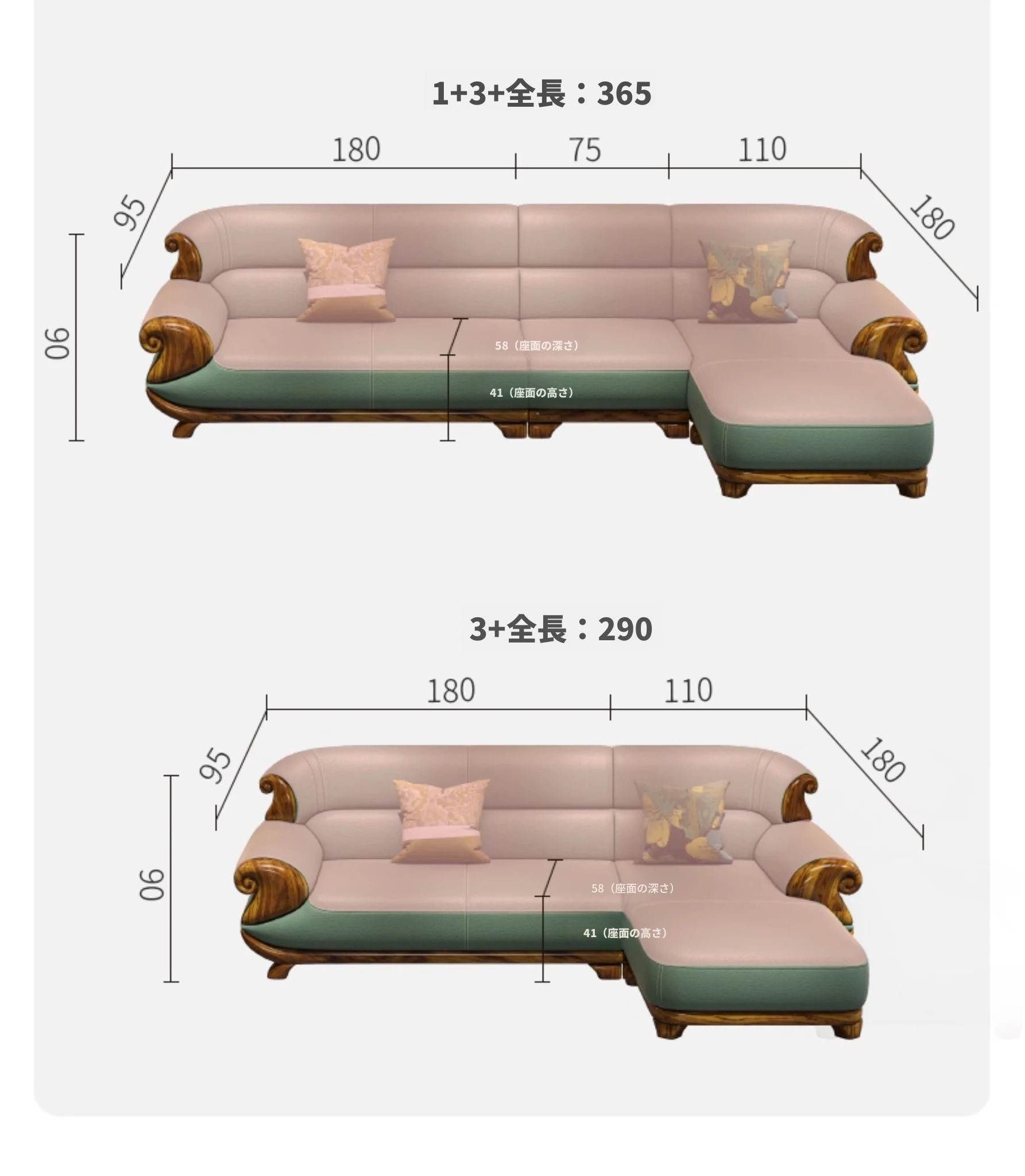 ウッ金木【1人用+1人用+3人用】本革ソファ