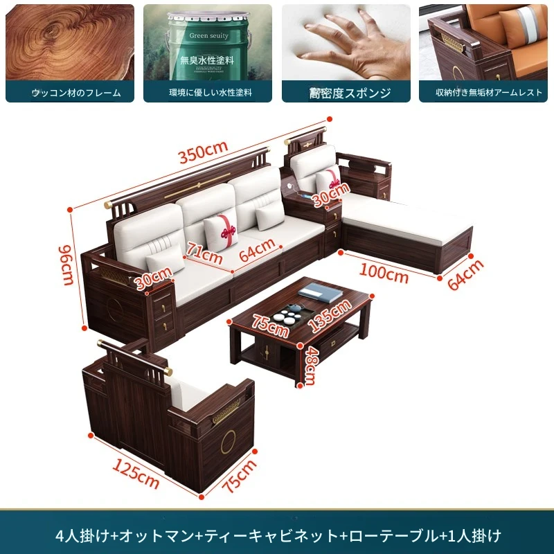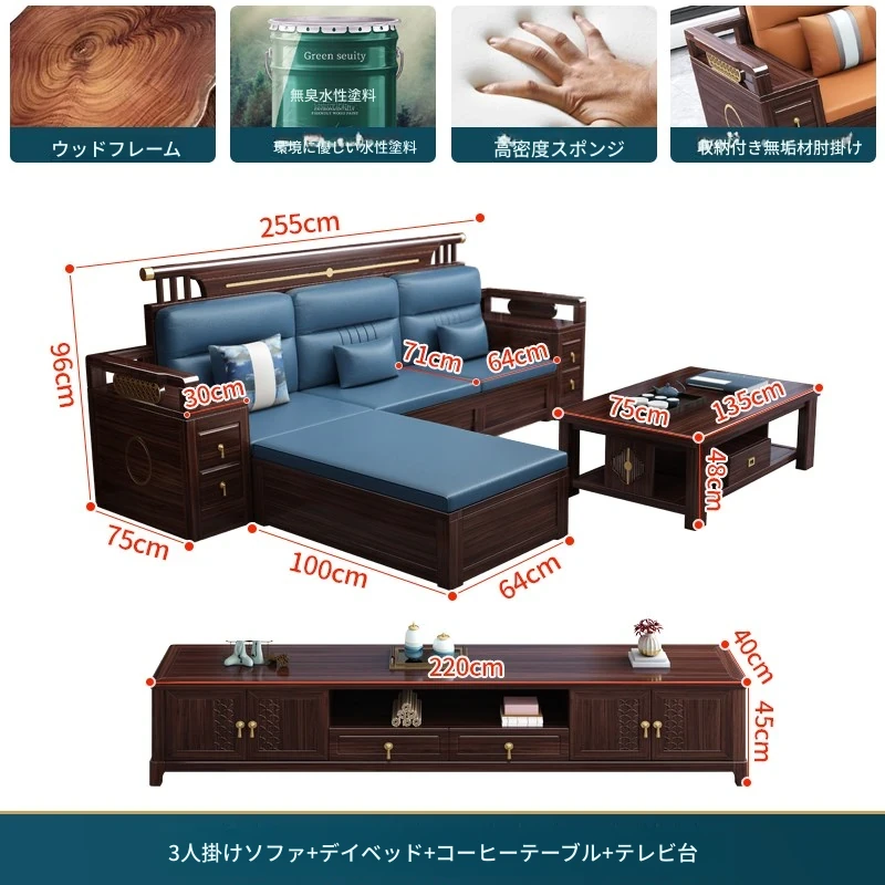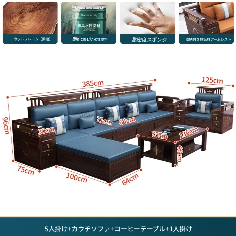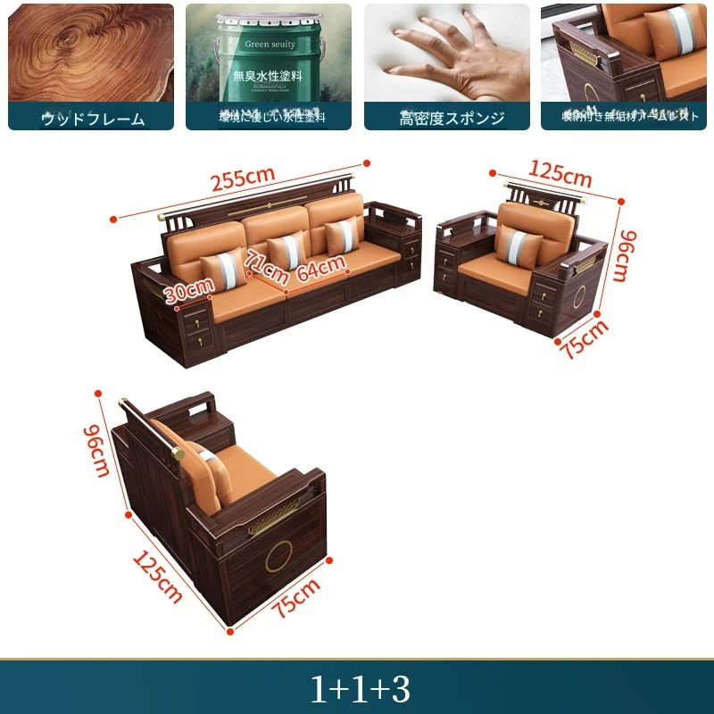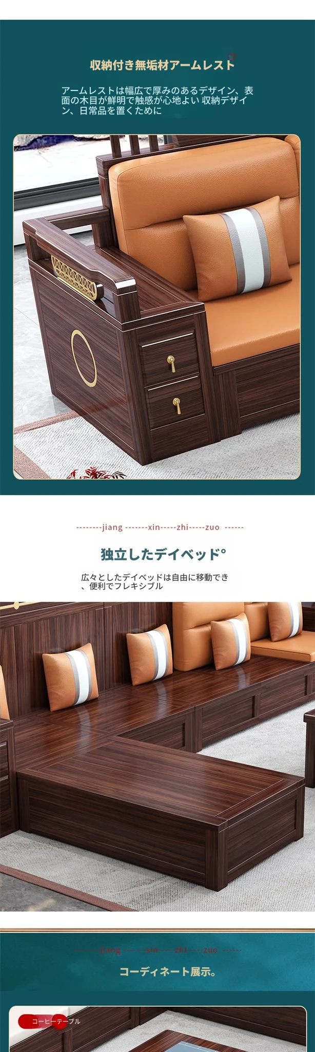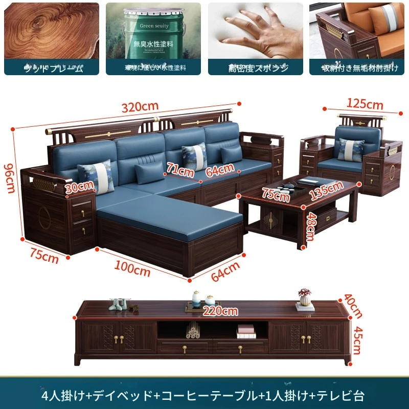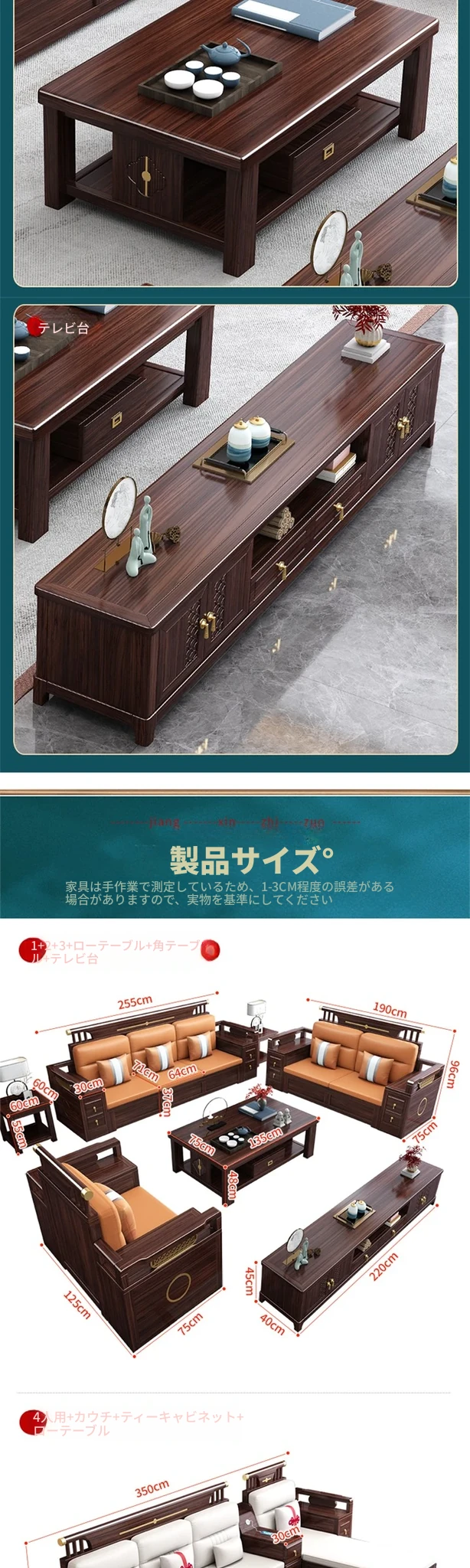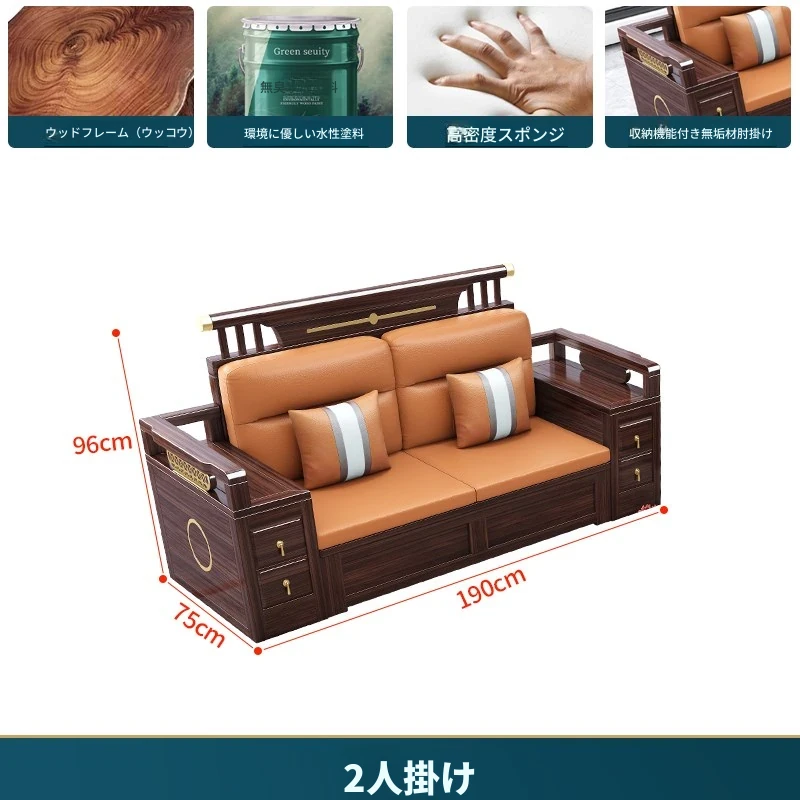 ウッディブラックウッド製の本格派新中式スタイルソファ、高さのある収納付きで冬夏問わず快適な高品質ラグジュアリーリビング家具セット。あなたのリビングを格上げする一品です!