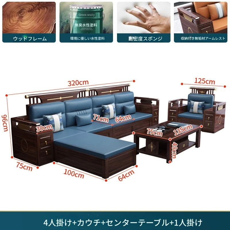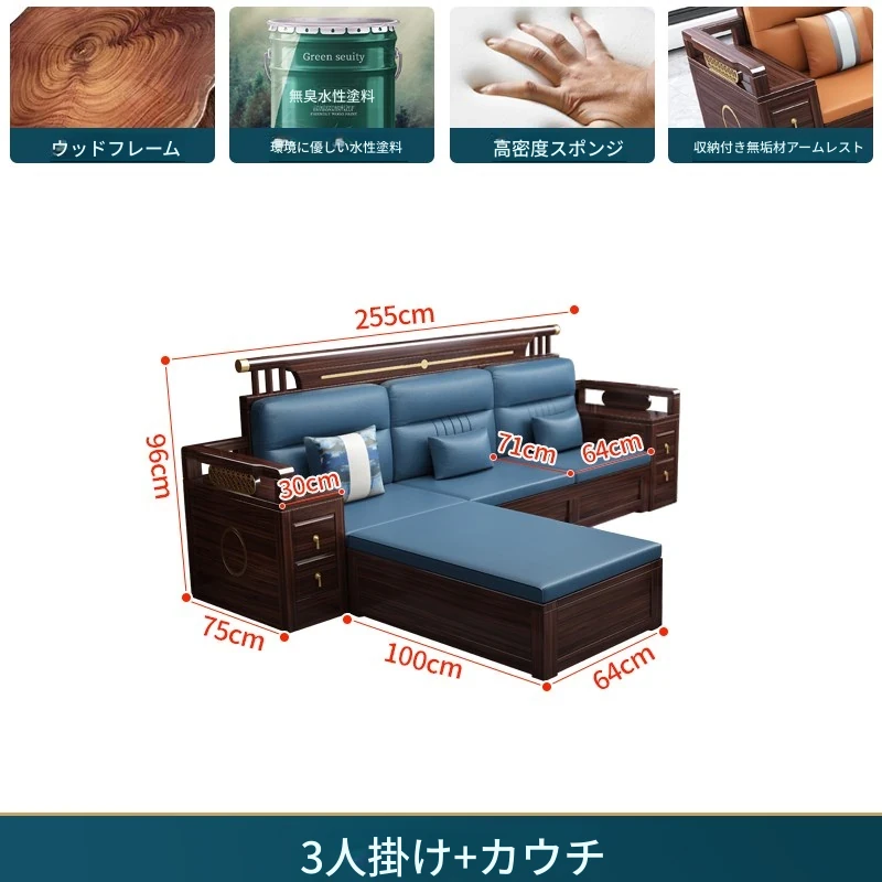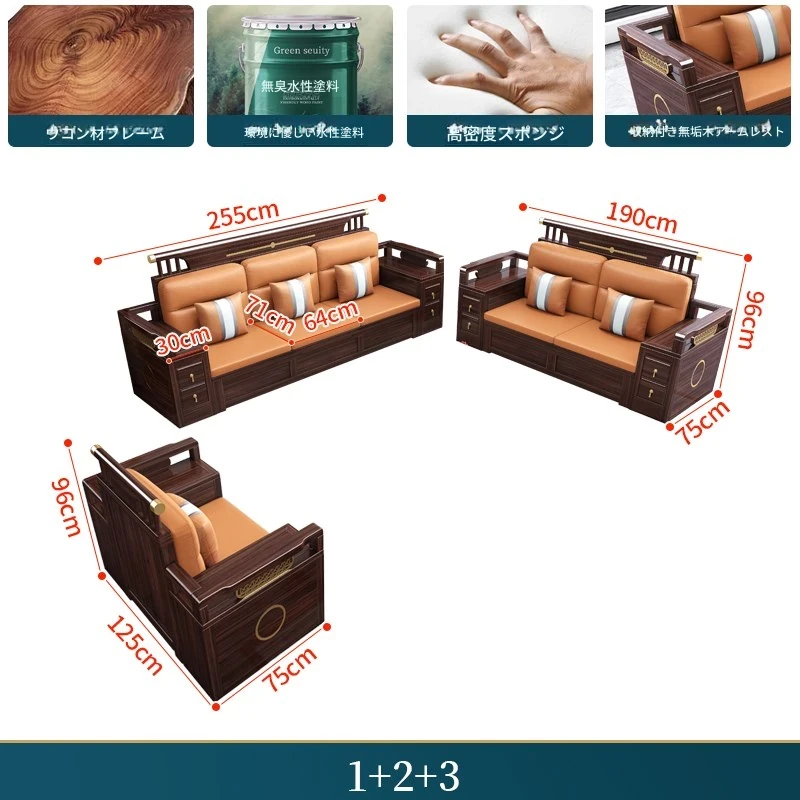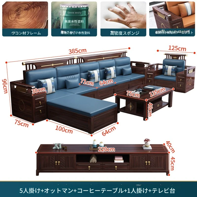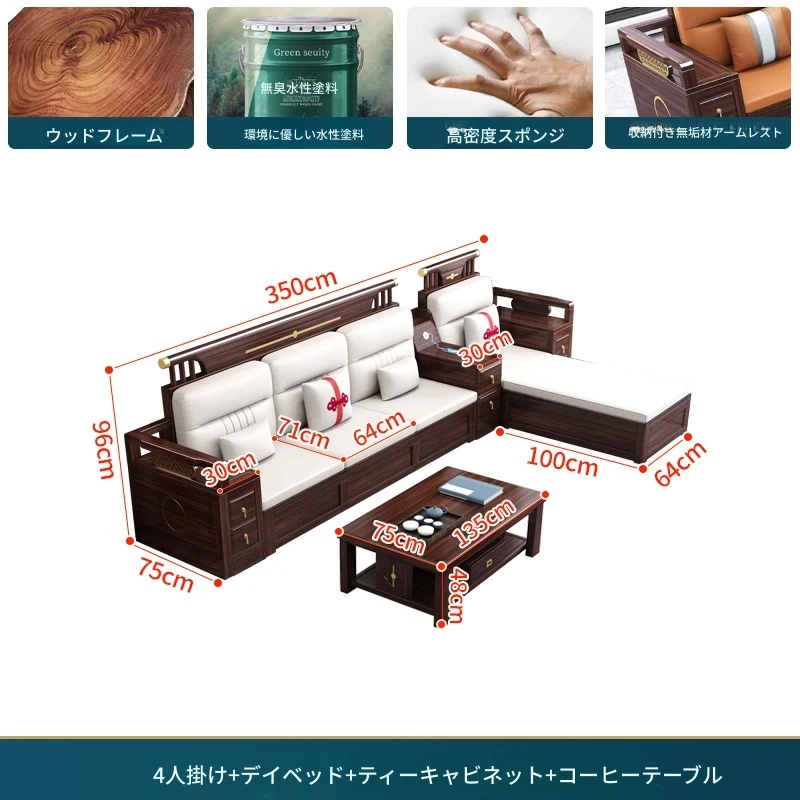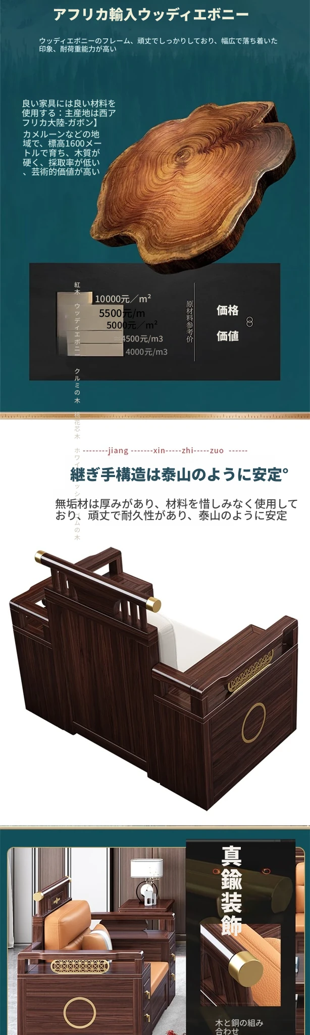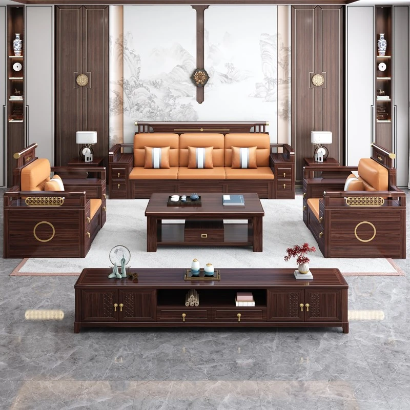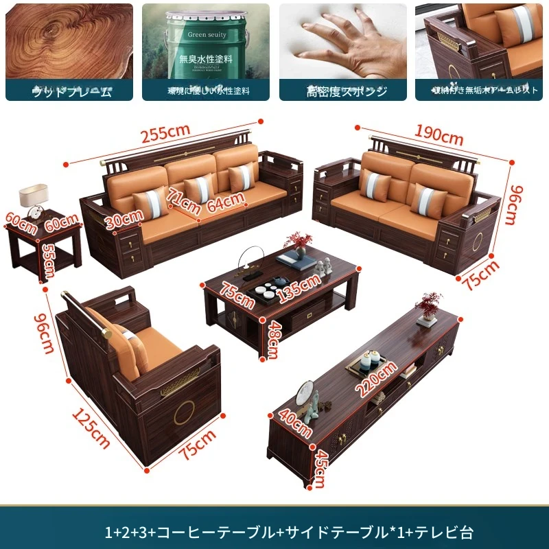 ウッディブラックウッド製の本格派新中式スタイルソファ、高さのある収納付きで冬夏問わず快適な高品質ラグジュアリーリビング家具セット。あなたのリビングを格上げする一品です!