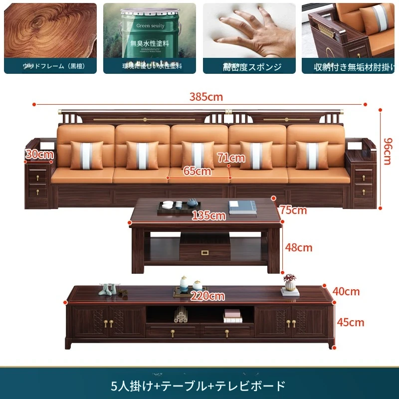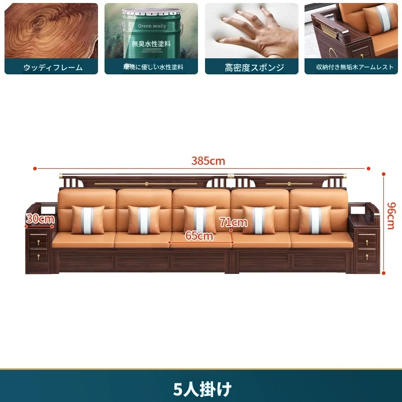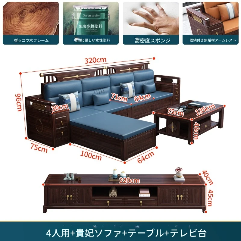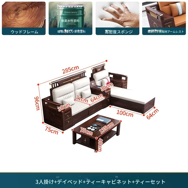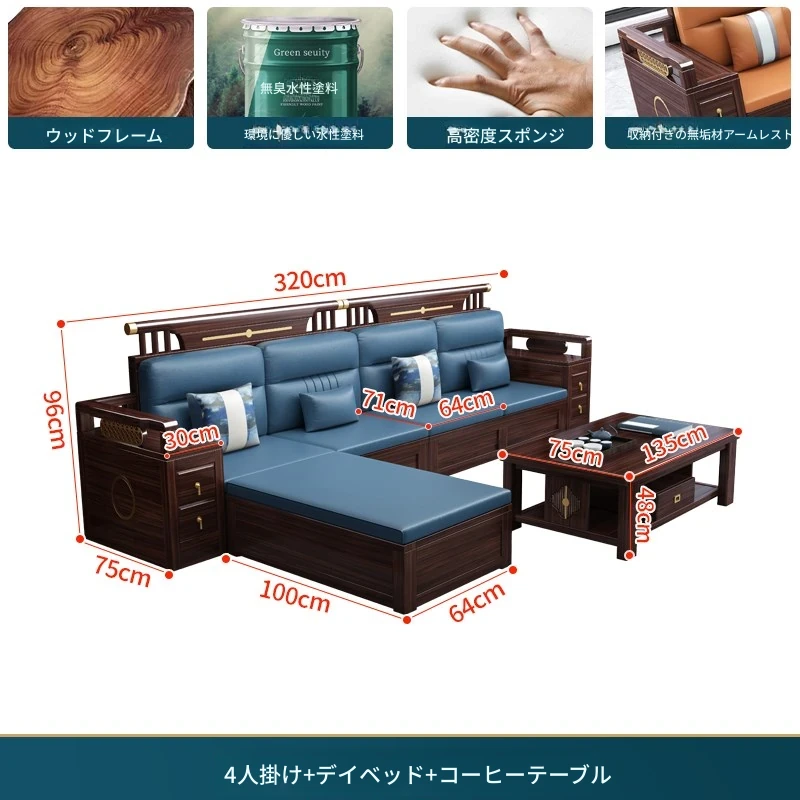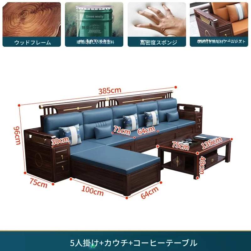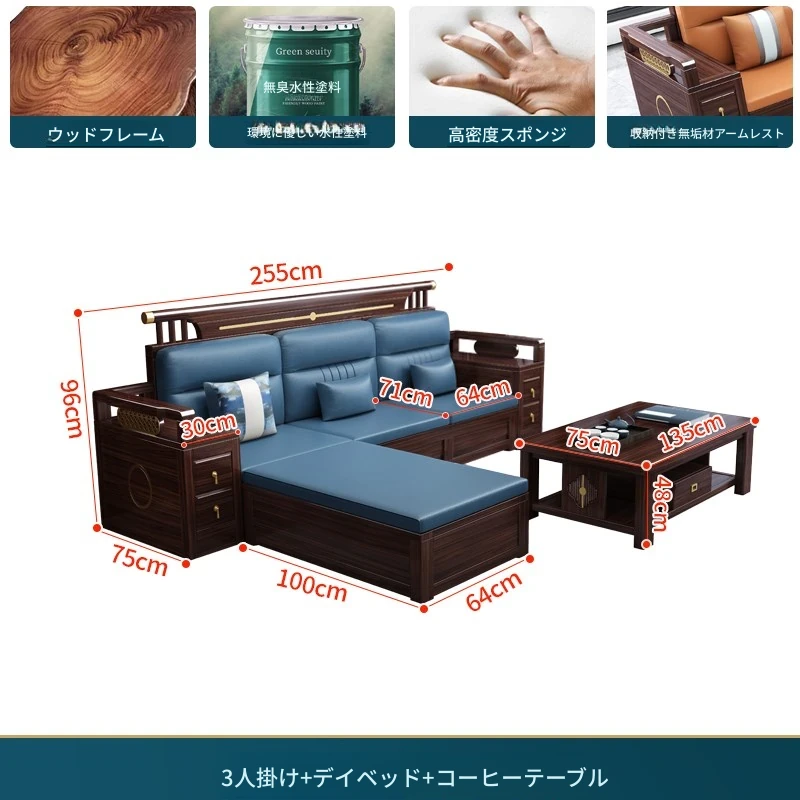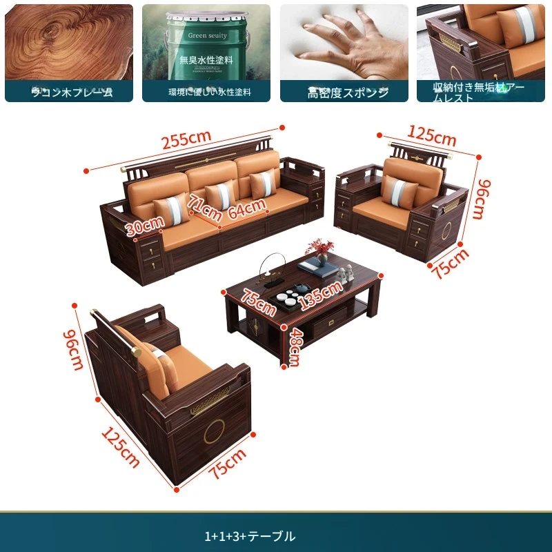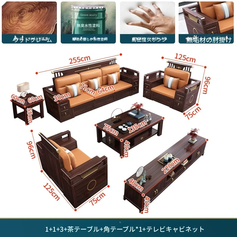 ウッディブラックウッド製の本格派新中式スタイルソファ、高さのある収納付きで冬夏問わず快適な高品質ラグジュアリーリビング家具セット。あなたのリビングを格上げする一品です!