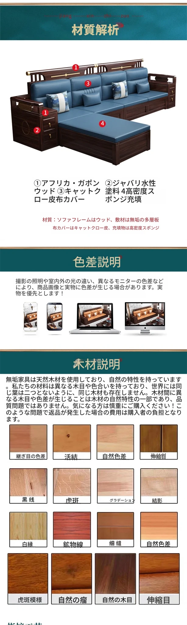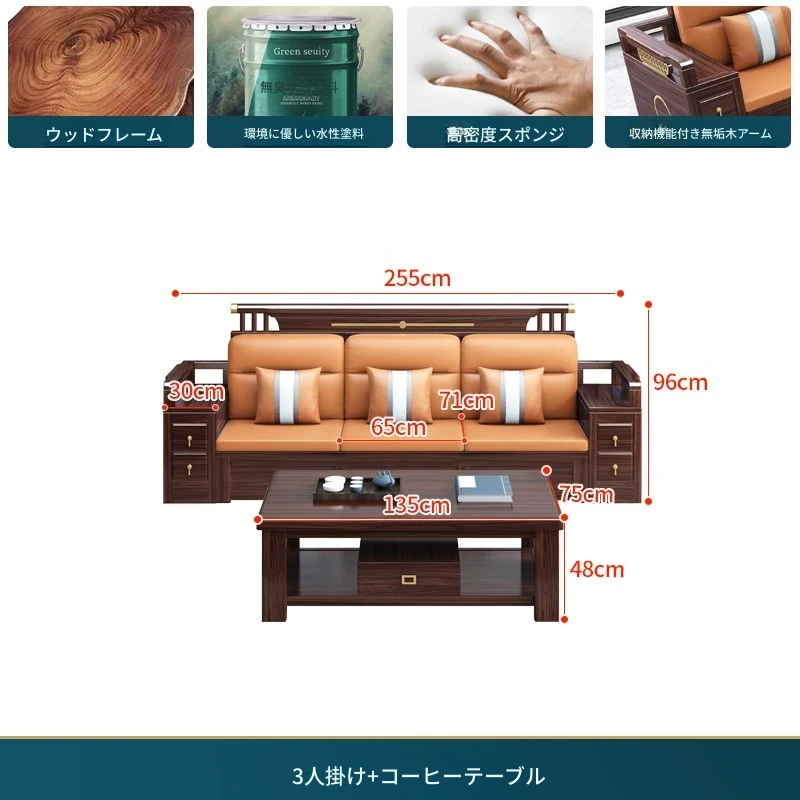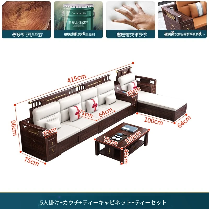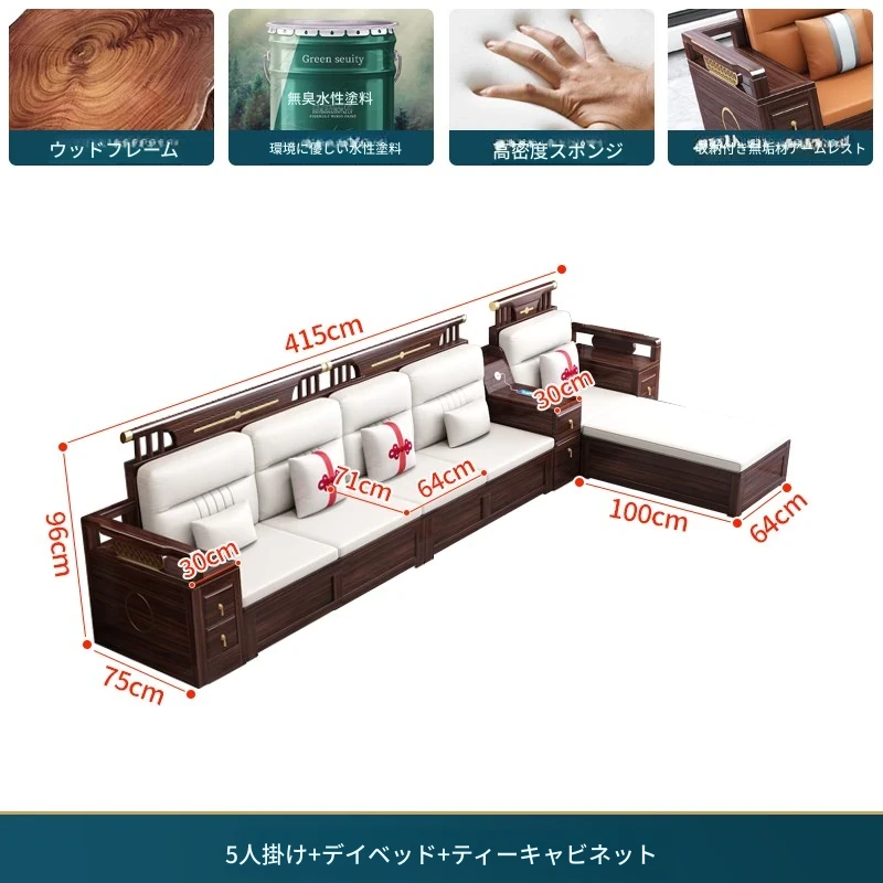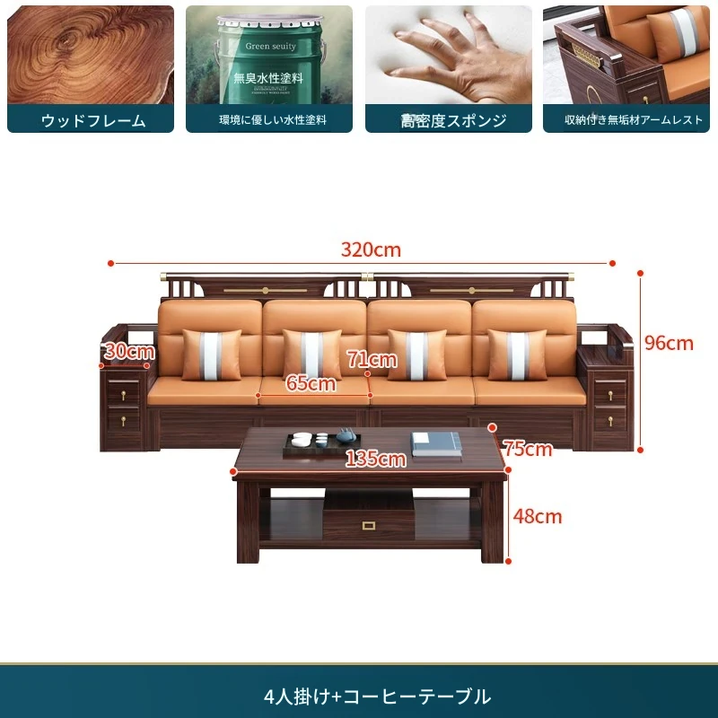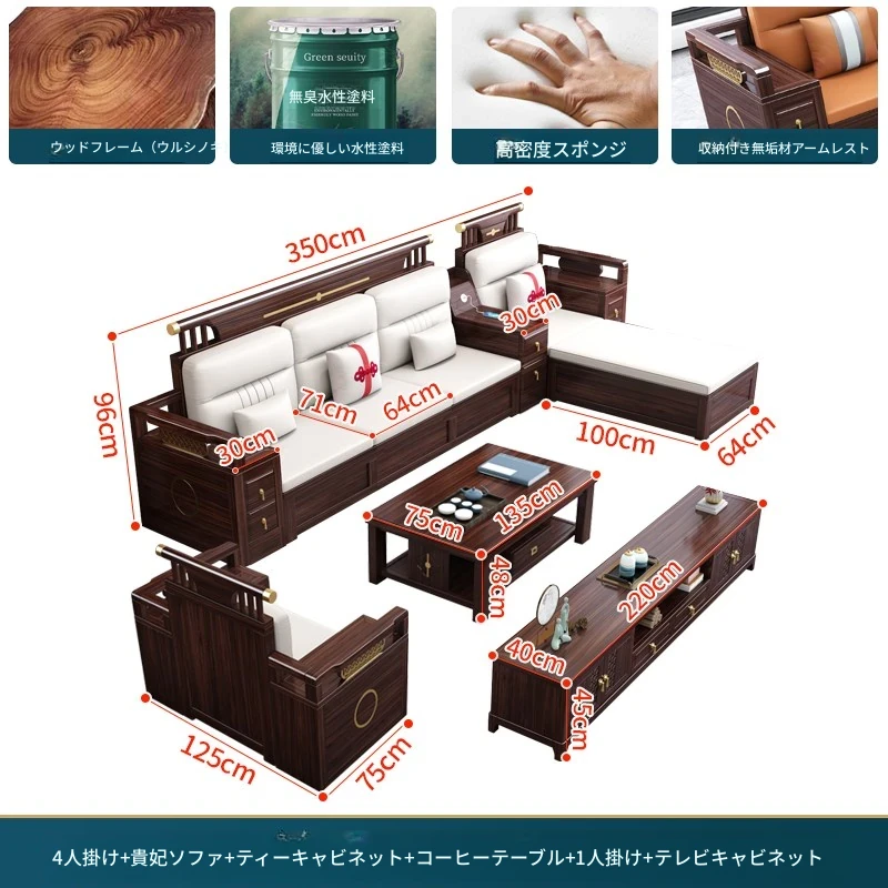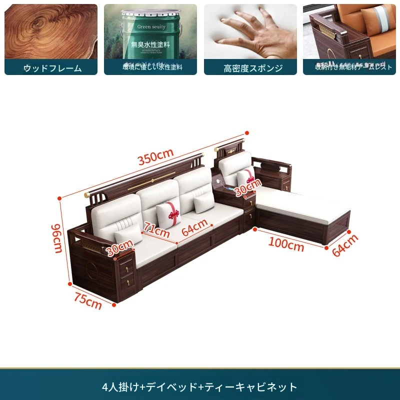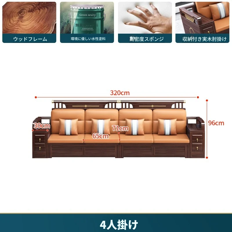 ウッディブラックウッド製の本格派新中式スタイルソファ、高さのある収納付きで冬夏問わず快適な高品質ラグジュアリーリビング家具セット。あなたのリビングを格上げする一品です!