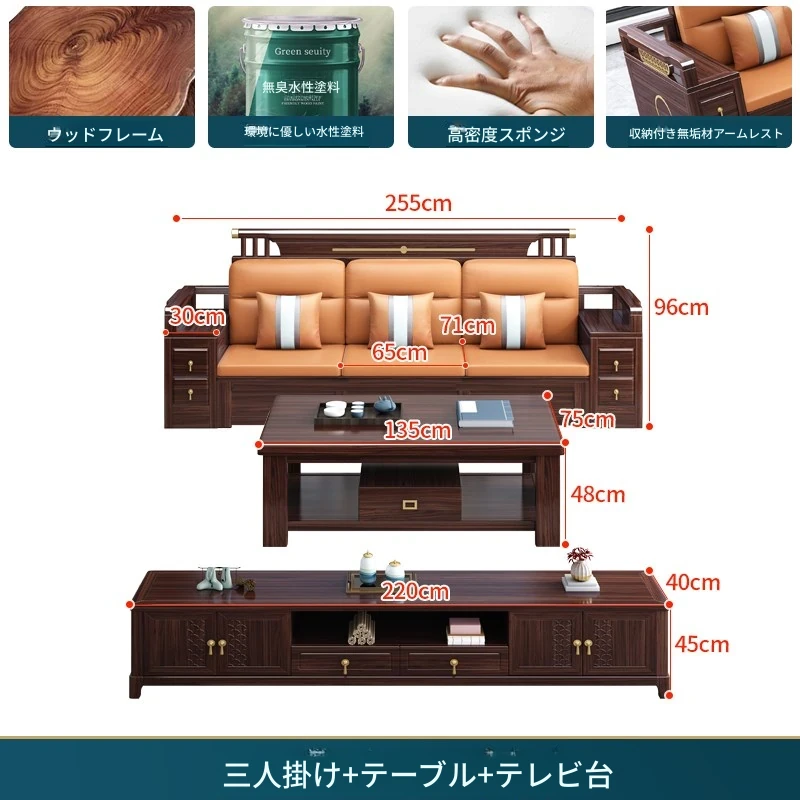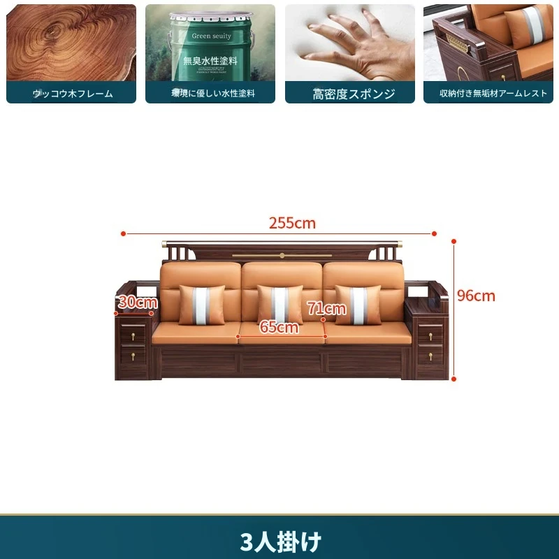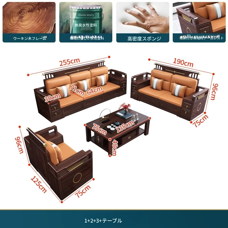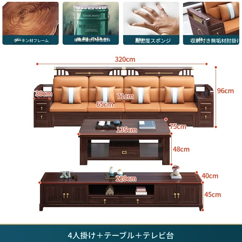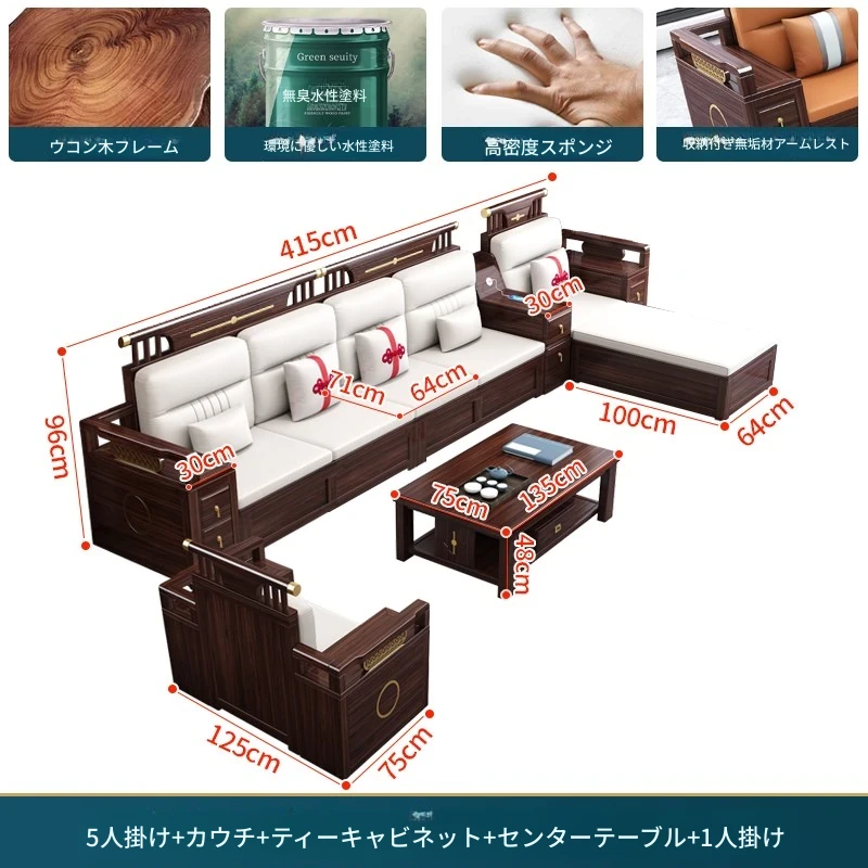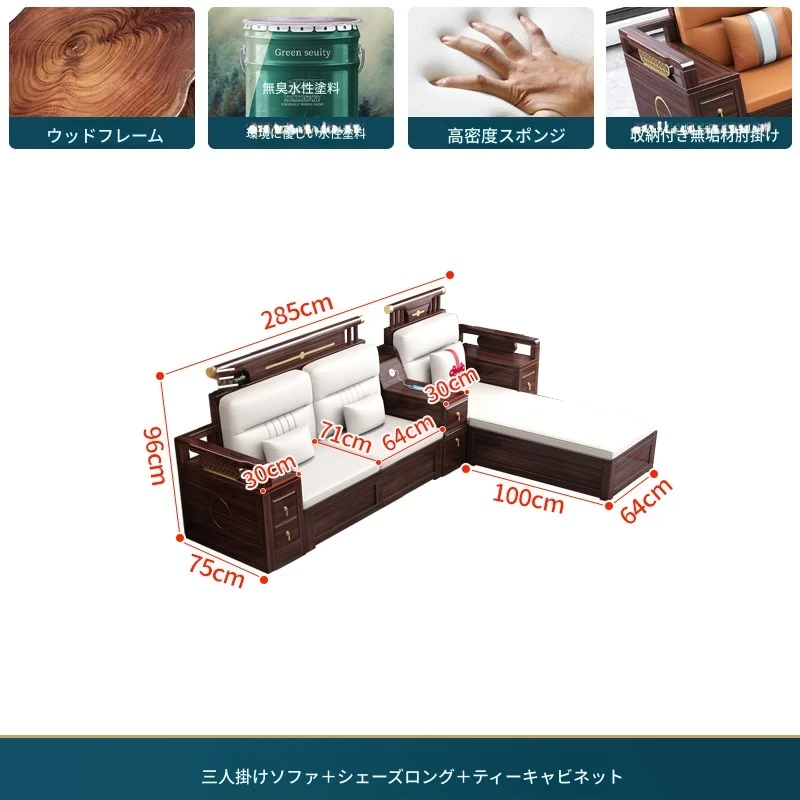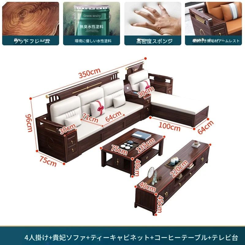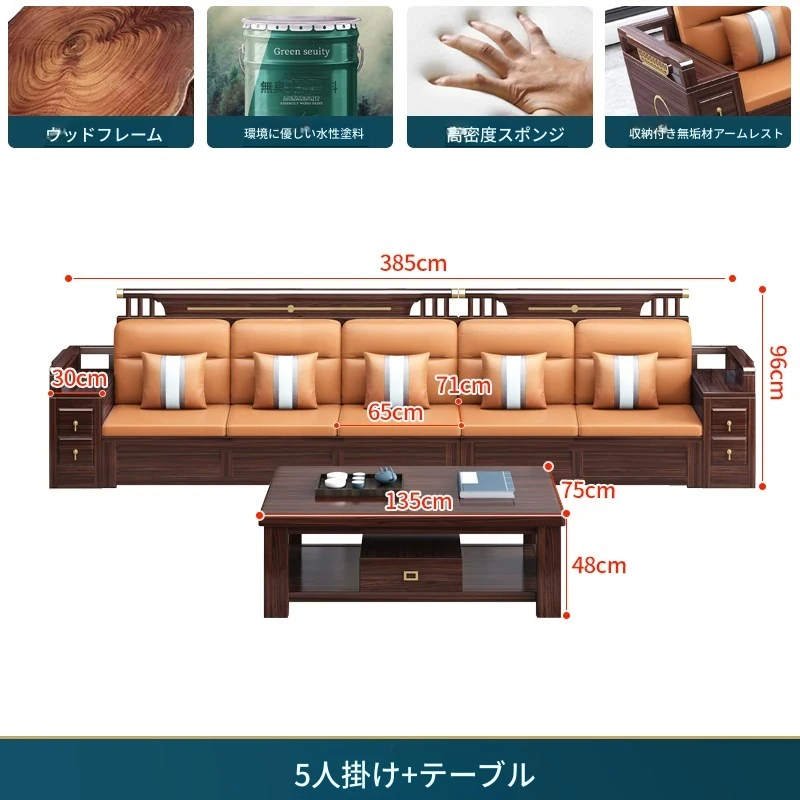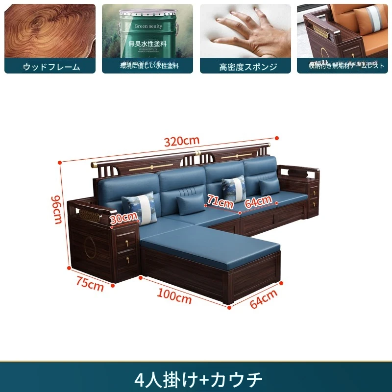 ウッディブラックウッド製の本格派新中式スタイルソファ、高さのある収納付きで冬夏問わず快適な高品質ラグジュアリーリビング家具セット。あなたのリビングを格上げする一品です!