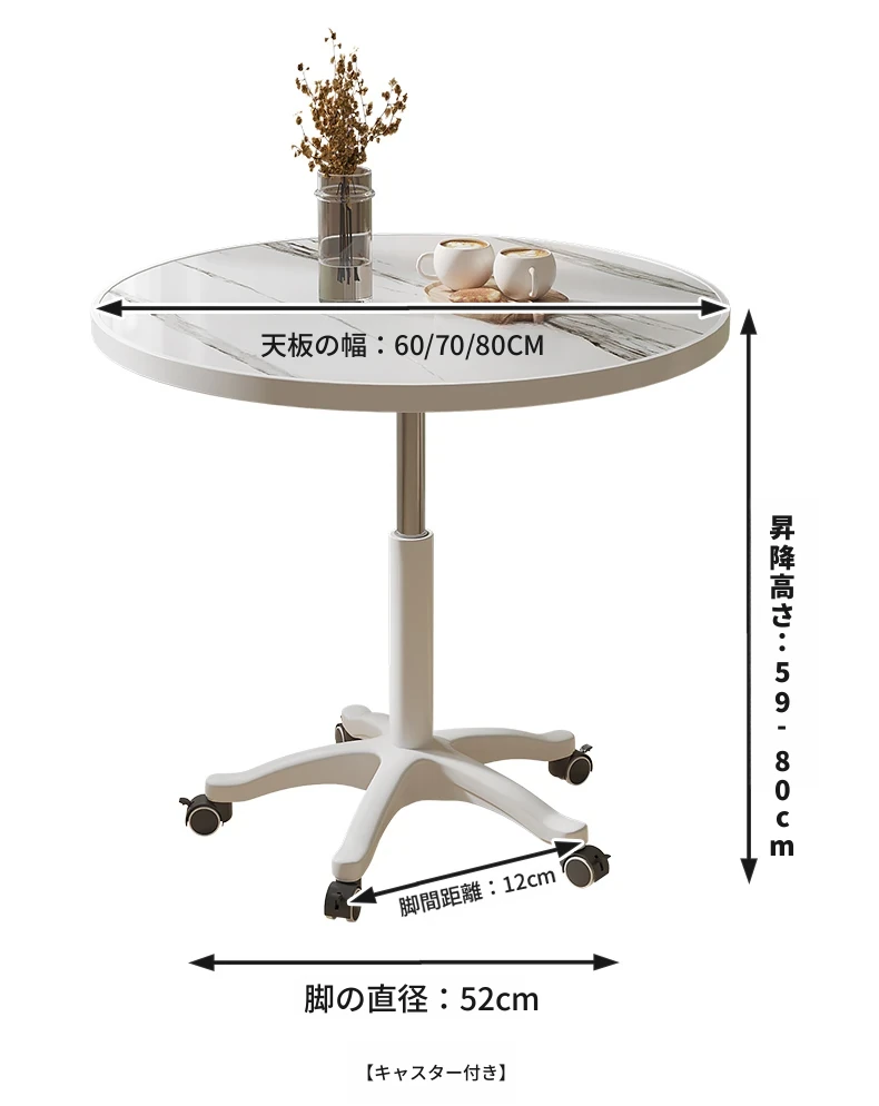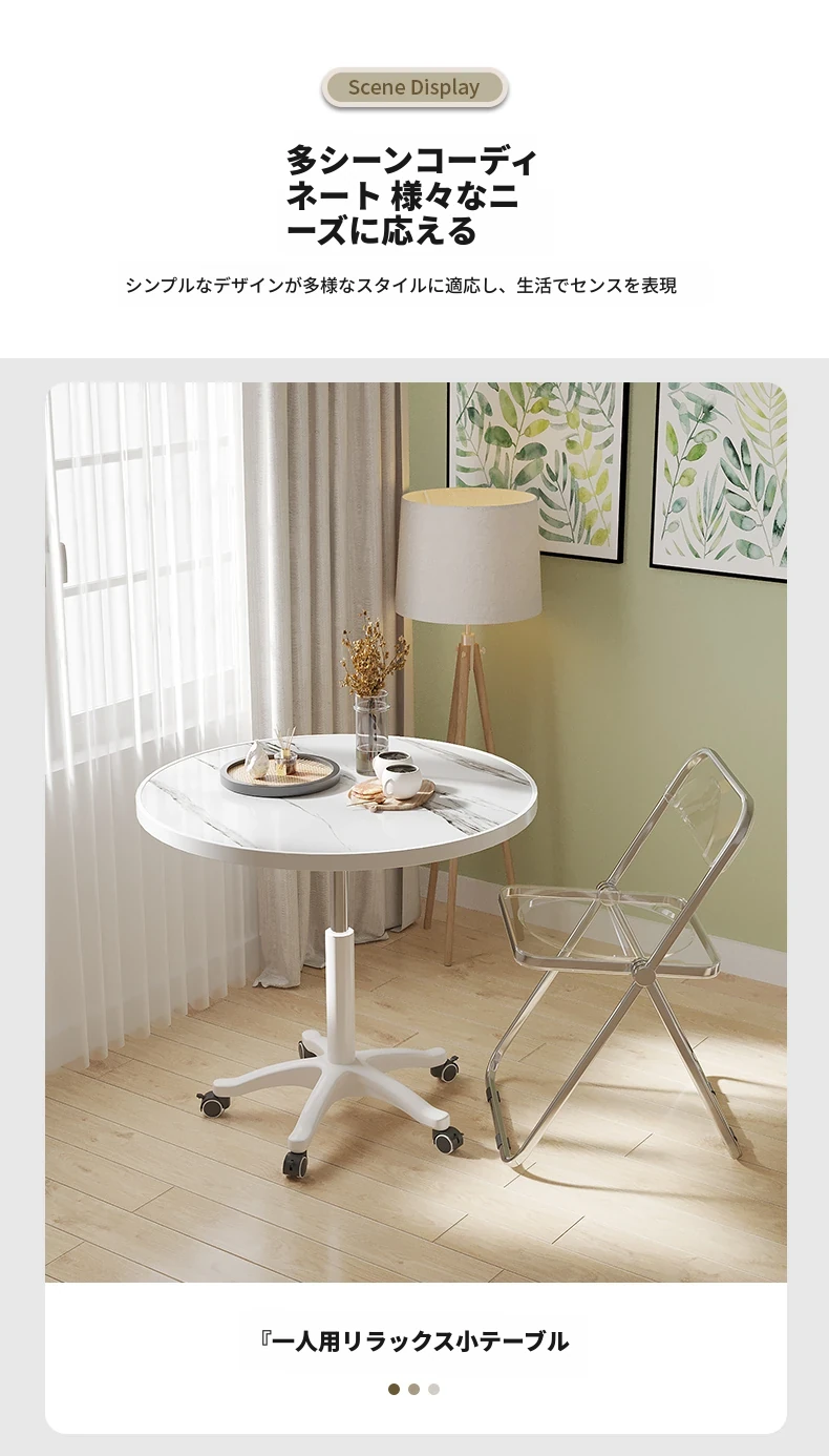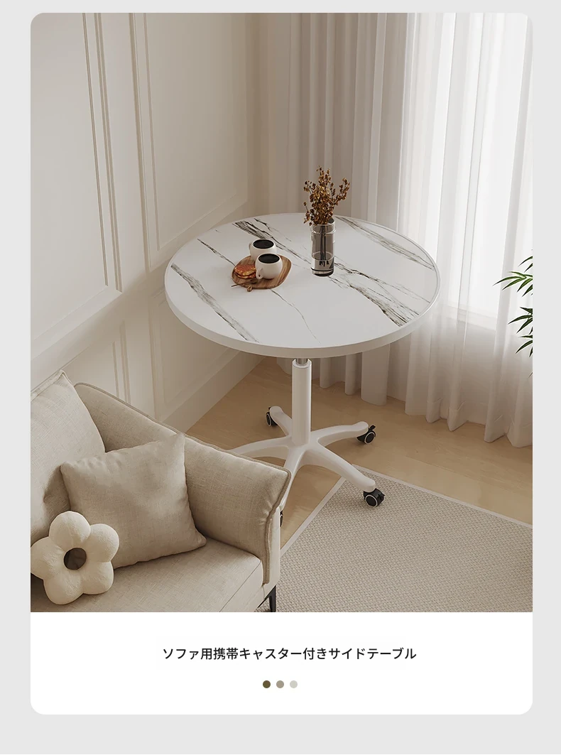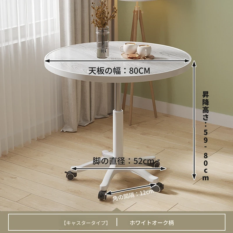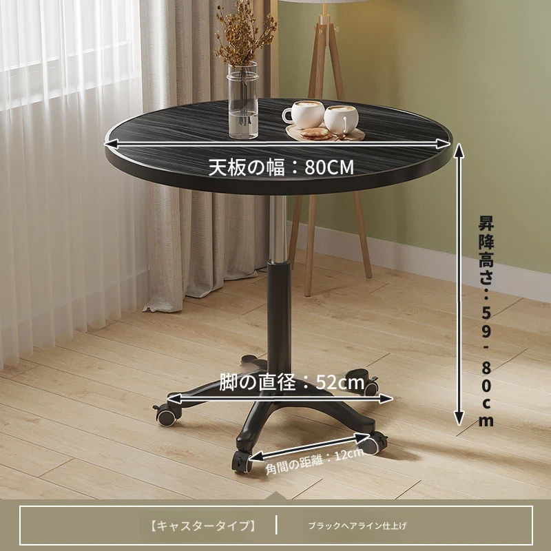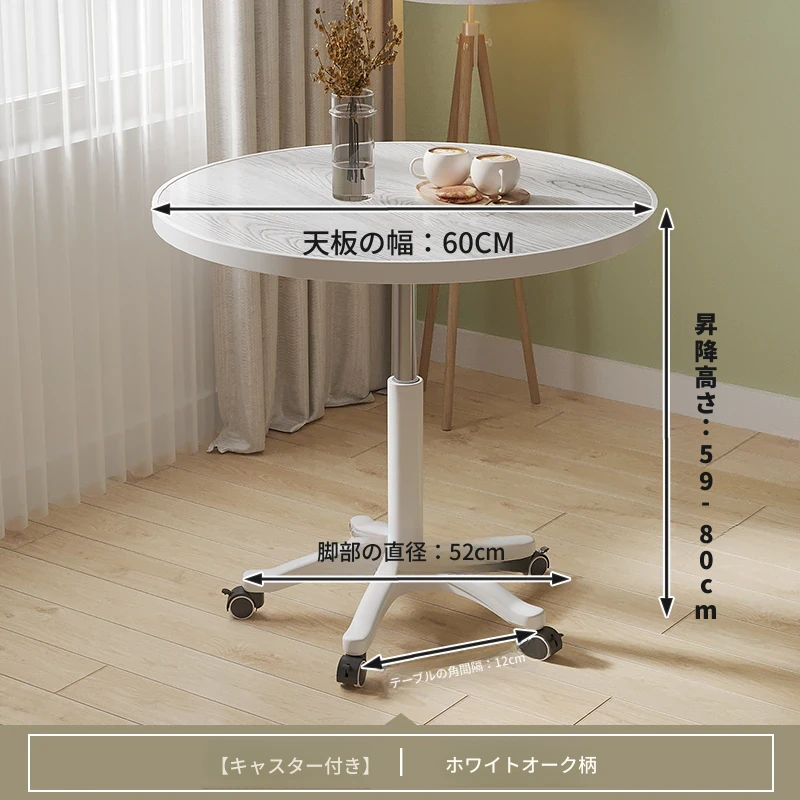 シンプルな家庭用バルコニー用昇降式小丸テーブル - キャスター付きで移動もラクラク!接客や打ち合わせ、おしゃれなソファサイドやベッドサイドのリラックススペースに最適な一品です。