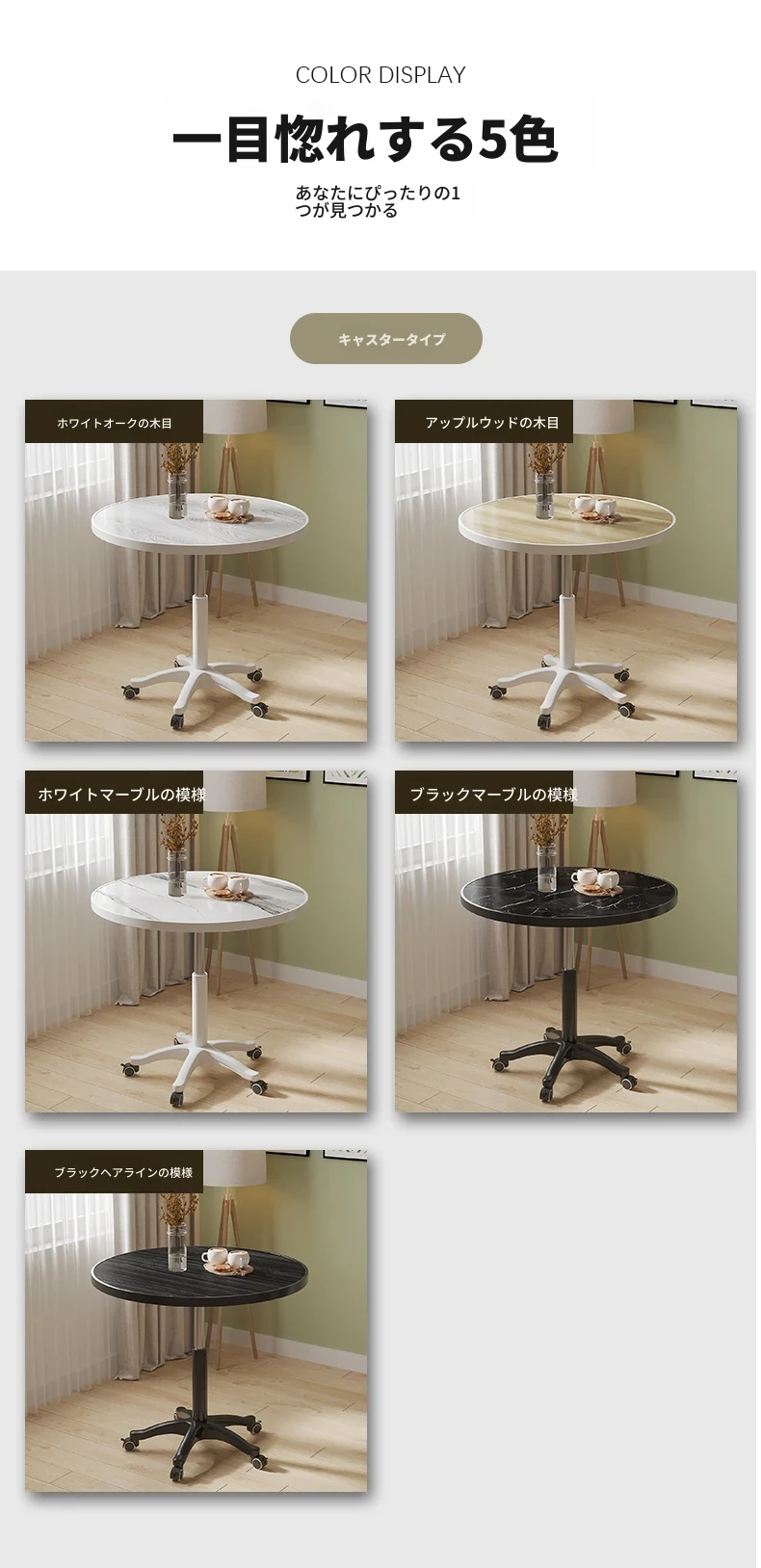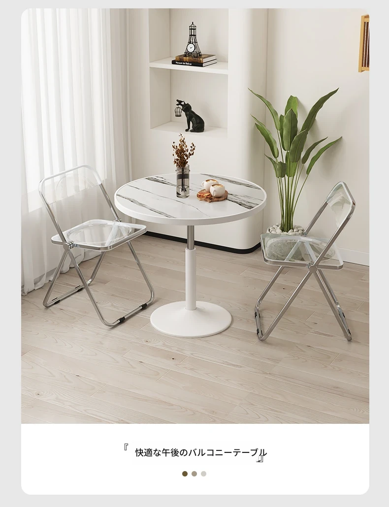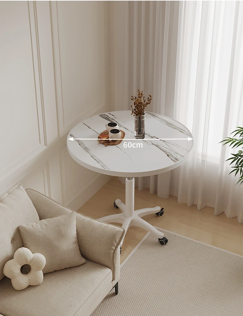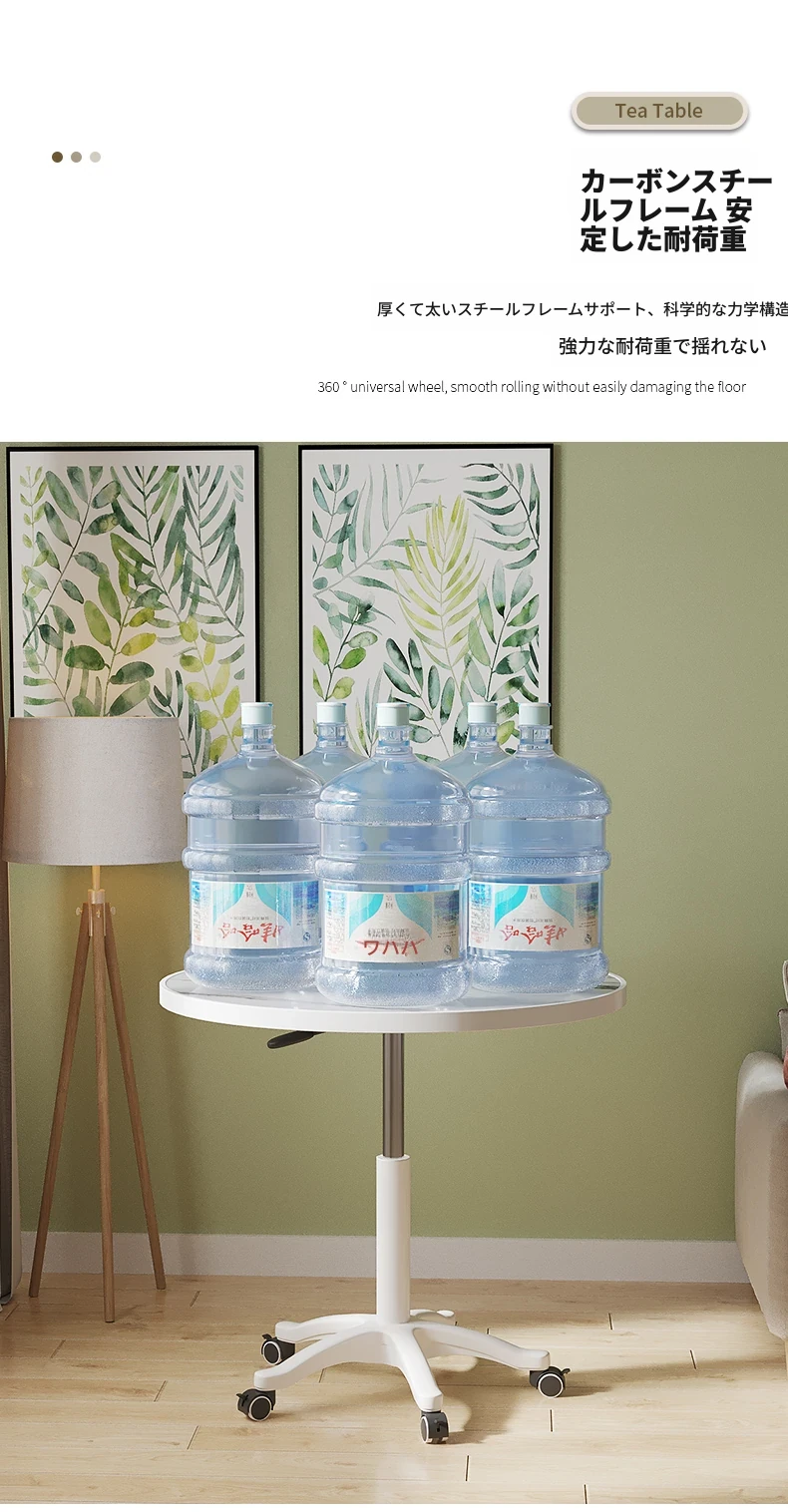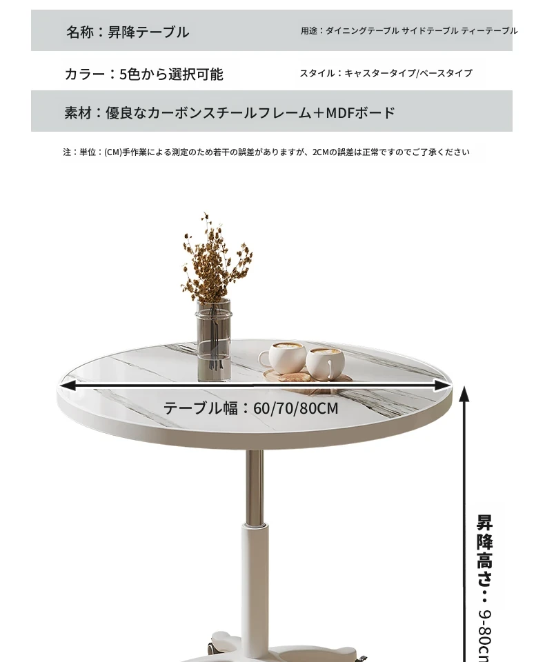 シンプルな家庭用バルコニー用昇降式小丸テーブル - キャスター付きで移動もラクラク!接客や打ち合わせ、おしゃれなソファサイドやベッドサイドのリラックススペースに最適な一品です。