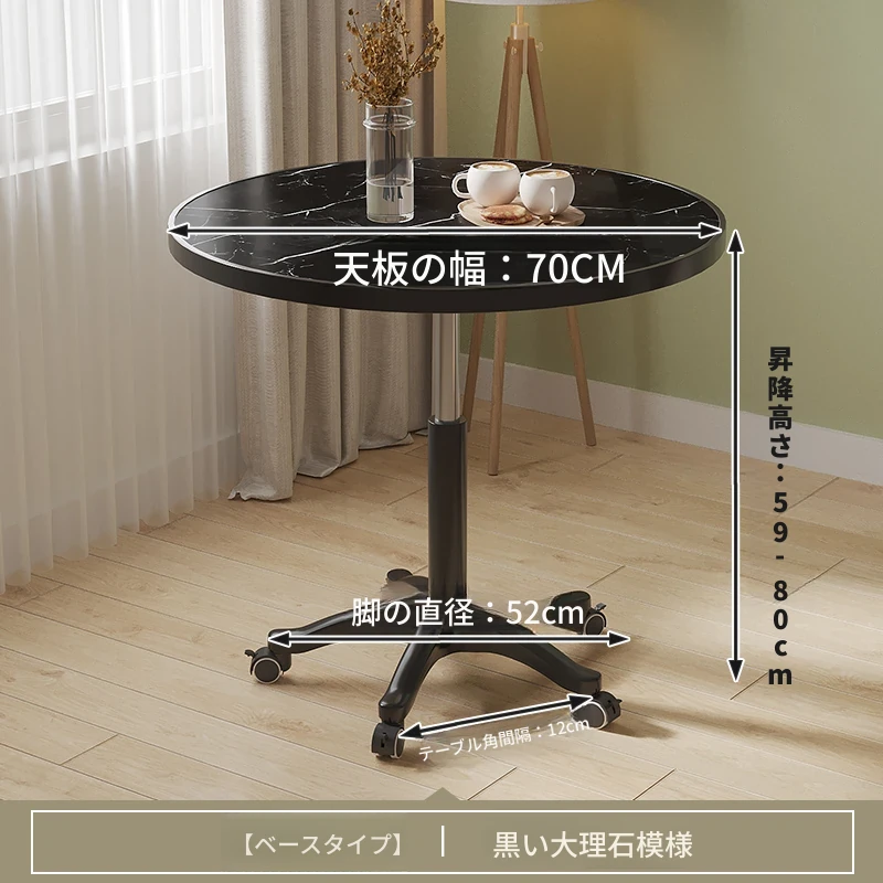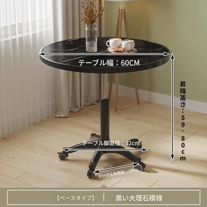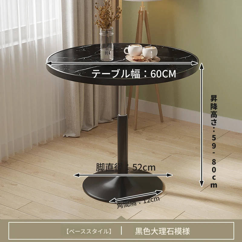 直径60ブラックマーブル ベースタイプ 昇降可能/2f6