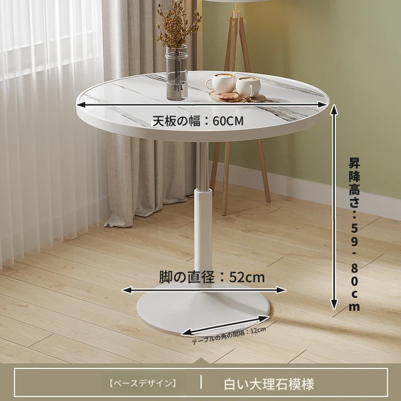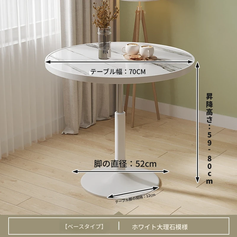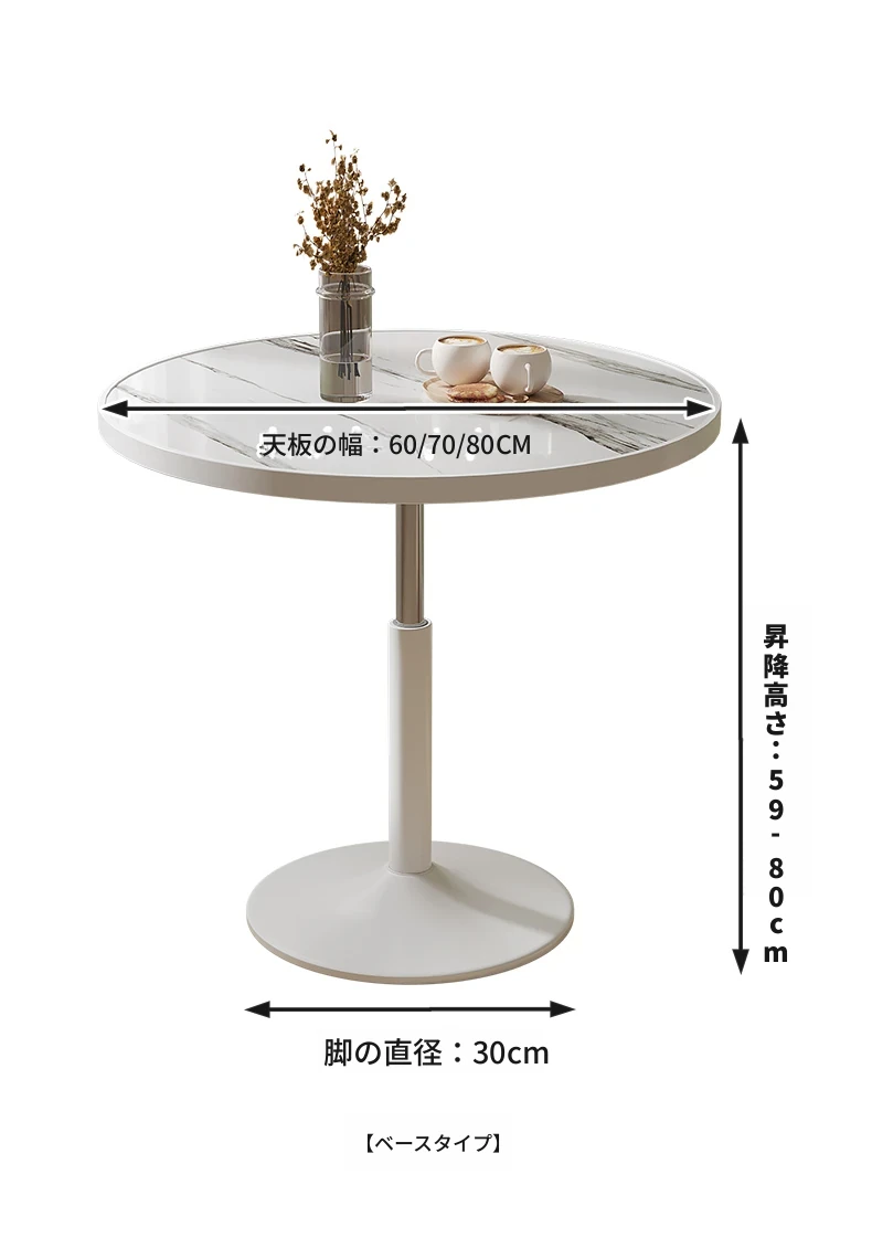 直径60ホワイトマーブル ベースタイプ 昇降可能/70