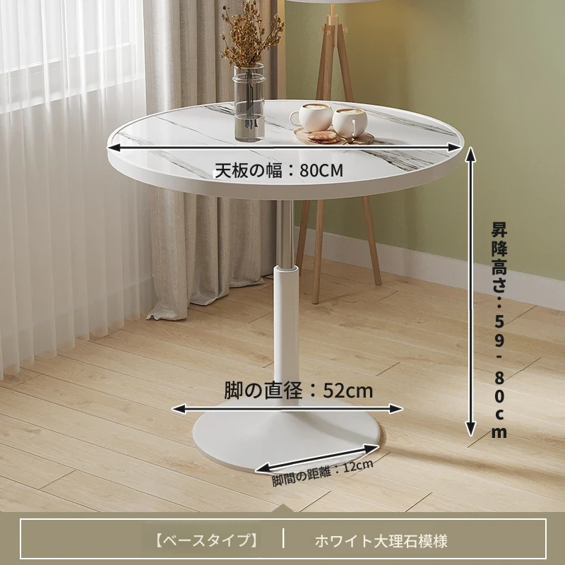直径80ホワイトマーブル ベースタイプ 昇降可能/cf8