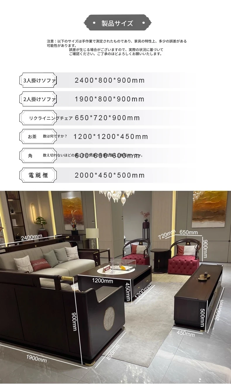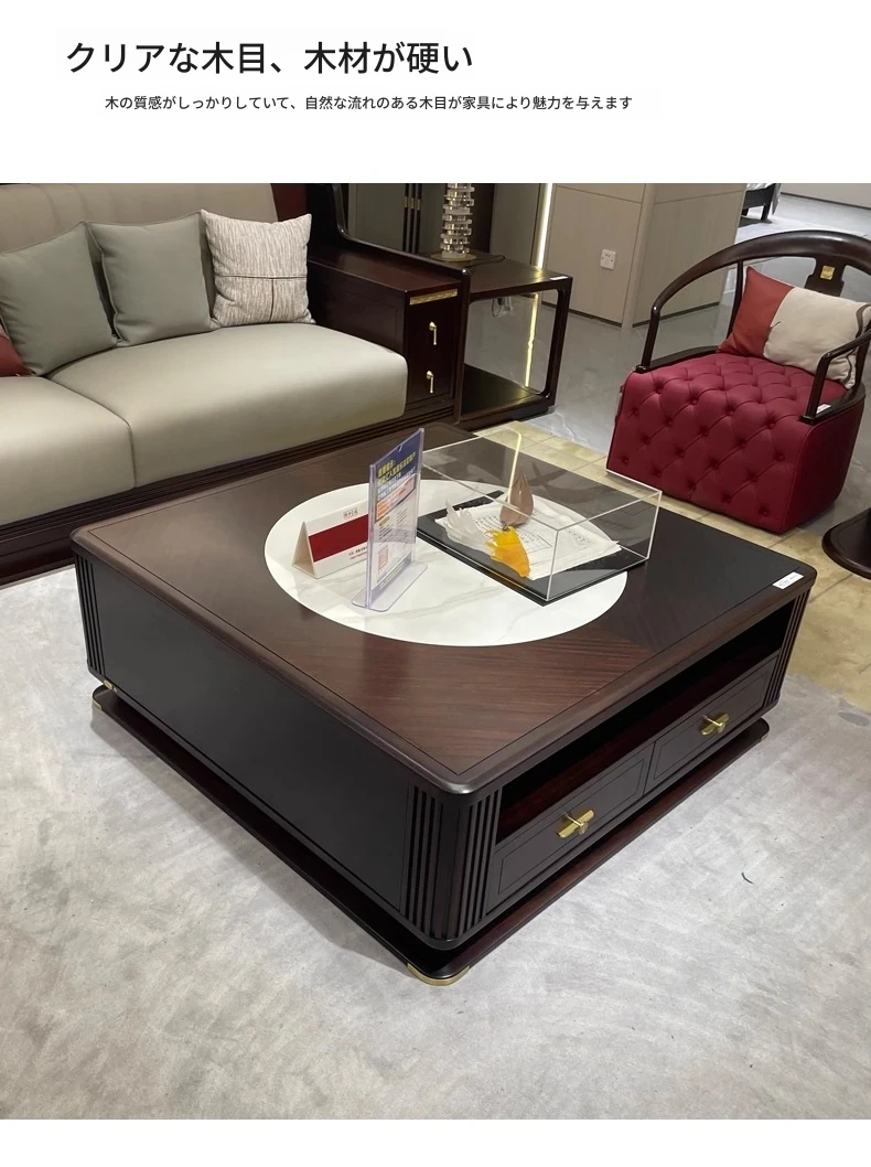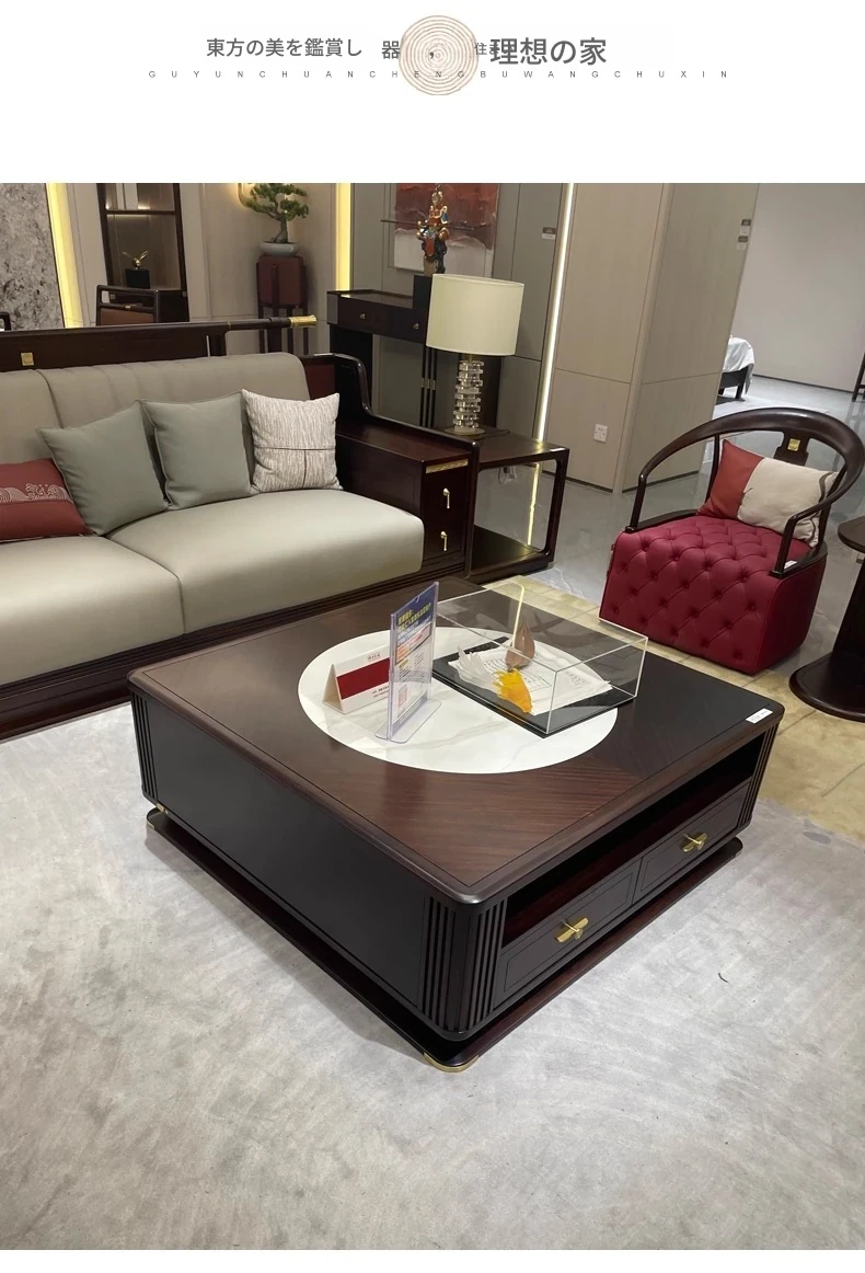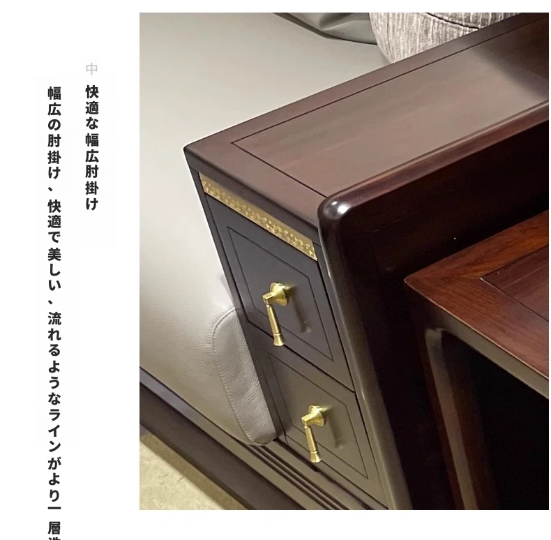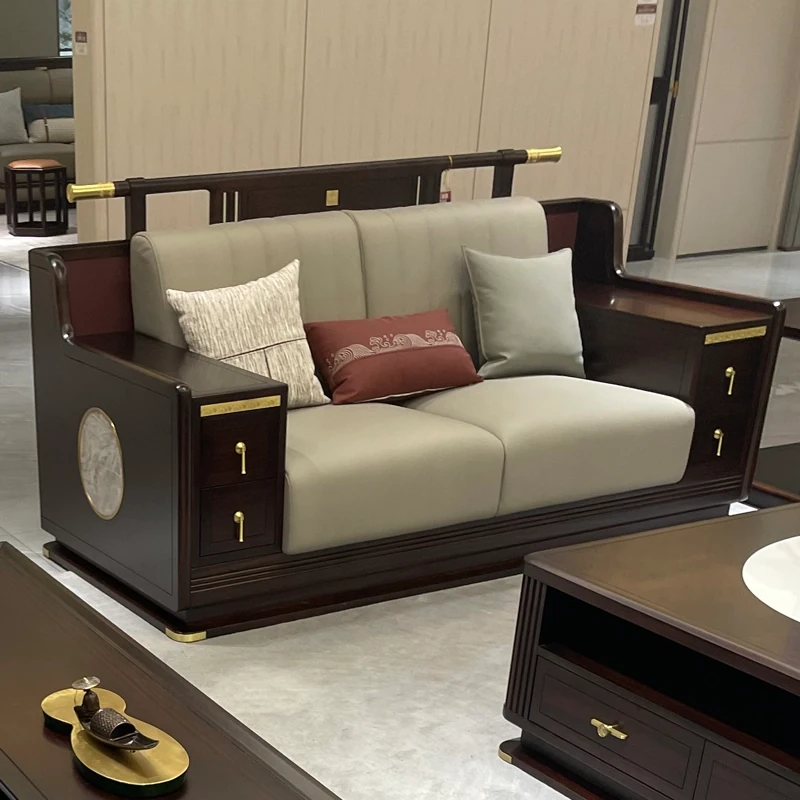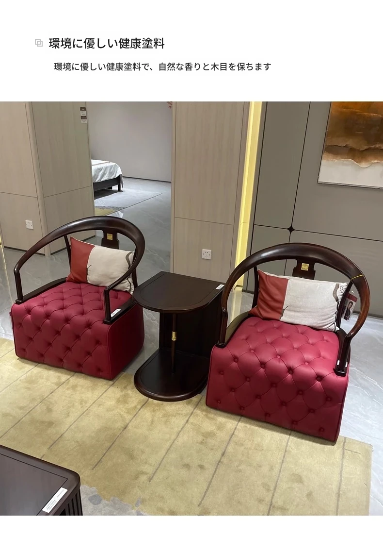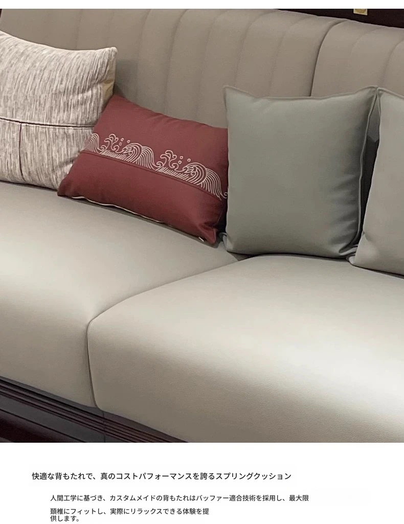 新中式ウッドソファセット - ウッ金木使用、モダンでシンプルなデザイン、広々としたリビングに最適な中国風禅スタイル家具。高級感溢れる空間を演出し、心安らぐひとときを提供します!