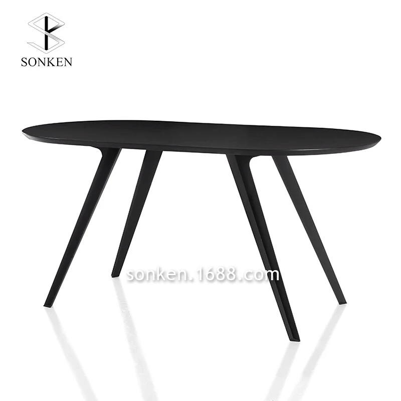 モダンなイタリアンミニマリズム!スプレー塗装のブラック&ホワイト楕円形カフェテーブル。おしゃれなカフェやティーショップの打ち合わせに最適!食事やお茶の時間を特別に演出する一品です。