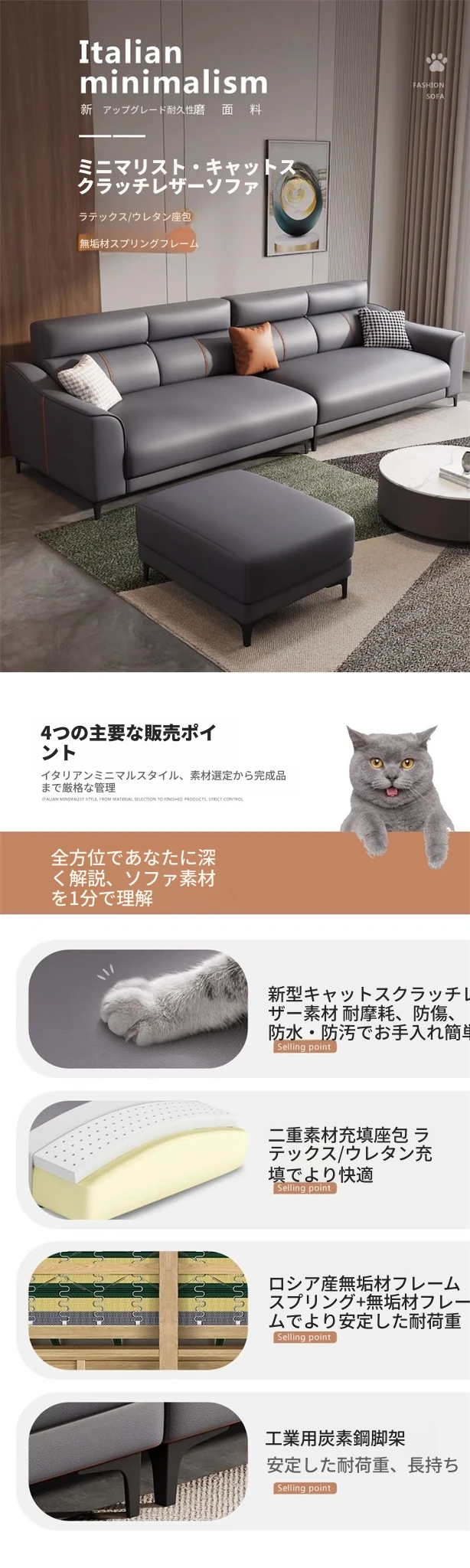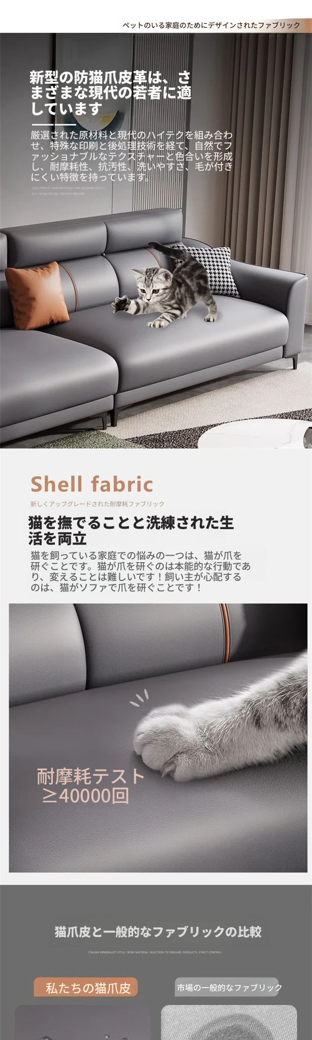 モダンミニマリストデザインのキャットクローソファー - 3人掛け・4人掛け対応、軽やかなラグジュアリー感のある乳白色レザー仕上げ。小さなリビングにもぴったり!おしゃれで快適な空間を演出します。