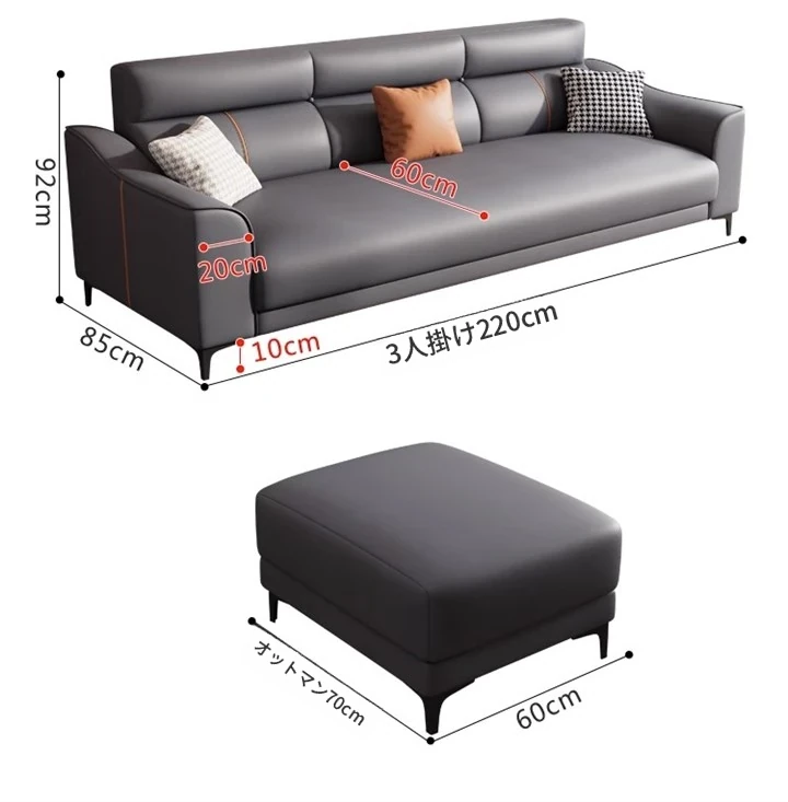 2.2メートル直列3人用+フットスツール【ラテックスアップグレードモデル】