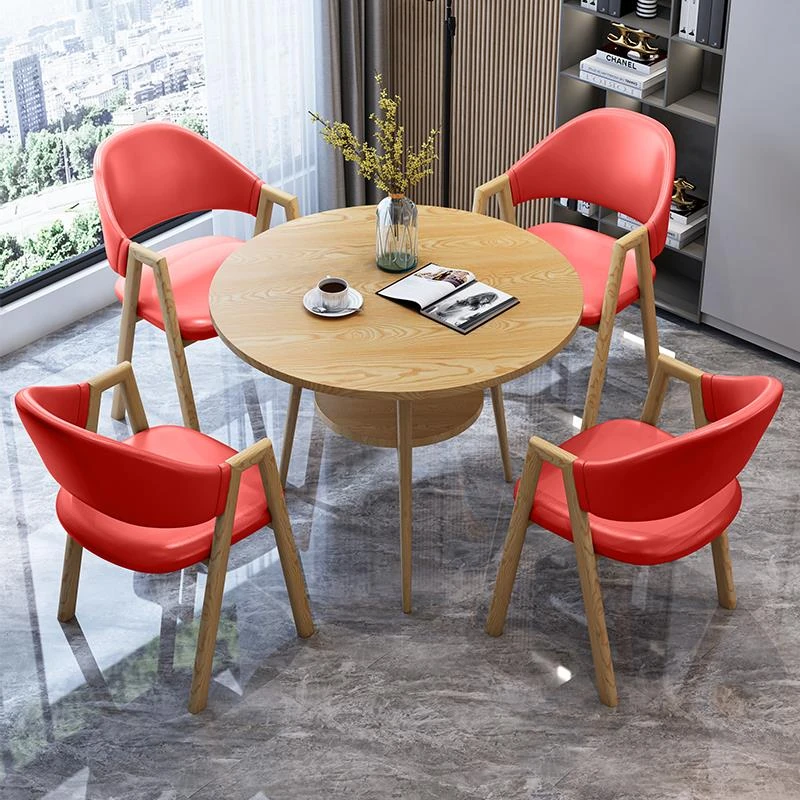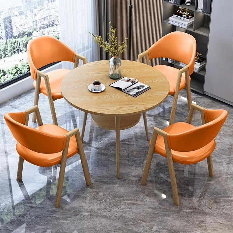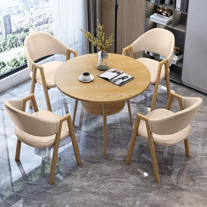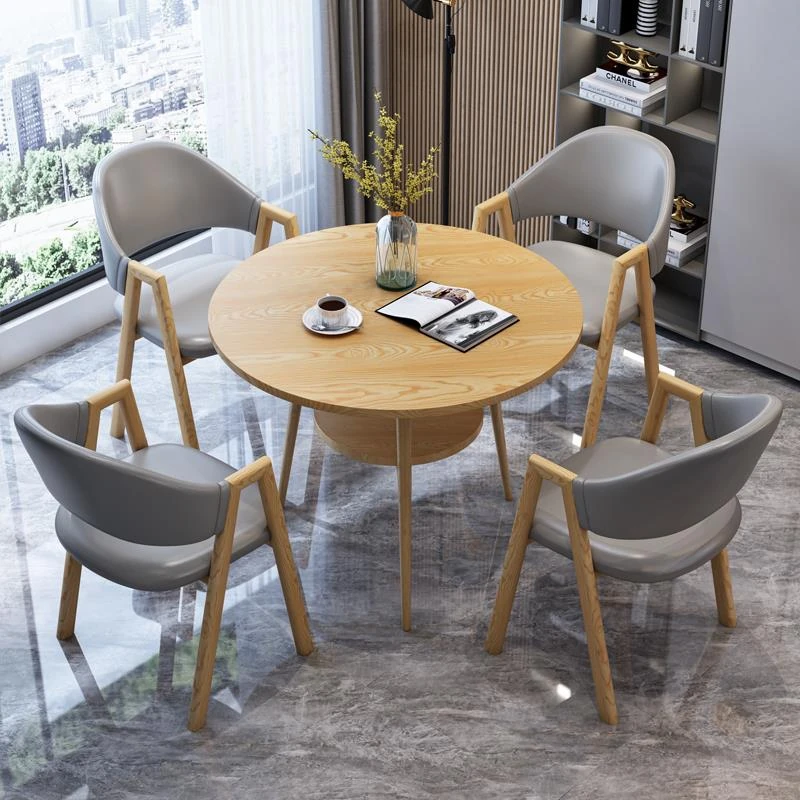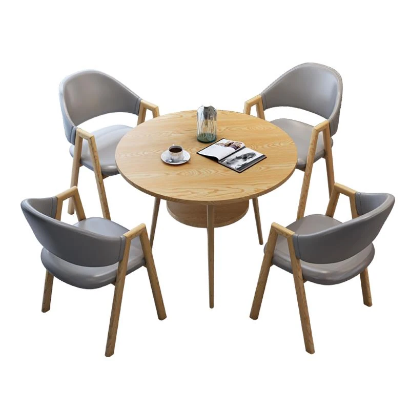シンプルでモダンな会議テーブル&チェアセット - 不動産販売所に最適なリラックス空間を演出!接客や商談にぴったりな小さなラウンドテーブルで、洗練されたスタイルをお楽しみください。