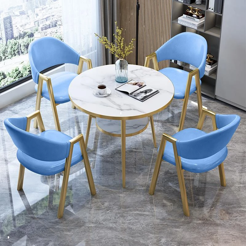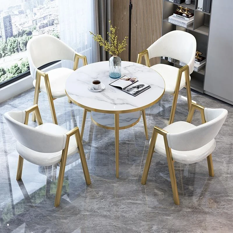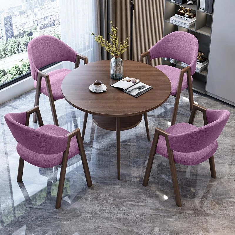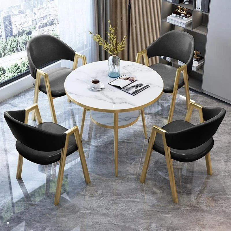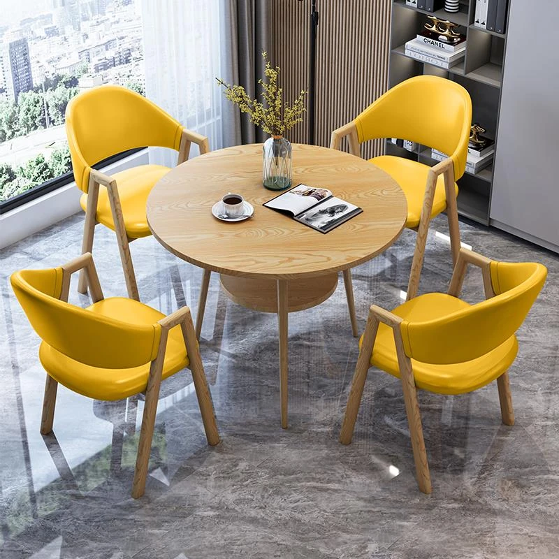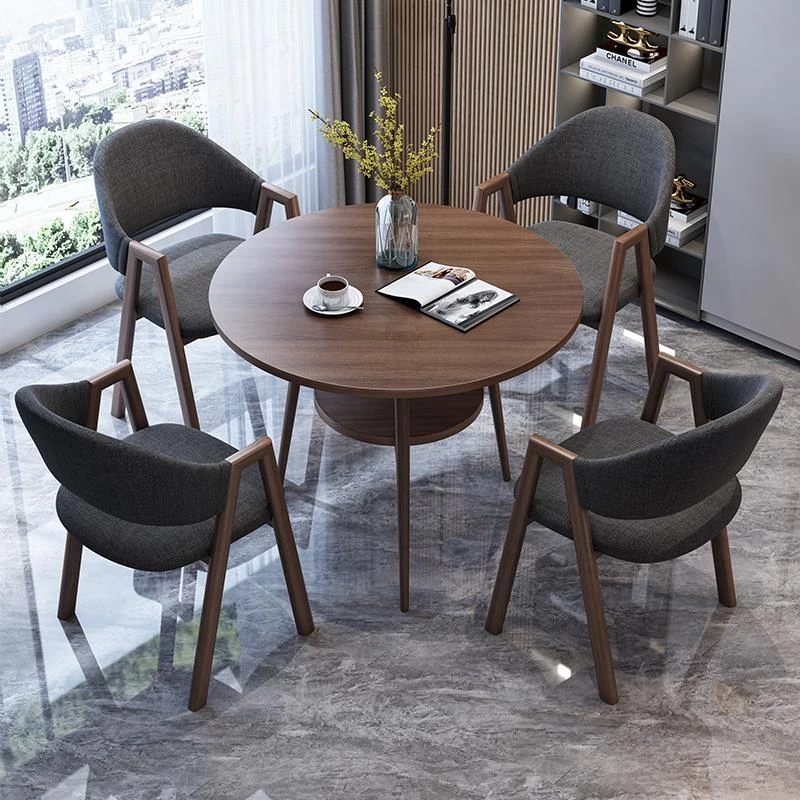 シンプルでモダンな会議テーブル&チェアセット - 不動産販売所に最適なリラックス空間を演出!接客や商談にぴったりな小さなラウンドテーブルで、洗練されたスタイルをお楽しみください。