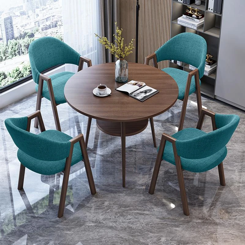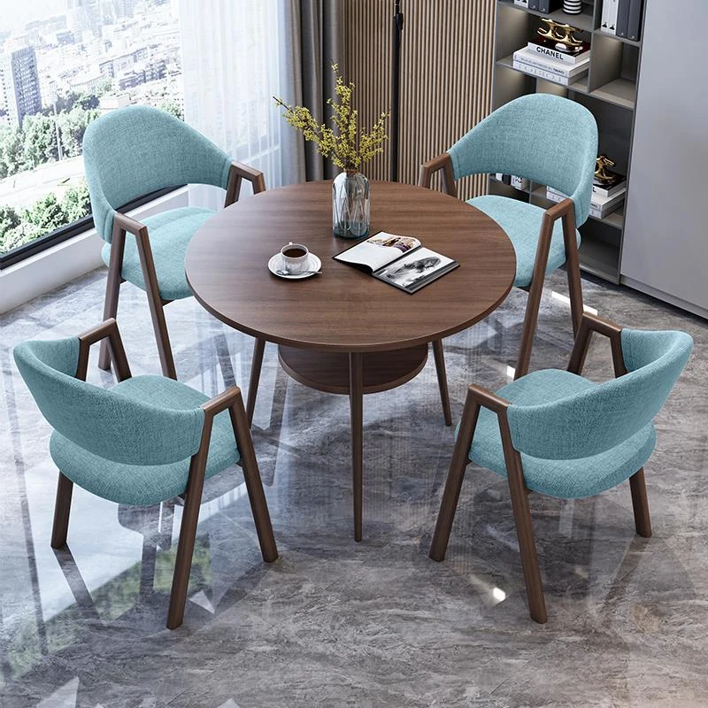 ライトブルー(80ウォールナット色円卓+4布椅子)