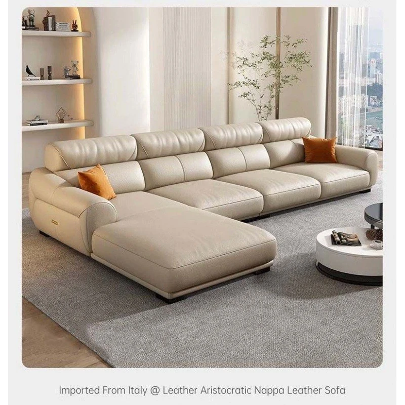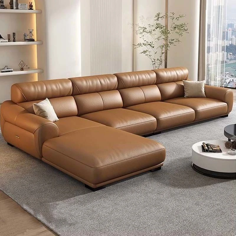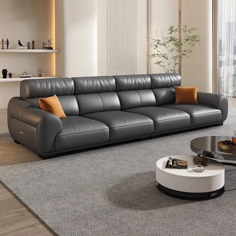 現代的ミニマリスト真皮ソファー - 高品質の牛革を使用したリビングルーム用、CサイズとDサイズ対応、シンプルでスタイリッシュなカウチとフットレスト付き!快適さと洗練されたデザインを両立した一品です。