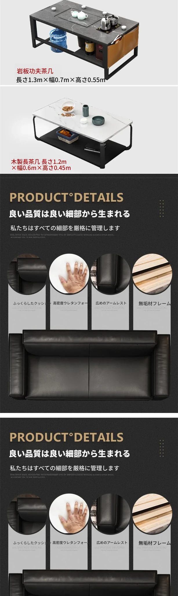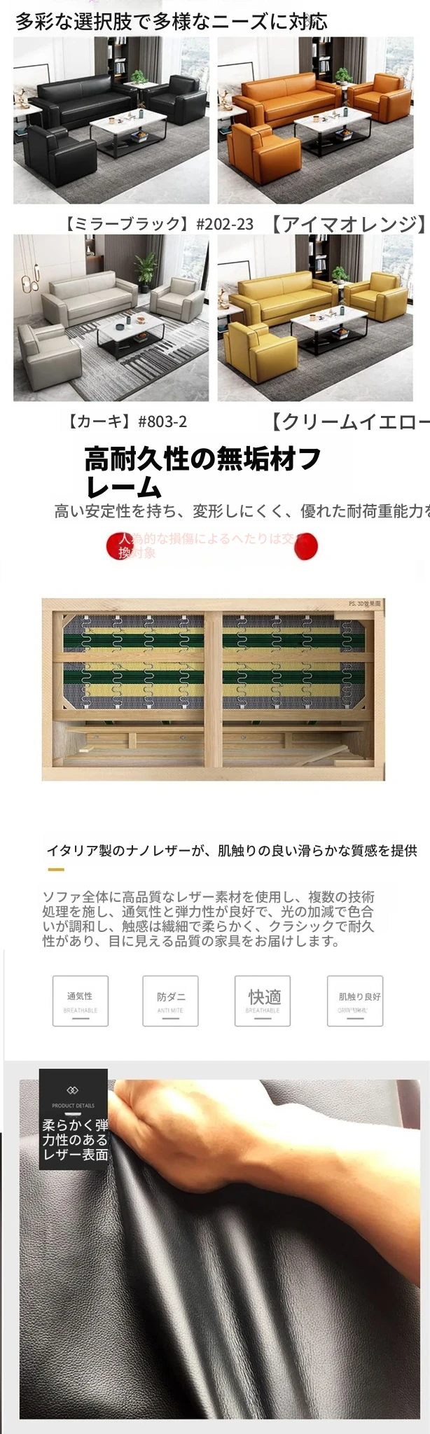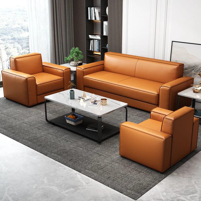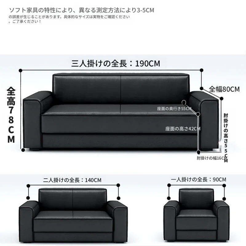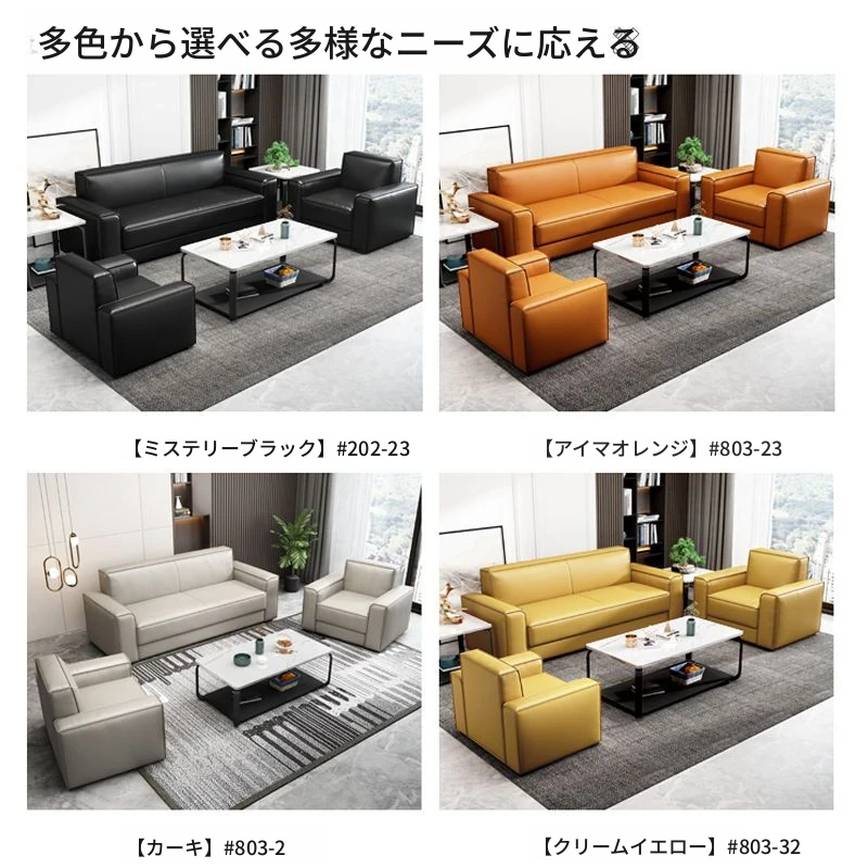 シンプルモダンなビジネス用レザーソファセット|快適なオフィス空間を演出するダブル・スリーピースソファ|来客にも最適なリラックス空間を提供!