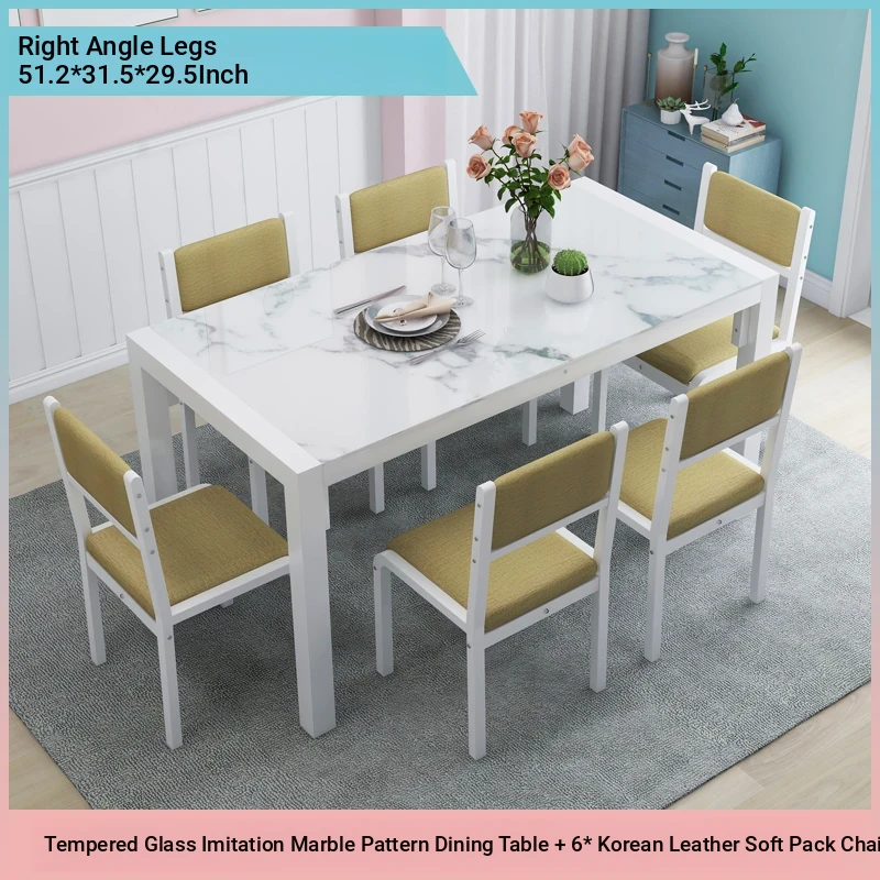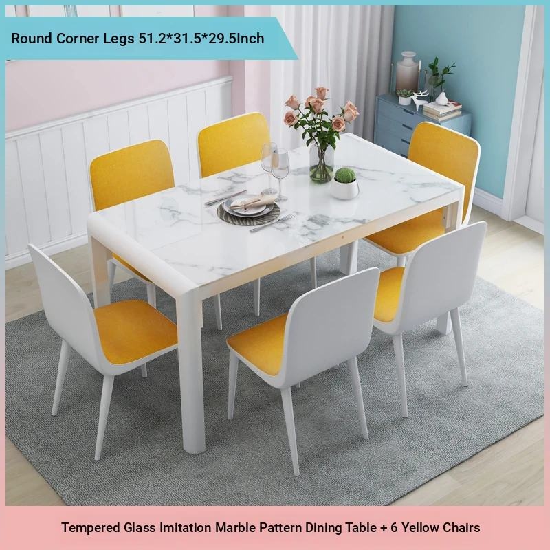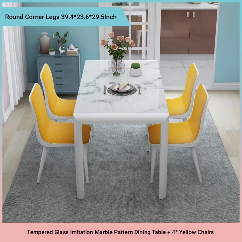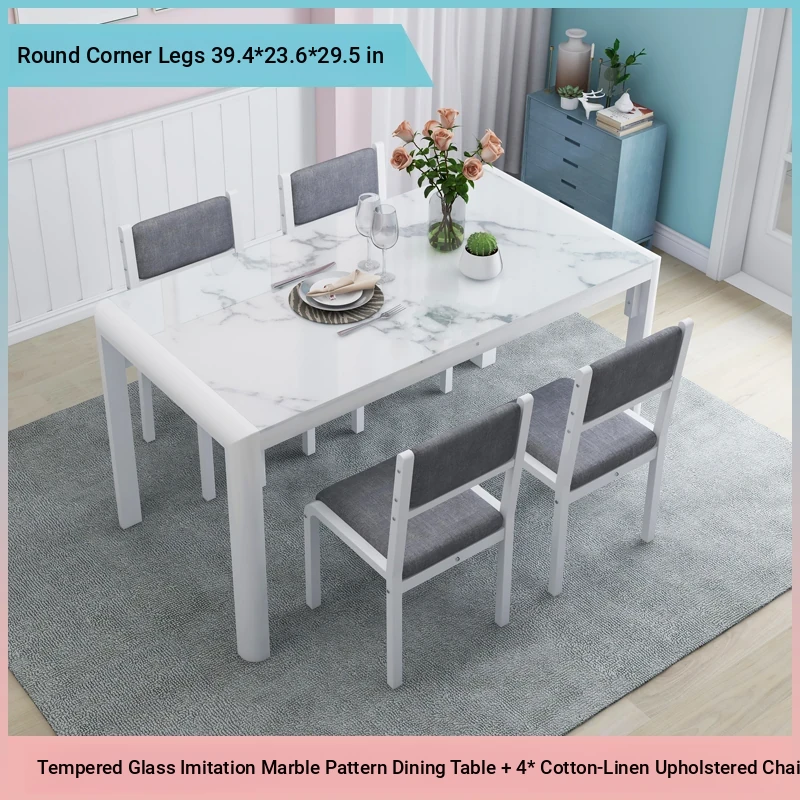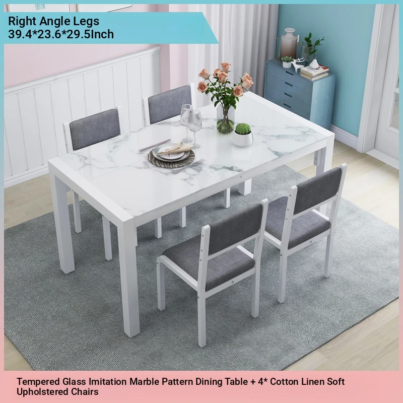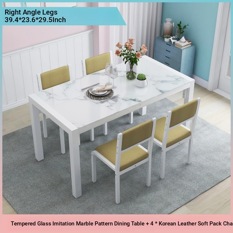Modern Minimalist Marble Pattern Tempered Glass Dining Table and Chair Set for Small Spaces - Rectangular Design Perfect for Home Dining
