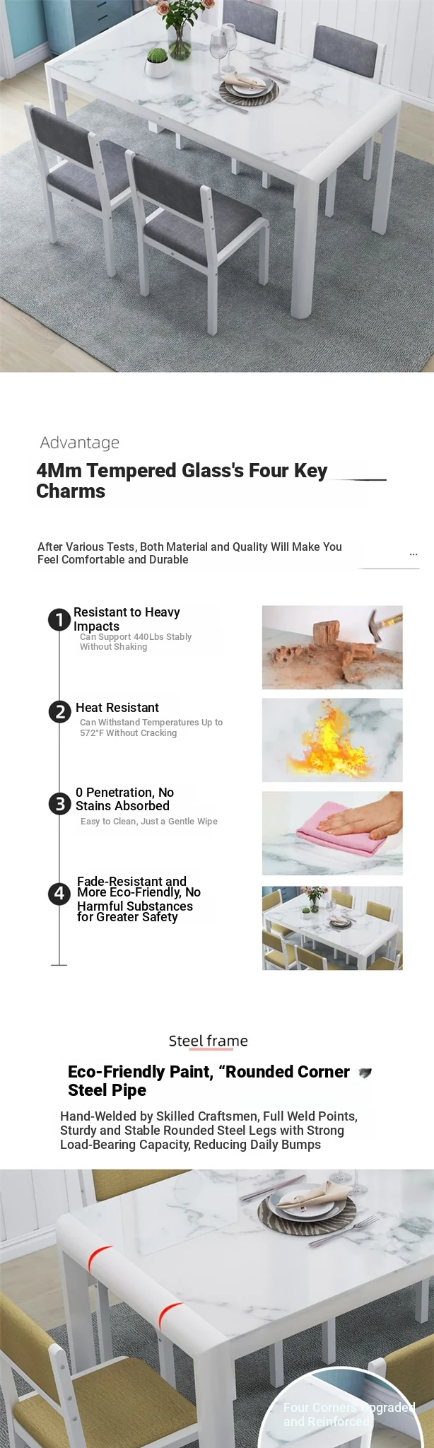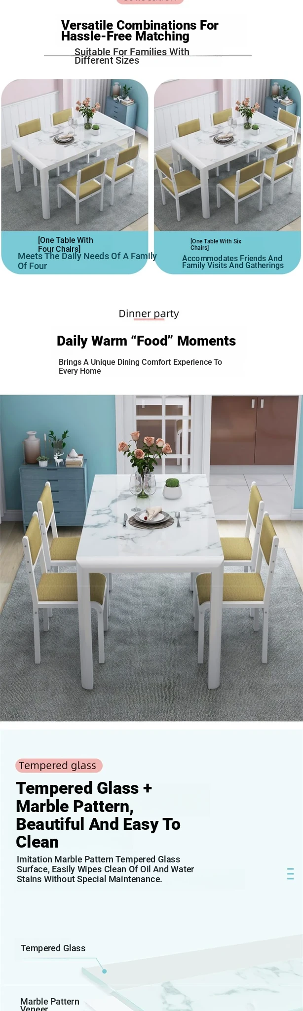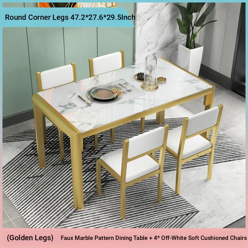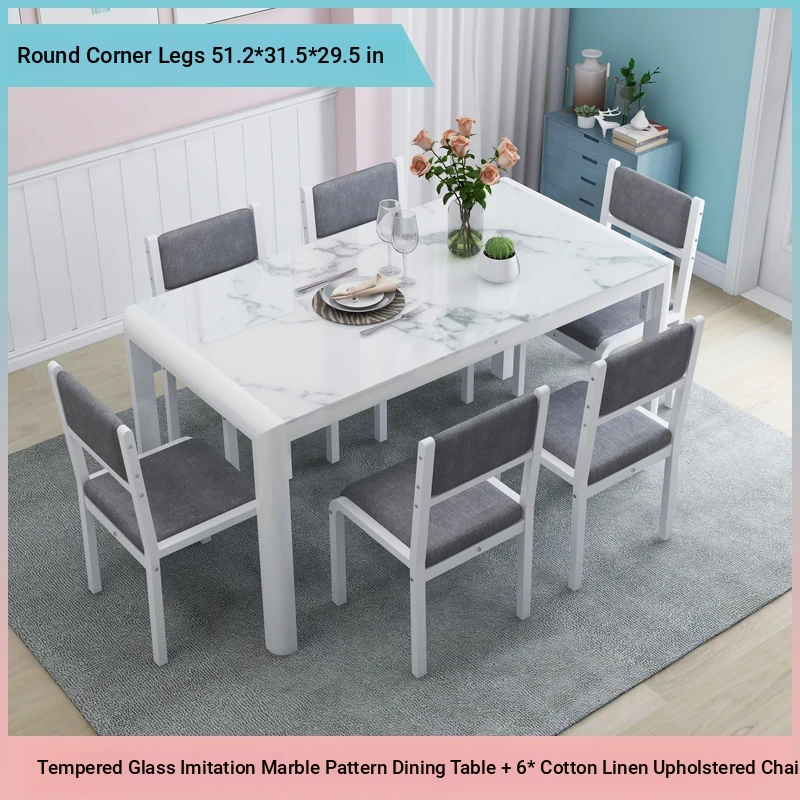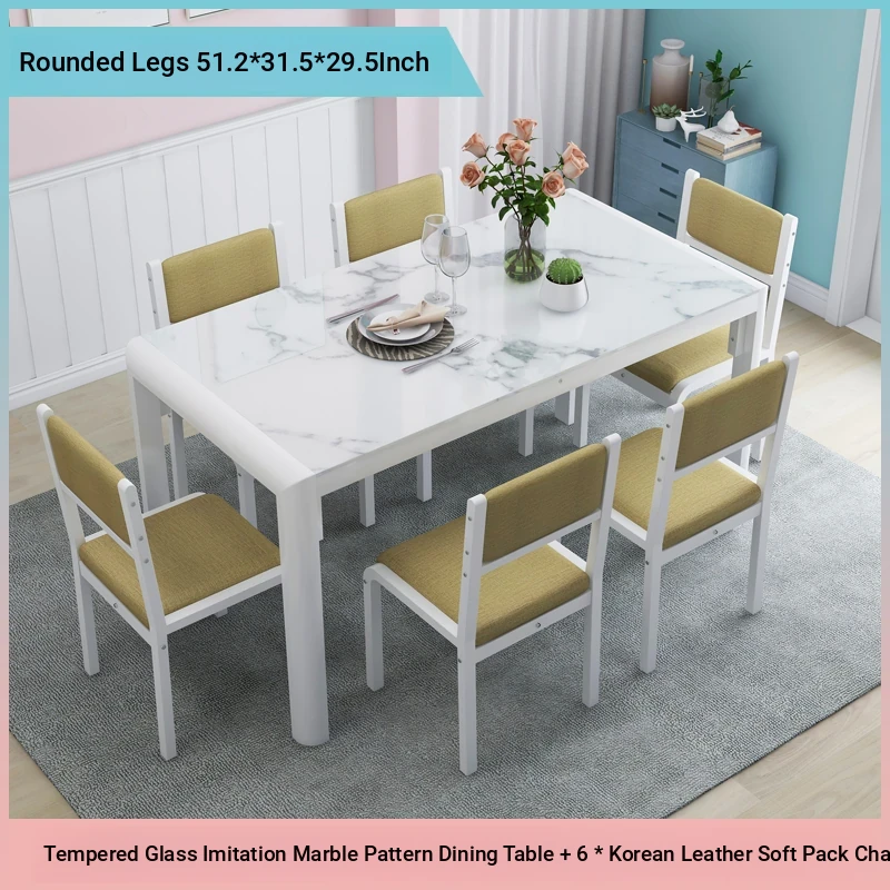 Modern Minimalist Marble Pattern Tempered Glass Dining Table and Chair Set for Small Spaces - Rectangular Design Perfect for Home Dining