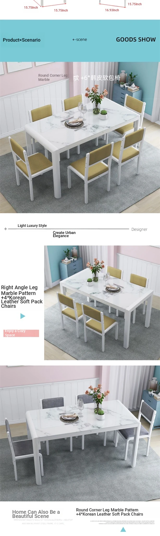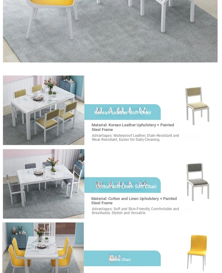 130*80 rounded leg marble +6 * Han leather soft bag chair