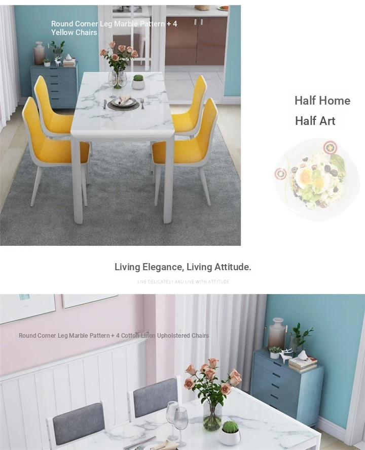 120*70 rounded leg marble +4 * yellow chair