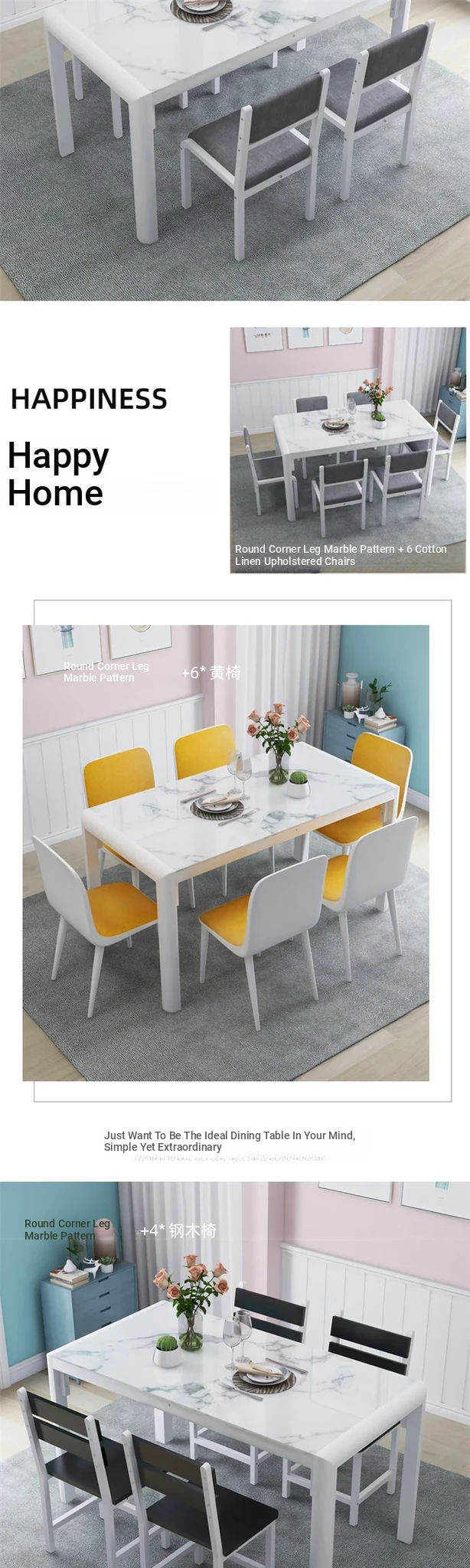 130*80 rounded leg marble +6 * yellow chair