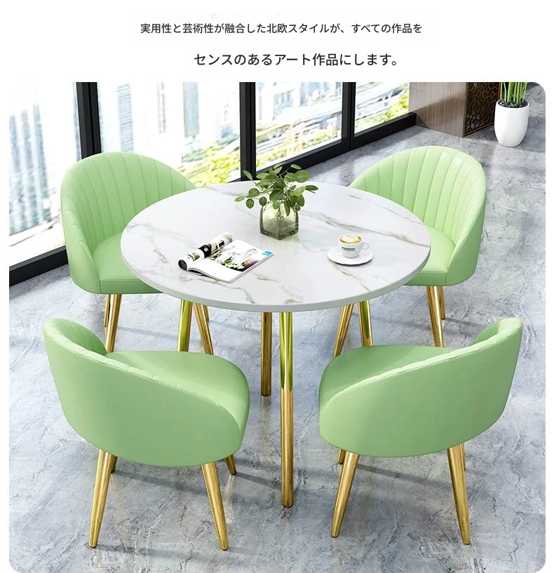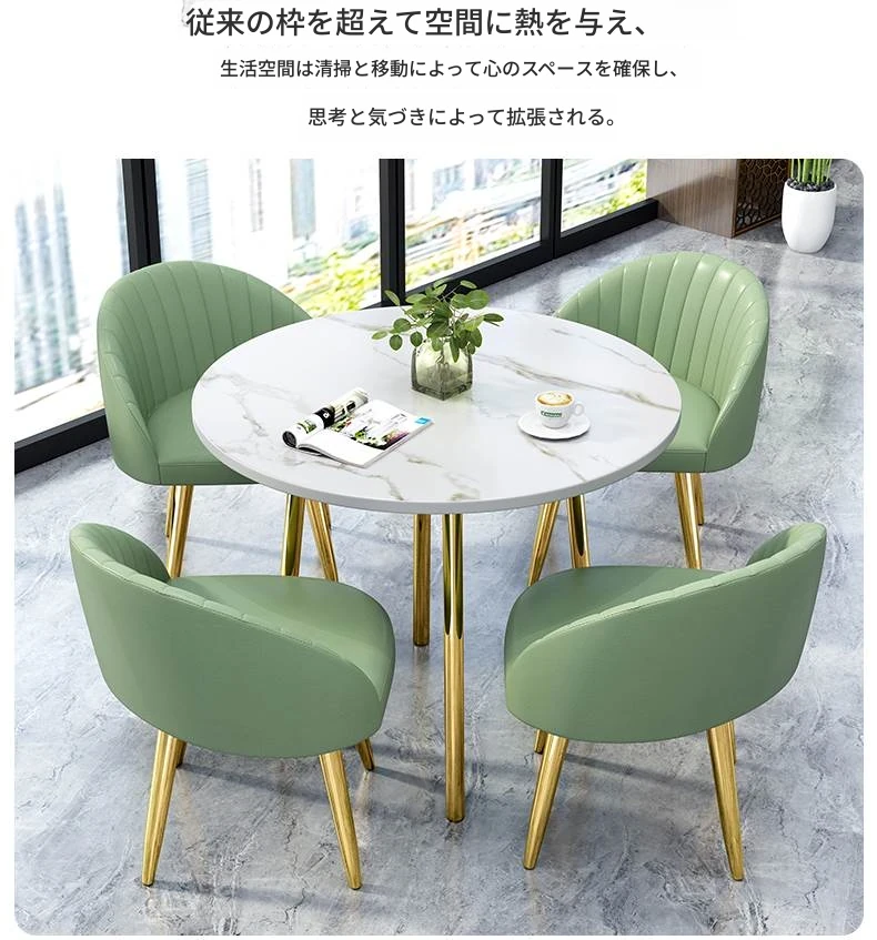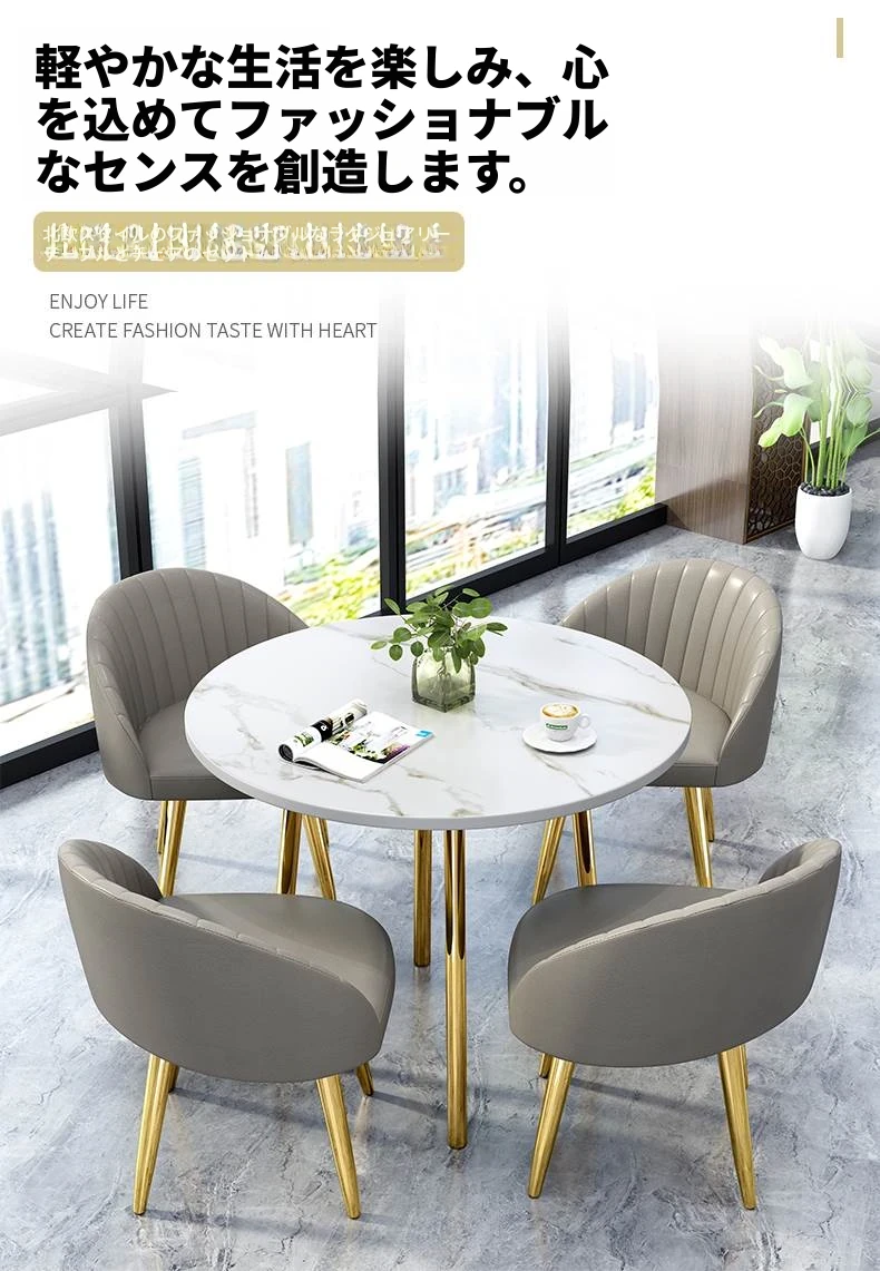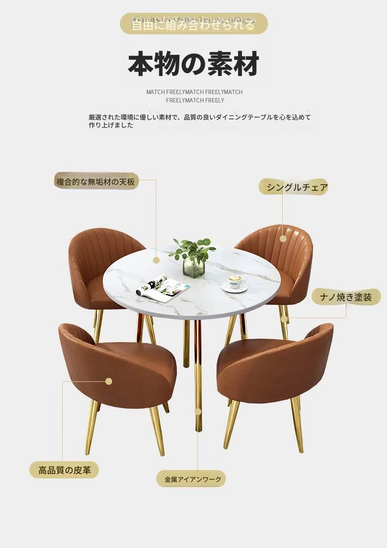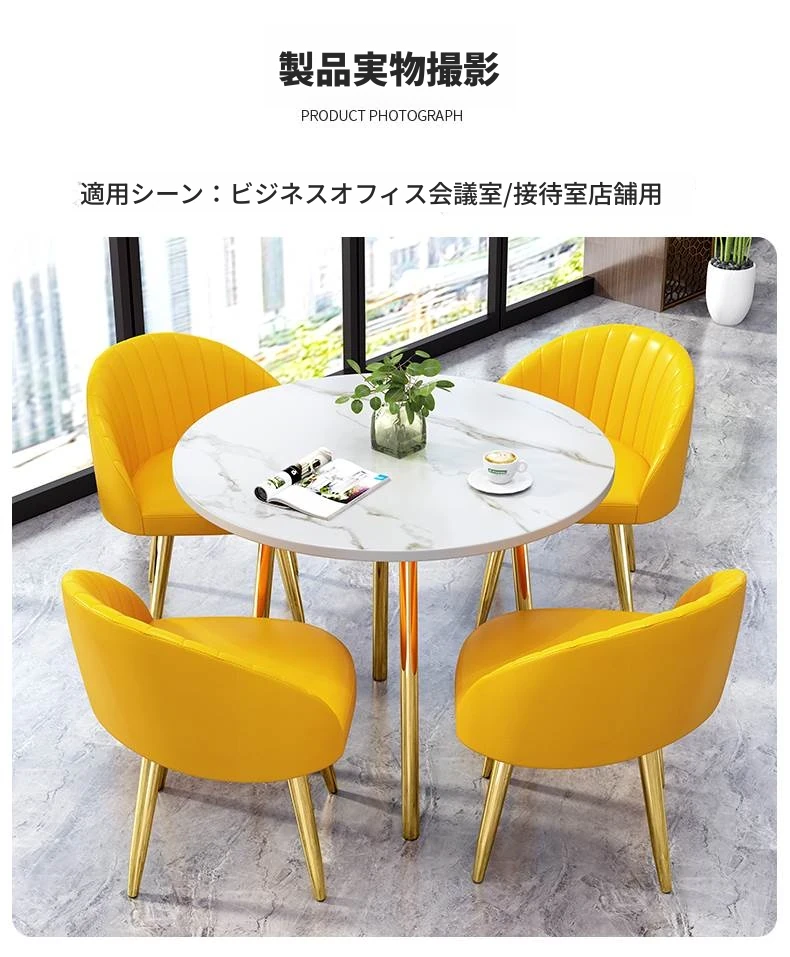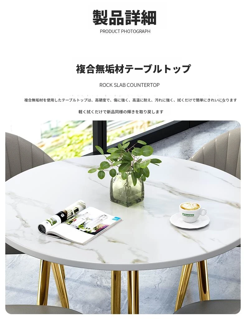 モダンでシンプルな商談用テーブルセット - 不動産営業所やカフェに最適!ビジネスシーンを引き立てるラグジュアリーなデザインの小さな円形テーブル。リラックスできる空間で、スイーツやドリンクを楽しむひとときを提供します。