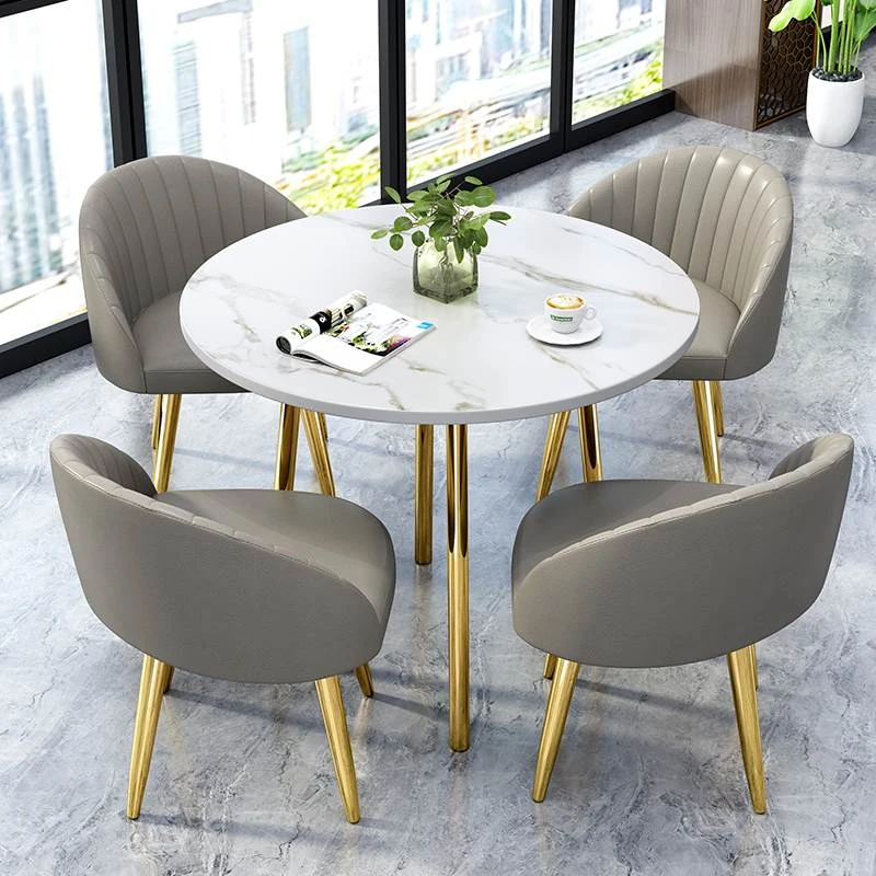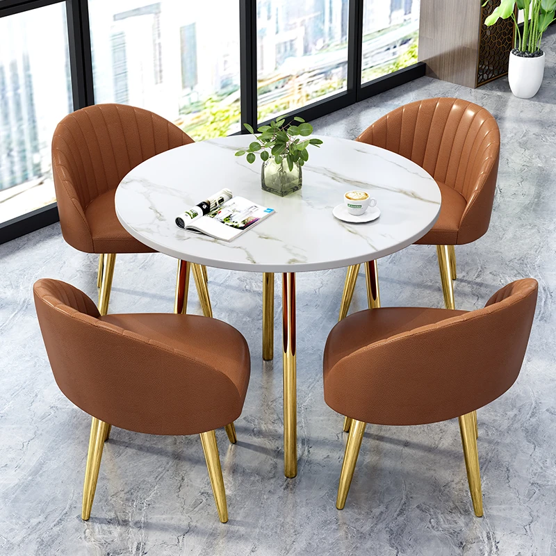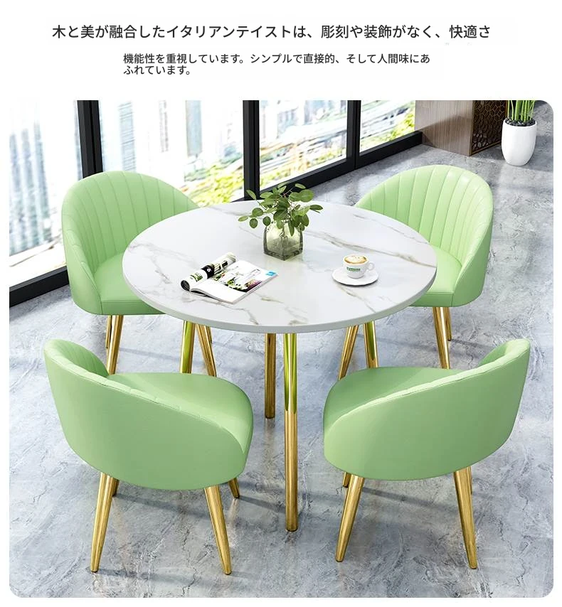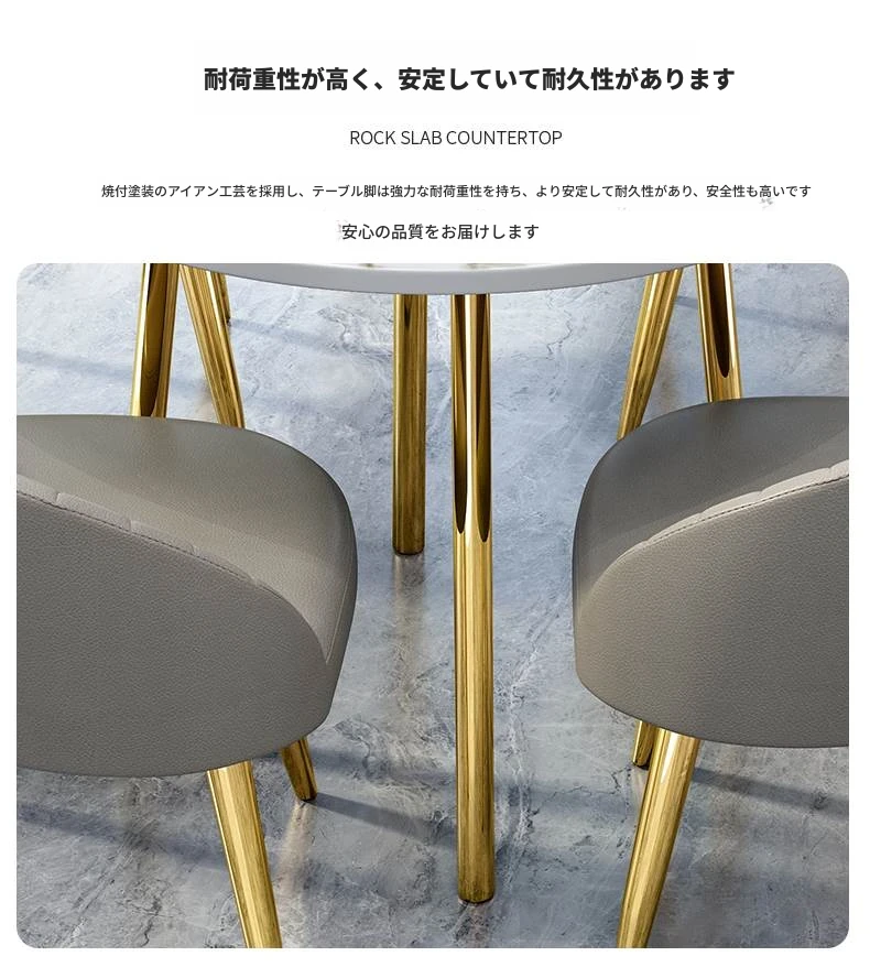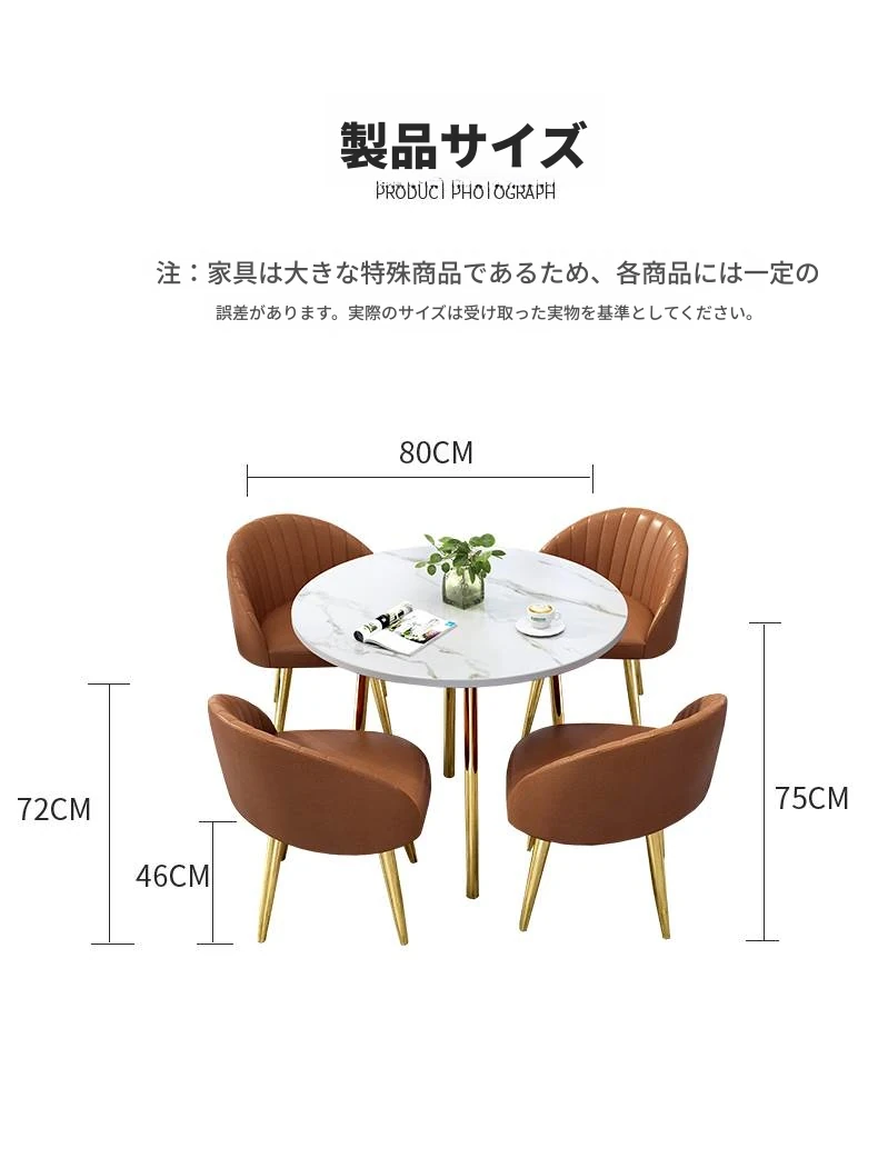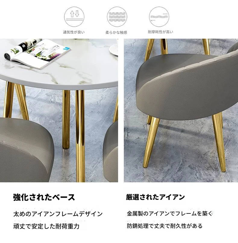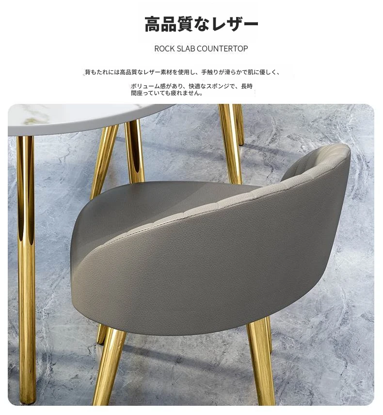 モダンでシンプルな商談用テーブルセット - 不動産営業所やカフェに最適!ビジネスシーンを引き立てるラグジュアリーなデザインの小さな円形テーブル。リラックスできる空間で、スイーツやドリンクを楽しむひとときを提供します。