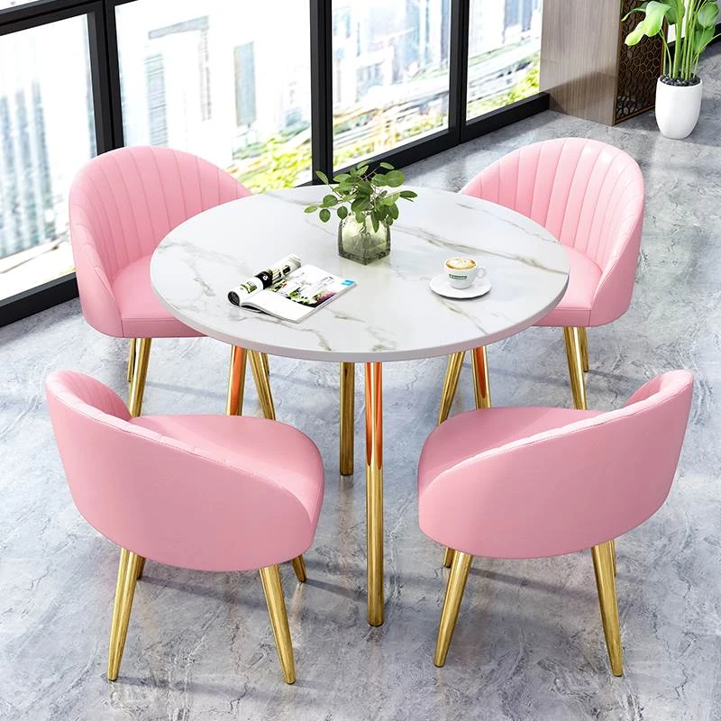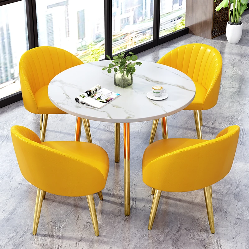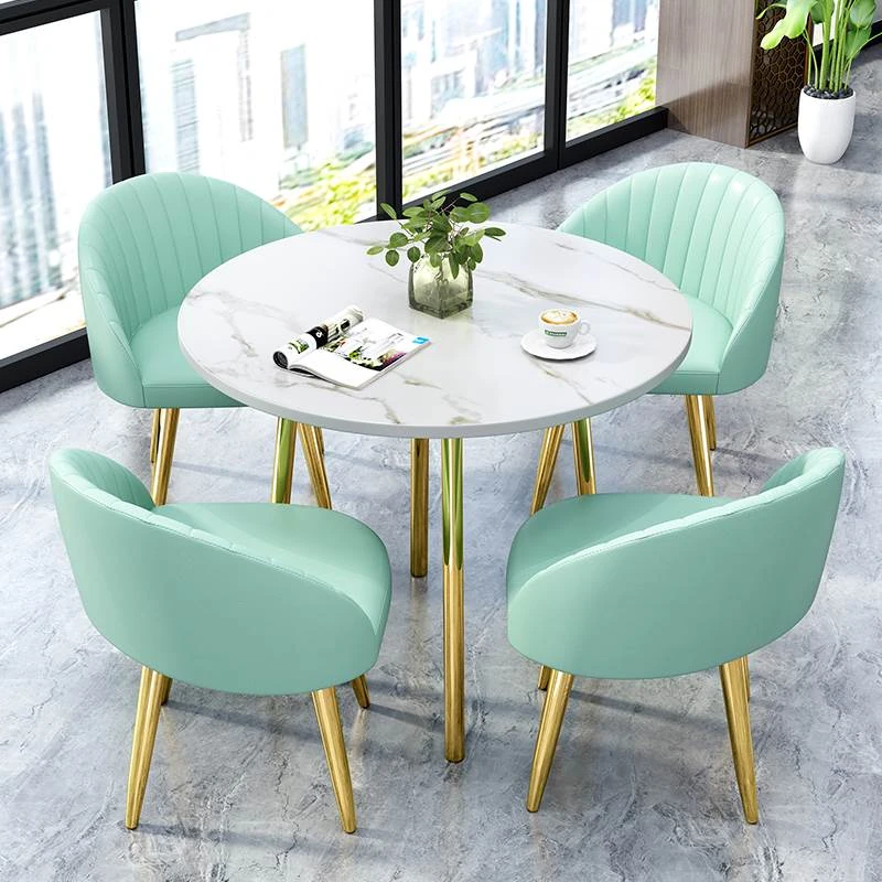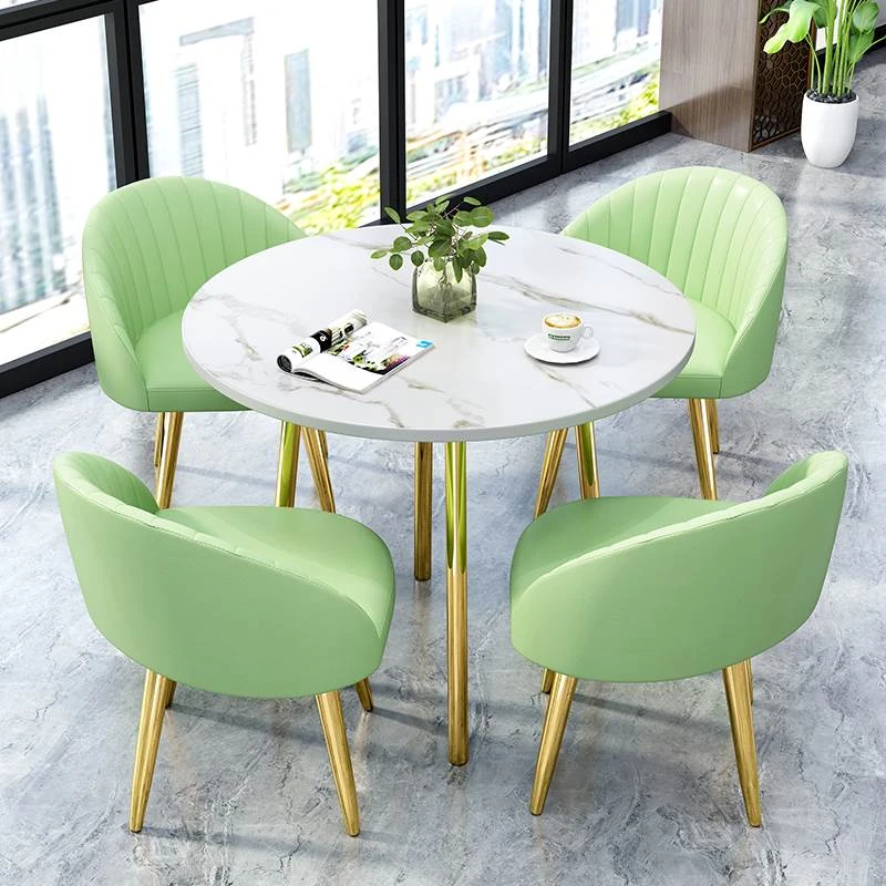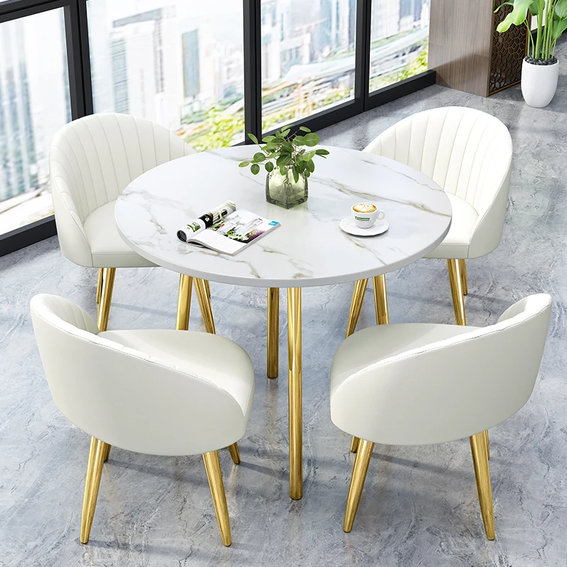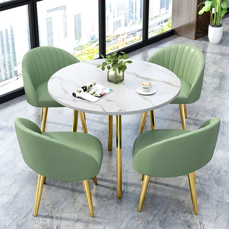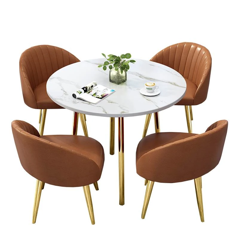 モダンでシンプルな商談用テーブルセット - 不動産営業所やカフェに最適!ビジネスシーンを引き立てるラグジュアリーなデザインの小さな円形テーブル。リラックスできる空間で、スイーツやドリンクを楽しむひとときを提供します。