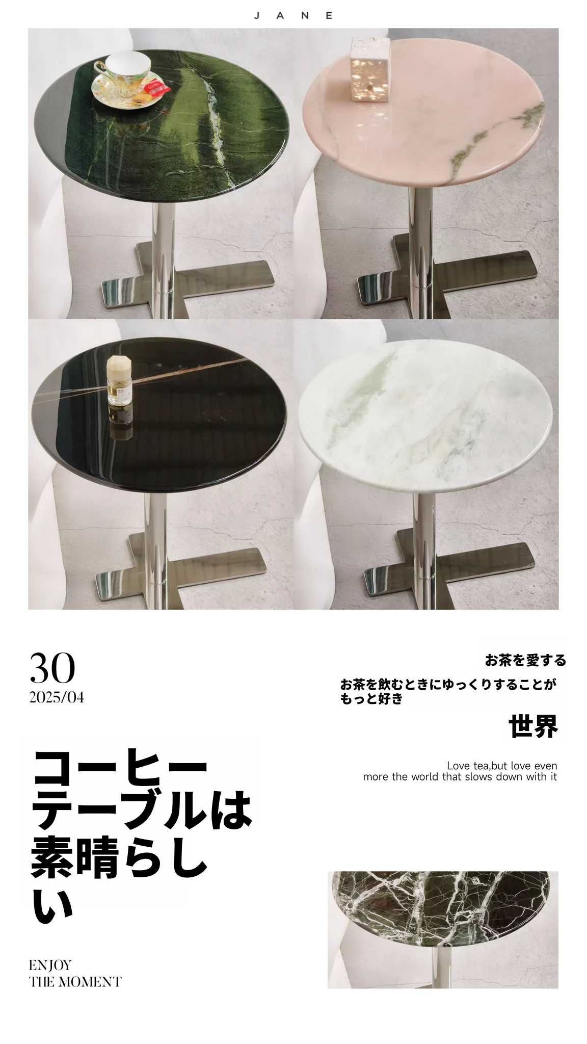 天然大理石のラウンドテーブル|モダンでシンプルなソファサイドテーブル|創造的なデザインで高級感あふれるリビング空間を演出!