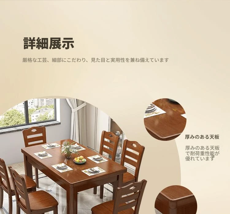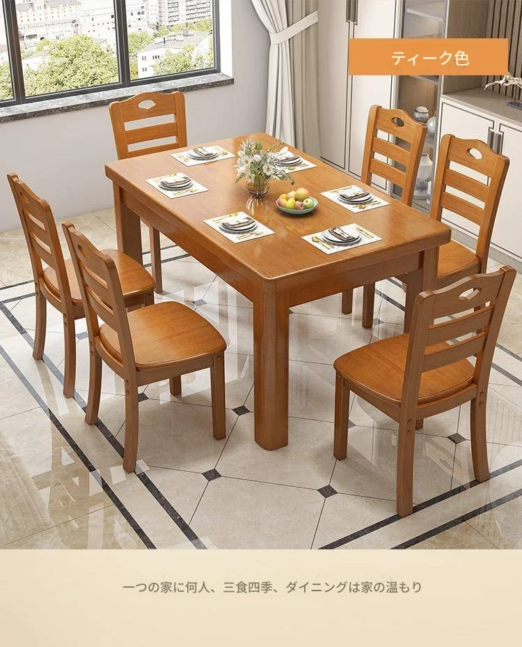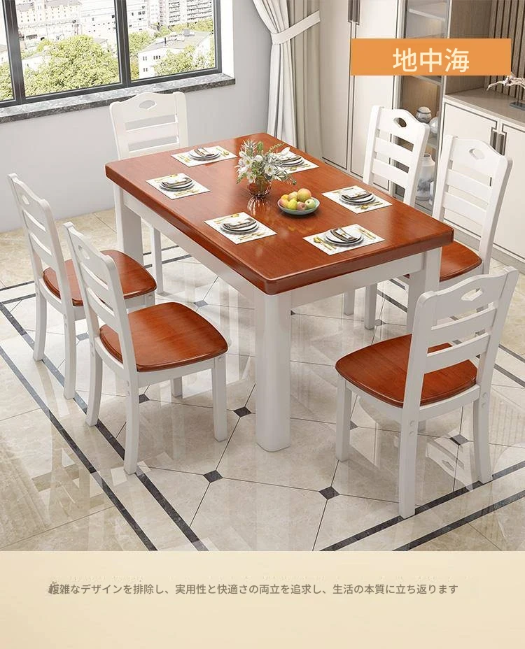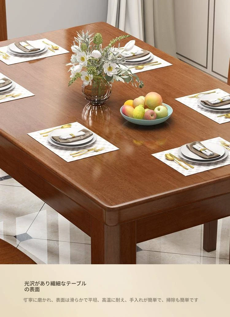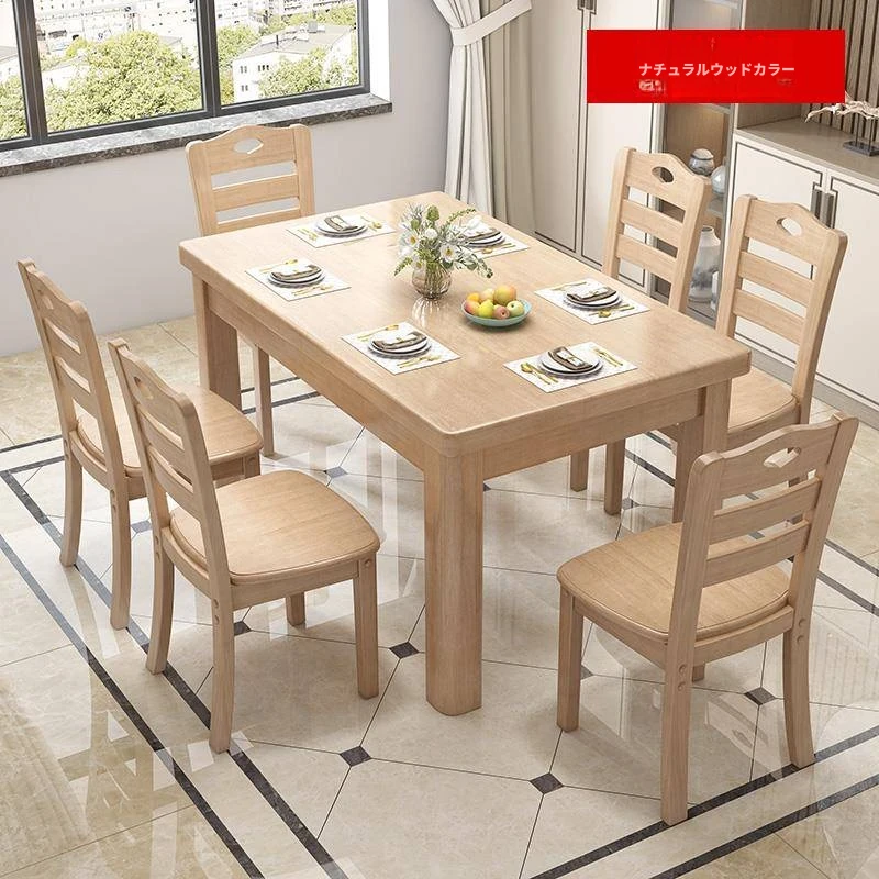 モダンシンプルな実木製ダイニングテーブルセット|中小型家庭にぴったりの長方形4人用テーブル|おしゃれで使いやすい食卓で、家族や友人との楽しい食事を演出します!