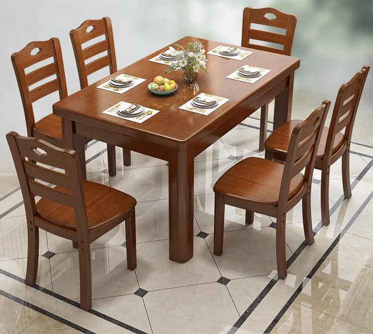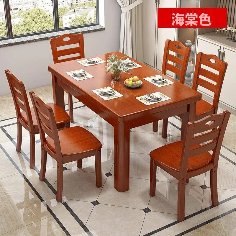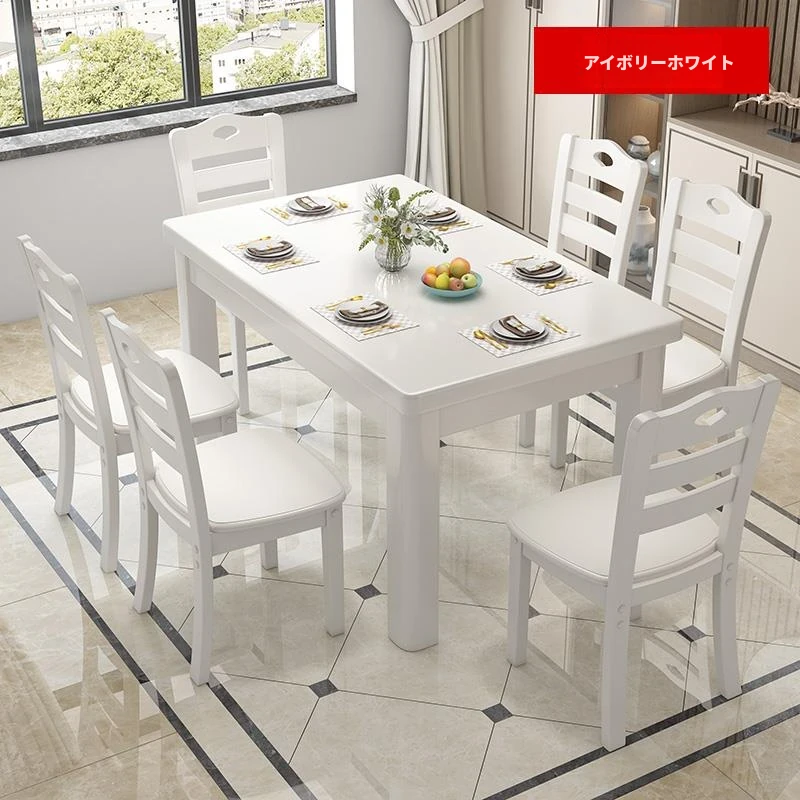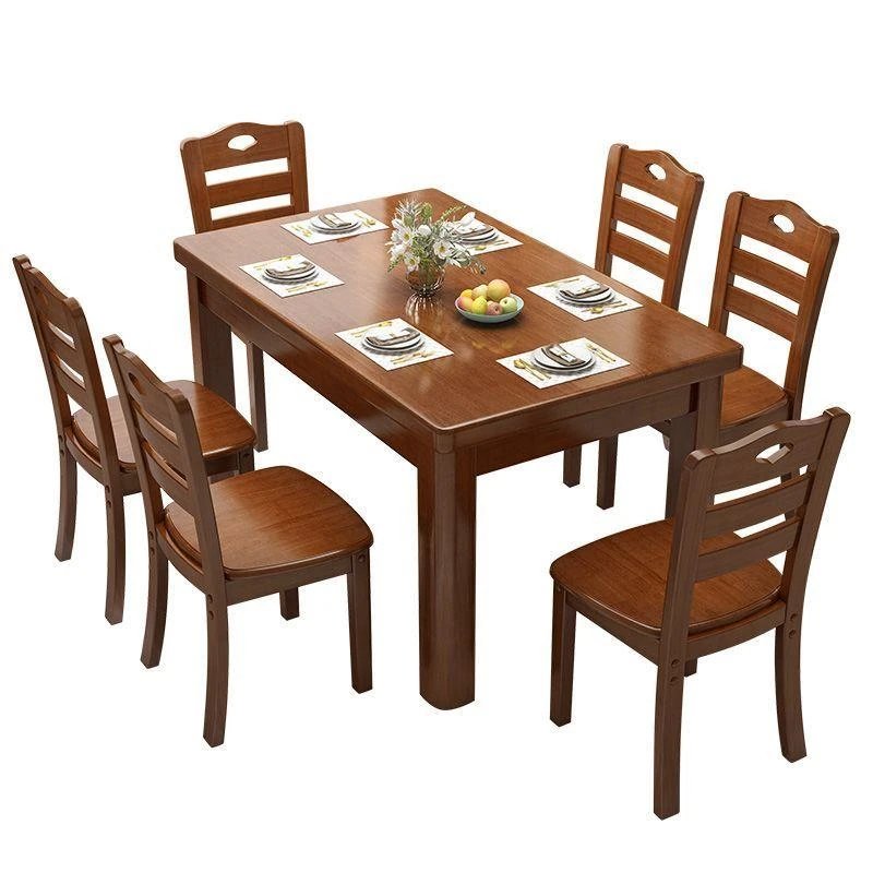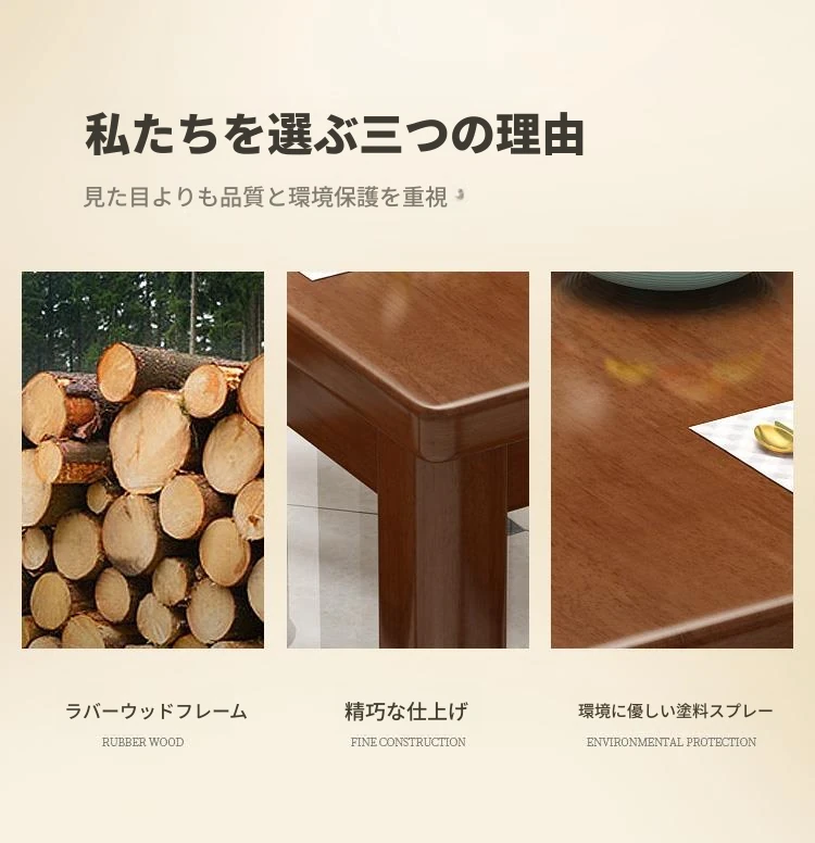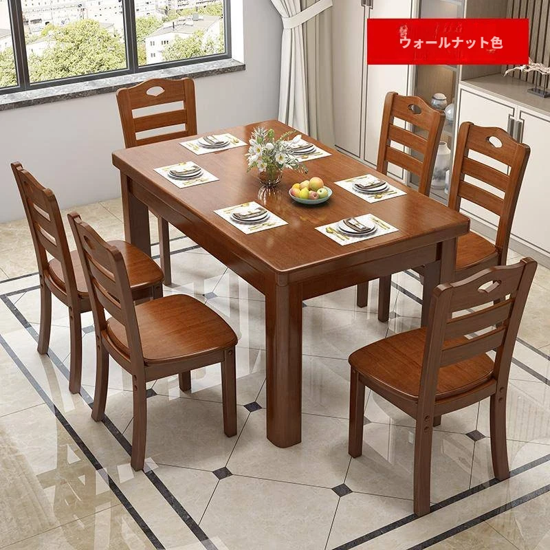モダンシンプルな実木製ダイニングテーブルセット|中小型家庭にぴったりの長方形4人用テーブル|おしゃれで使いやすい食卓で、家族や友人との楽しい食事を演出します!