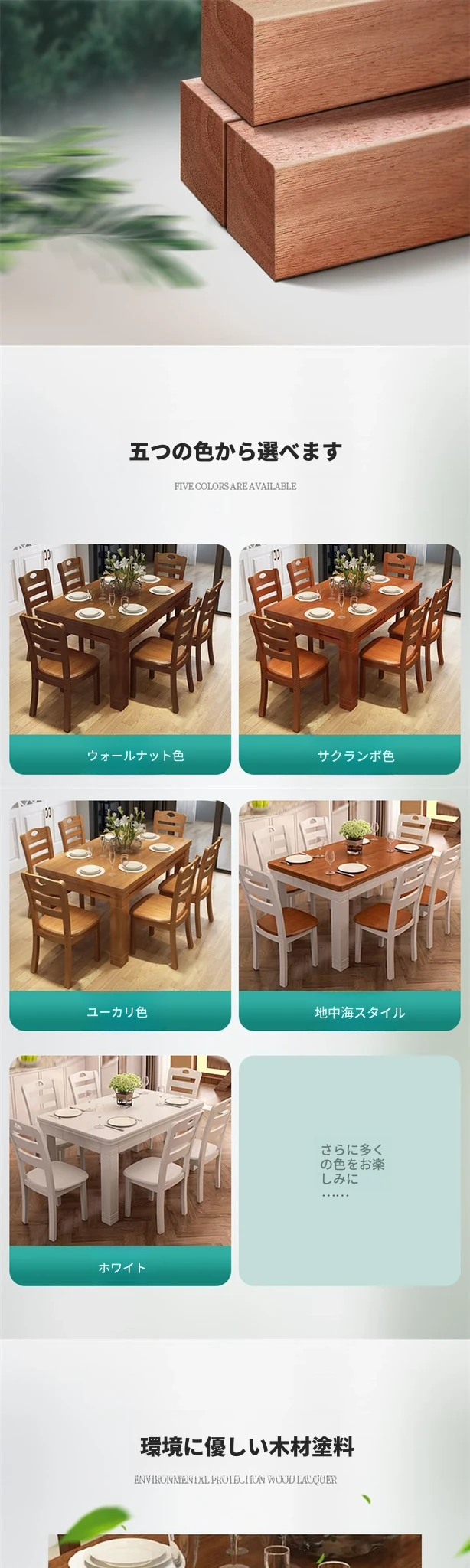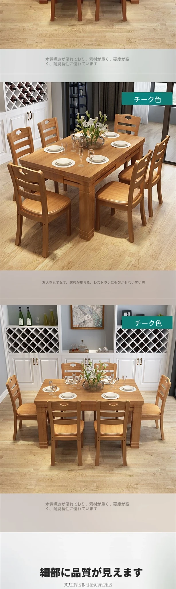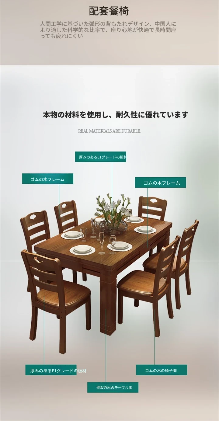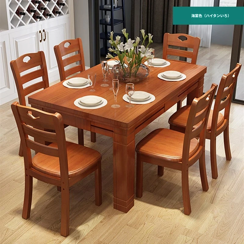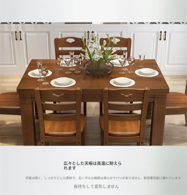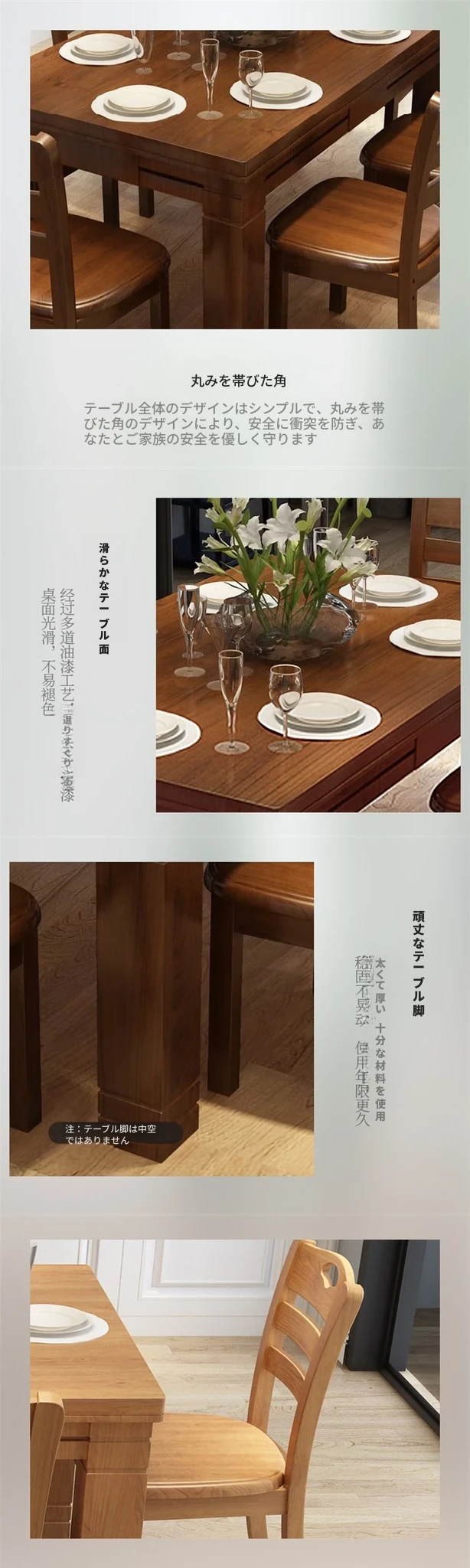 シンプルでモダンな実木ダイニングテーブルセット - 中小型住宅に最適!長方形の西洋スタイルで、家族や友人との食事を楽しく演出します。快適な椅子付きで、居心地の良い食卓を実現!