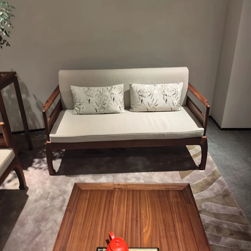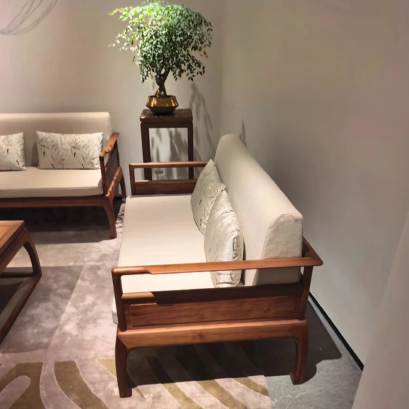 Modern Minimalist Solid Wood Sofa Set in New Chinese Style – North American Black Walnut, Perfect for Small Living Rooms, Inspired by Song Dynasty Aesthetics