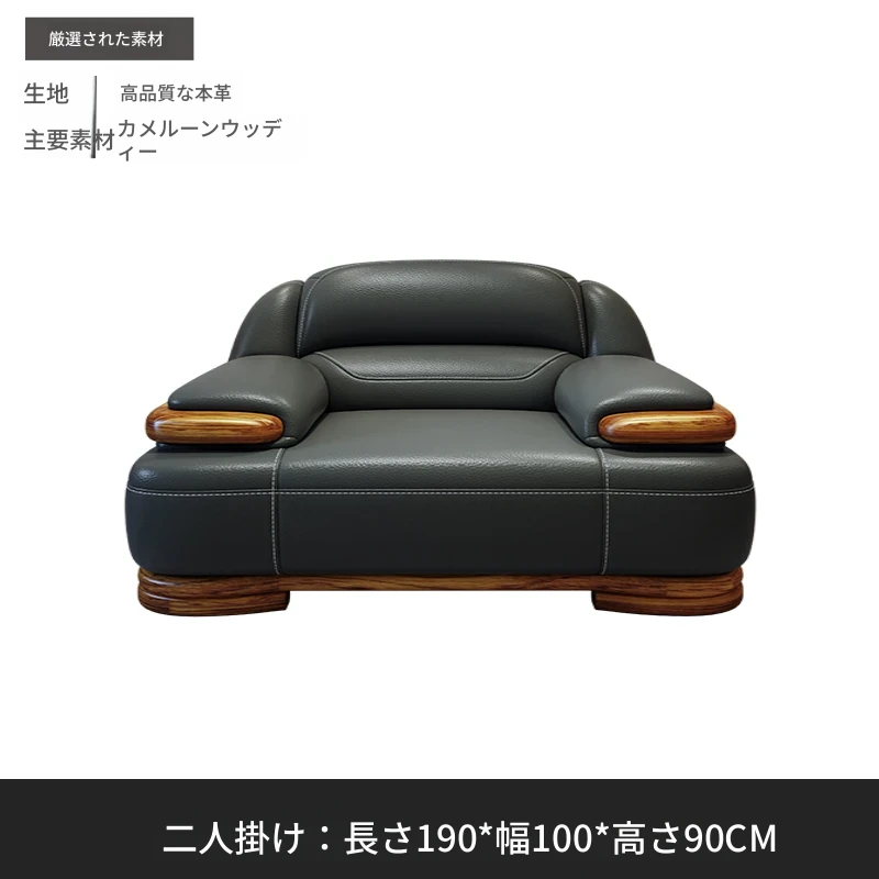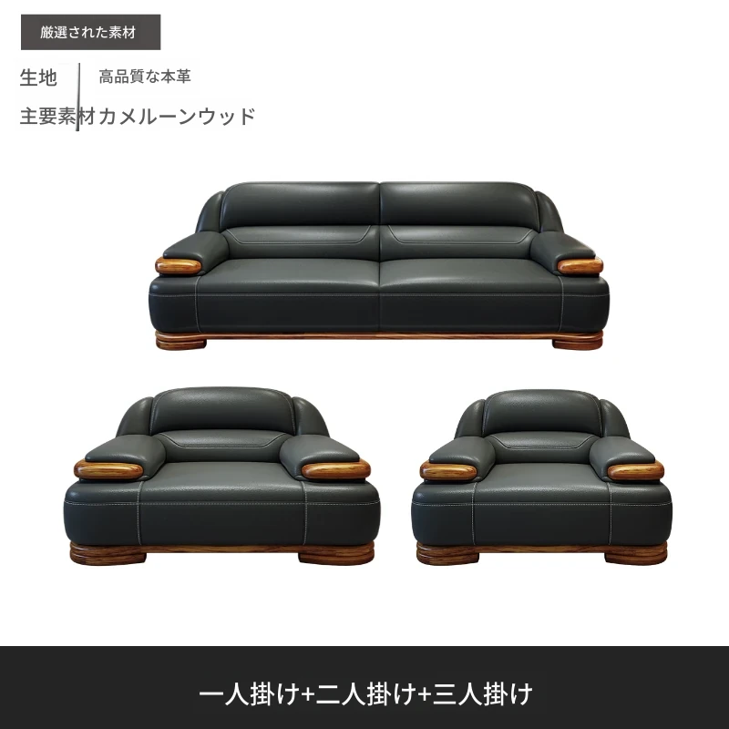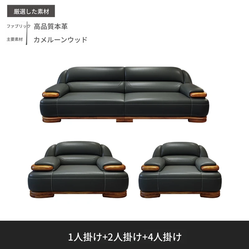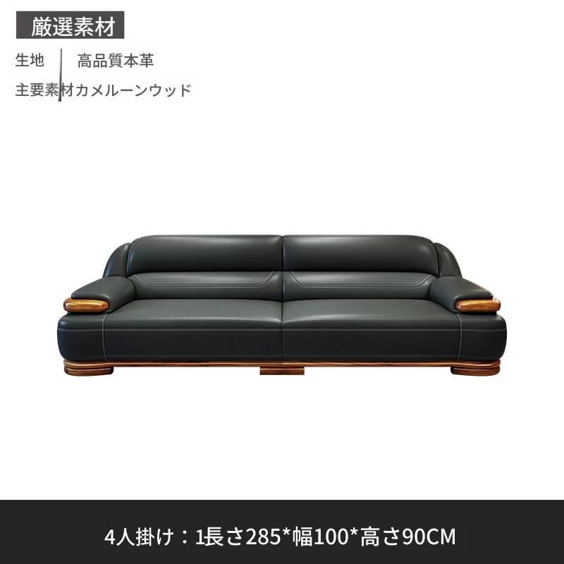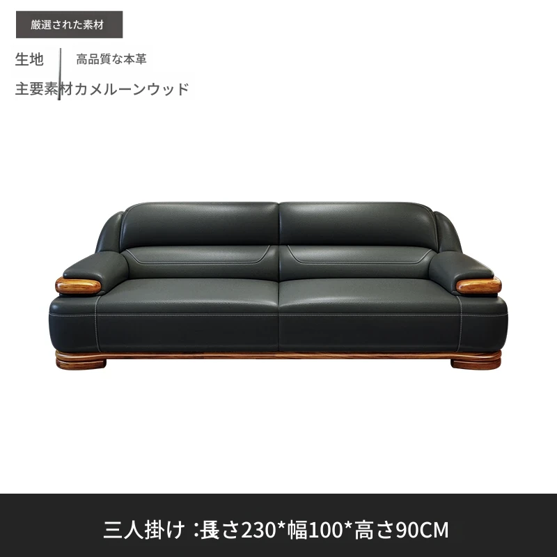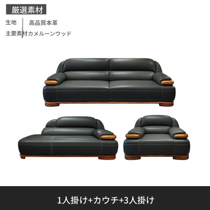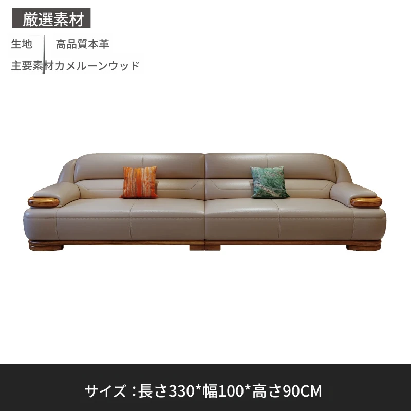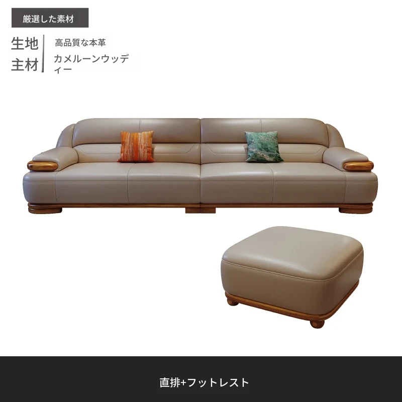 直列3.3メートル+オットマン【ウッド製の本革ソファ】