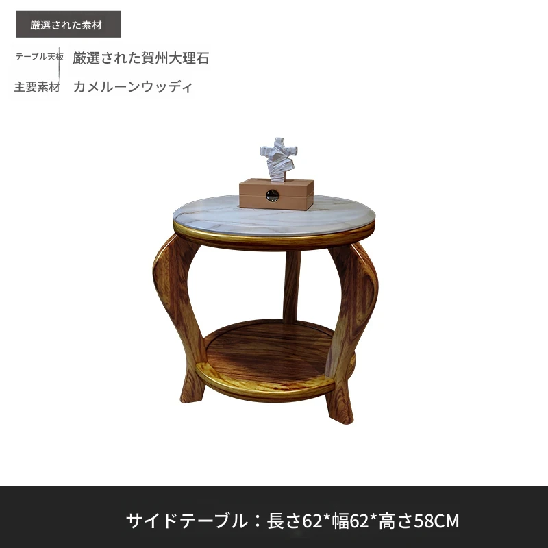 丸テーブル【ウッドと大理石のサイドテーブル】